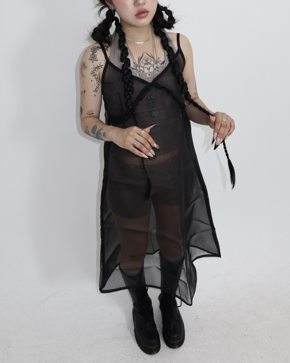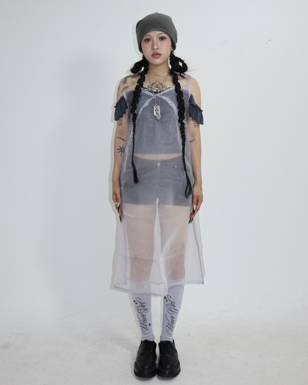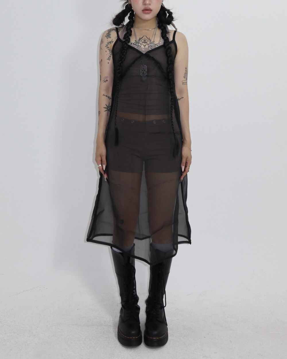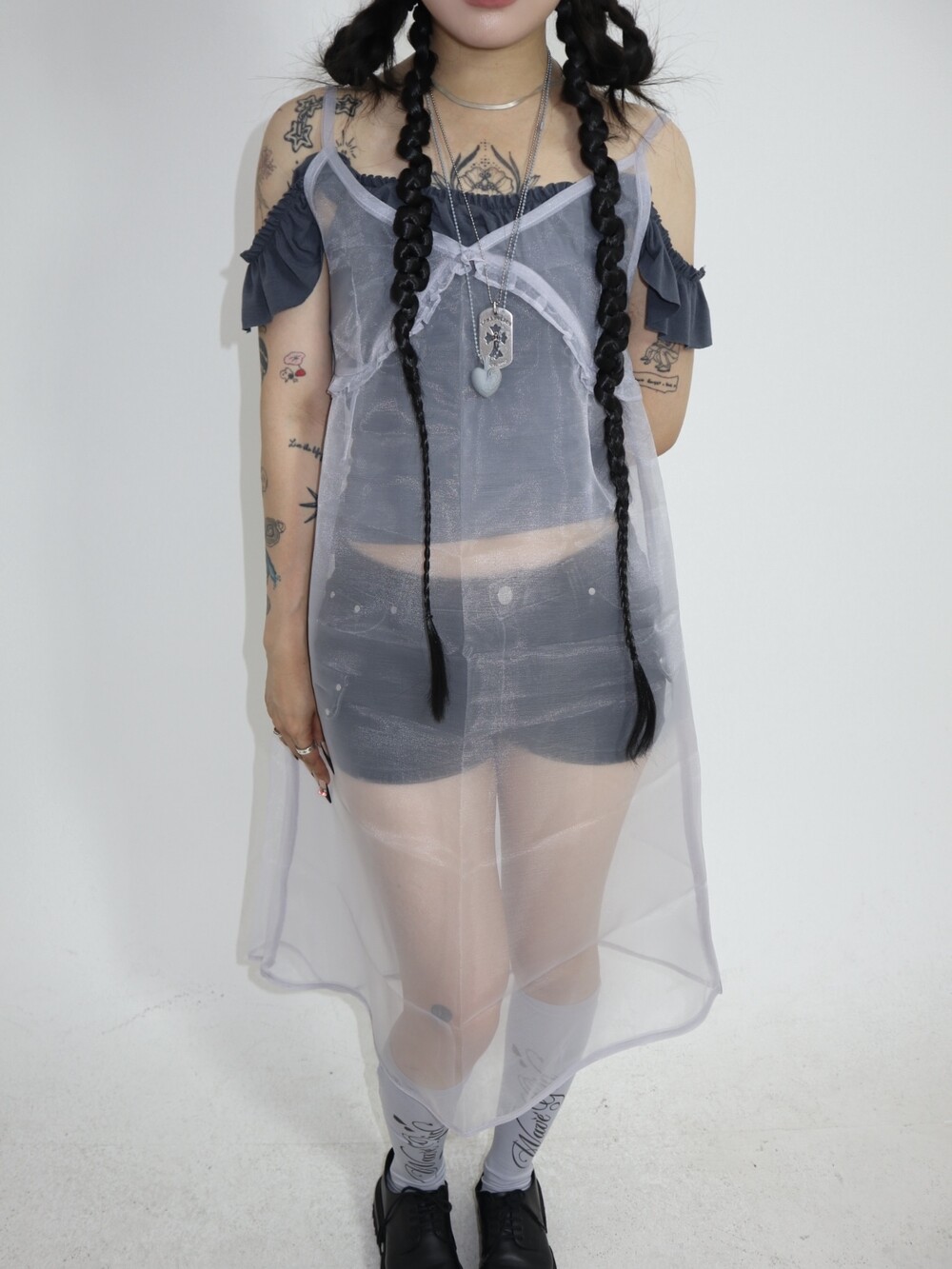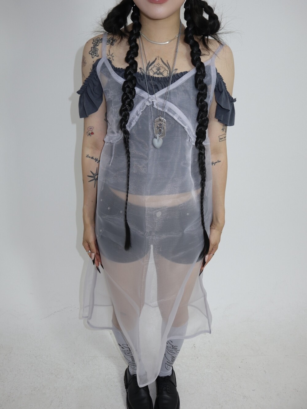 바스트라인의 은은한 셔링 디테일과 얇은 스트랩,