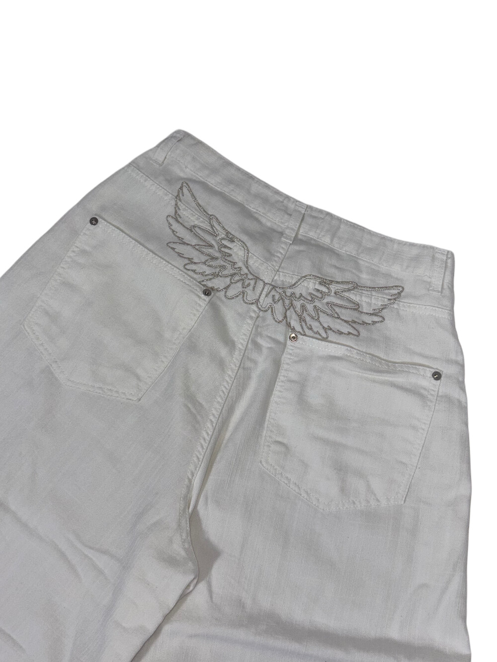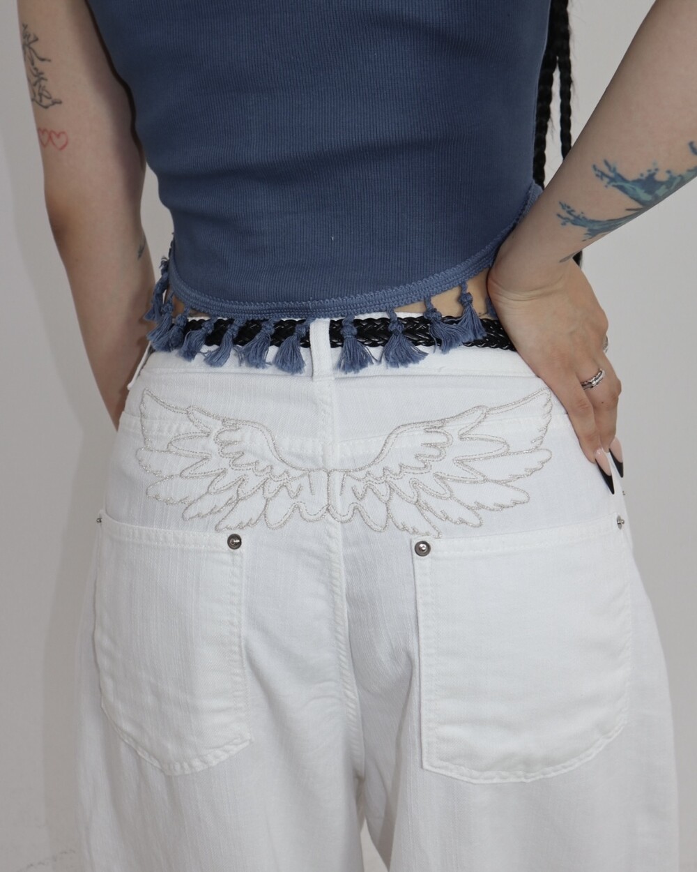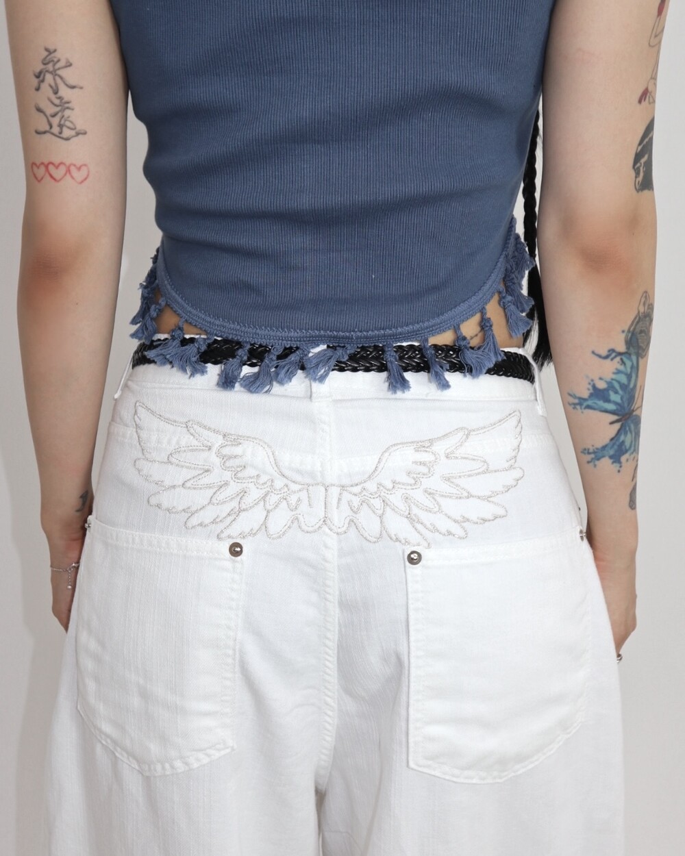 뒷포켓에 들어간 은은한 날개 자수 디테일이