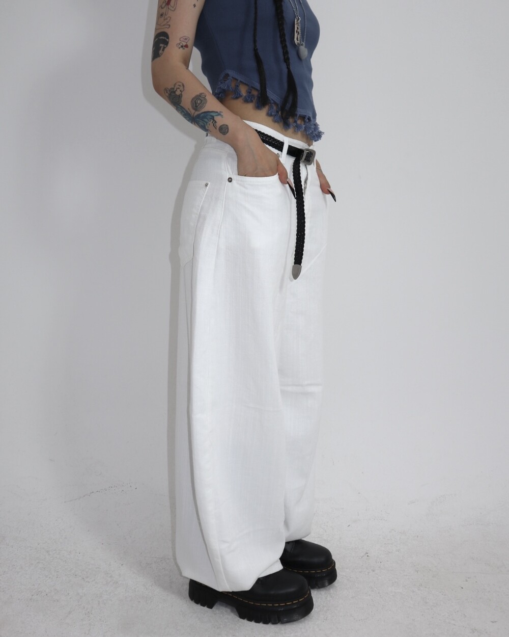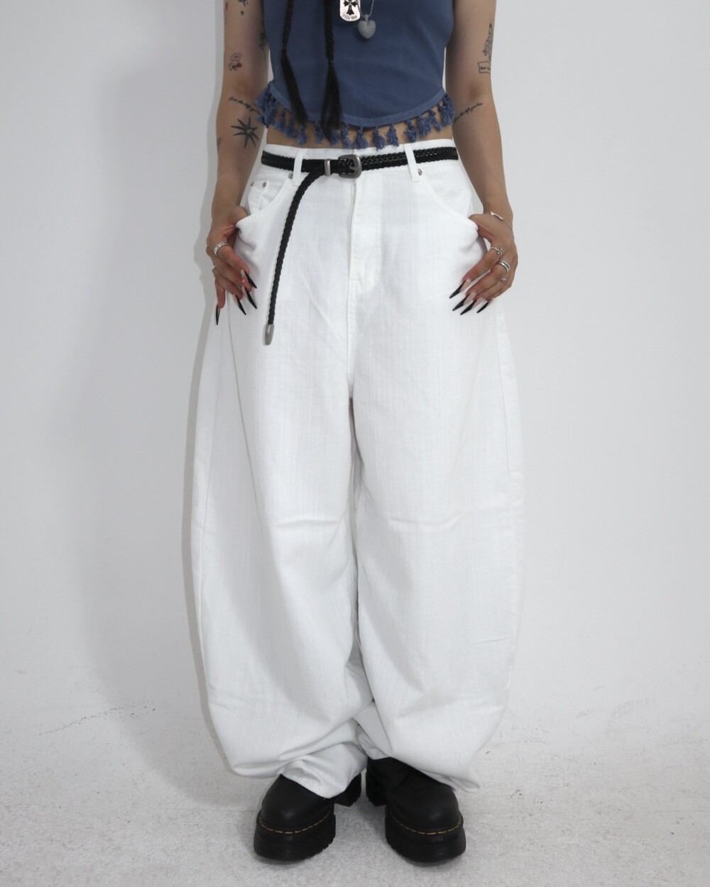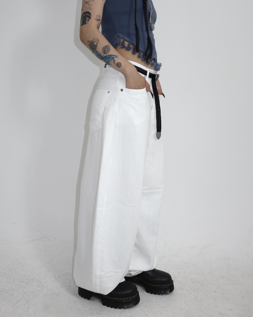 허리부터 밑단까지 흐르는 와이드한 실루엣이