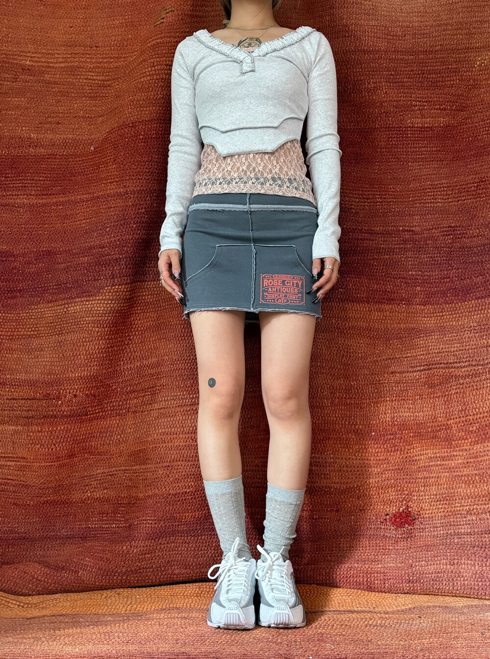 빈티지 무드의 트레이닝 미니 스커트