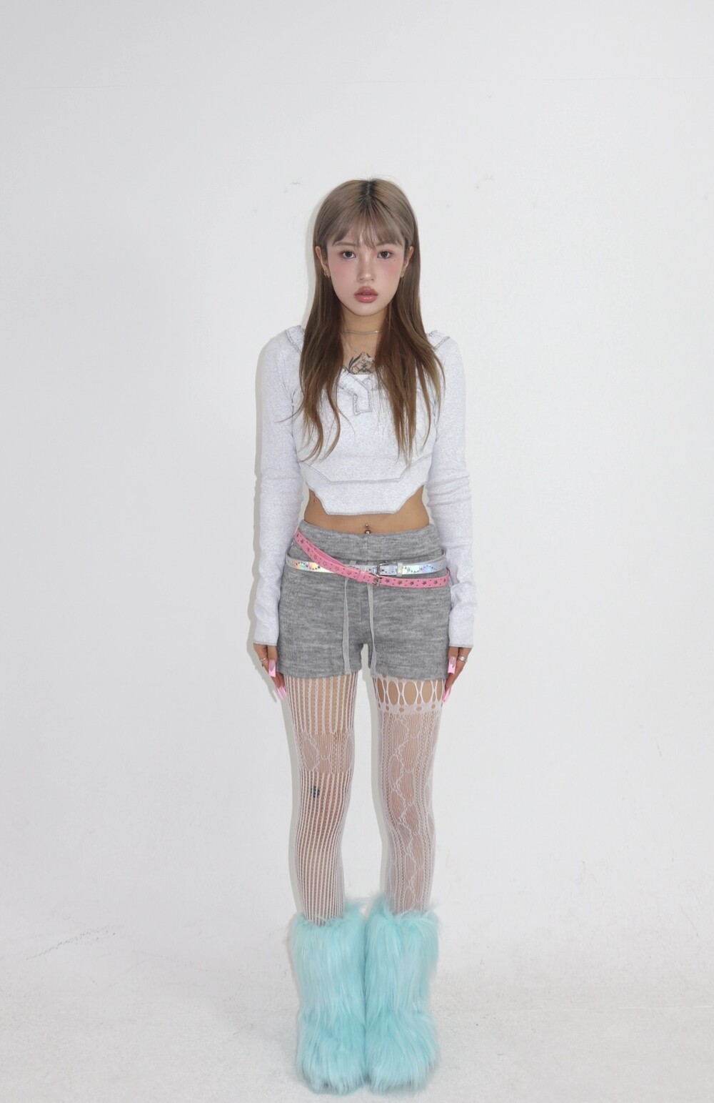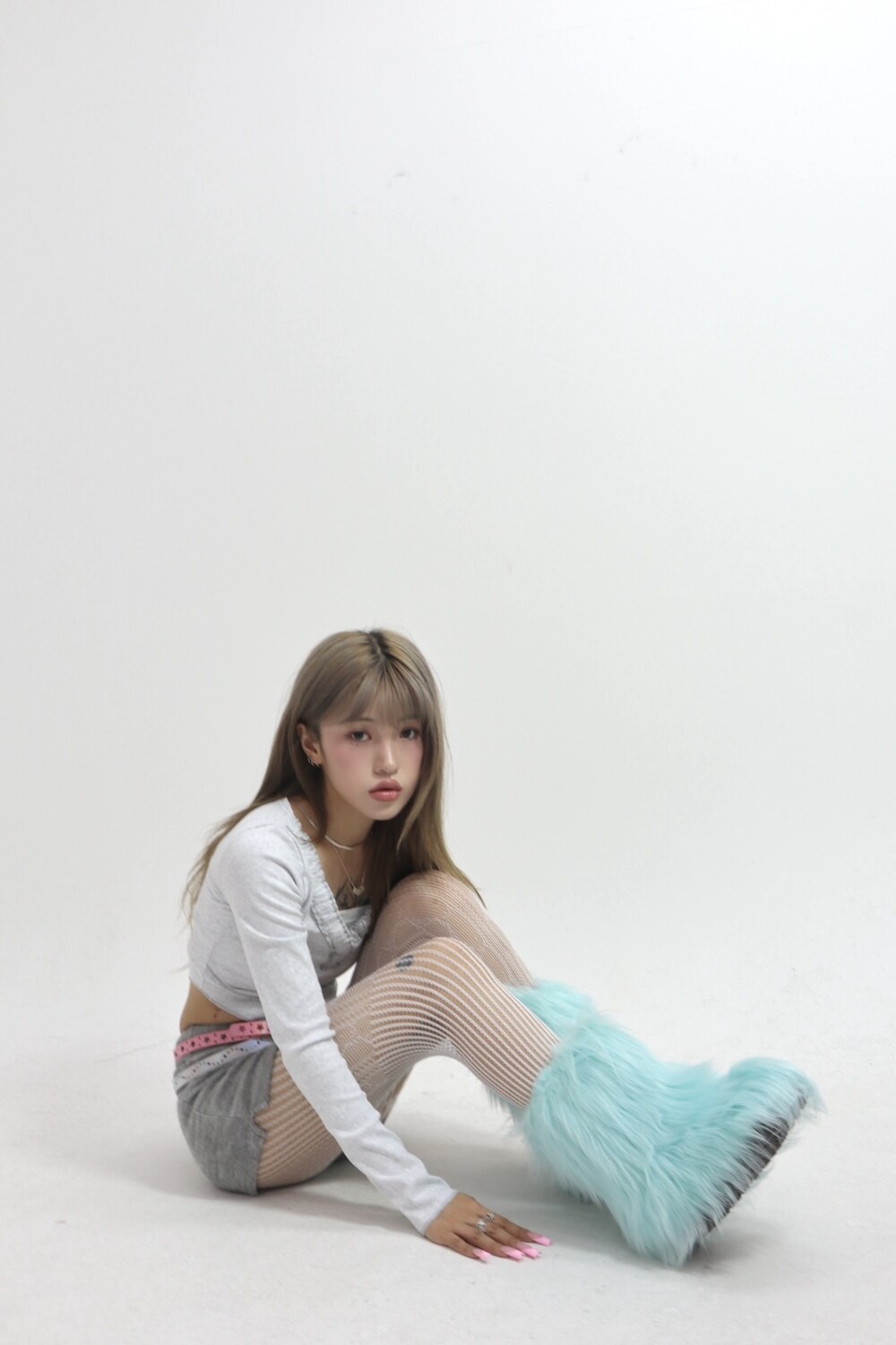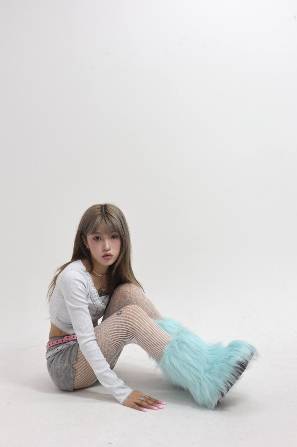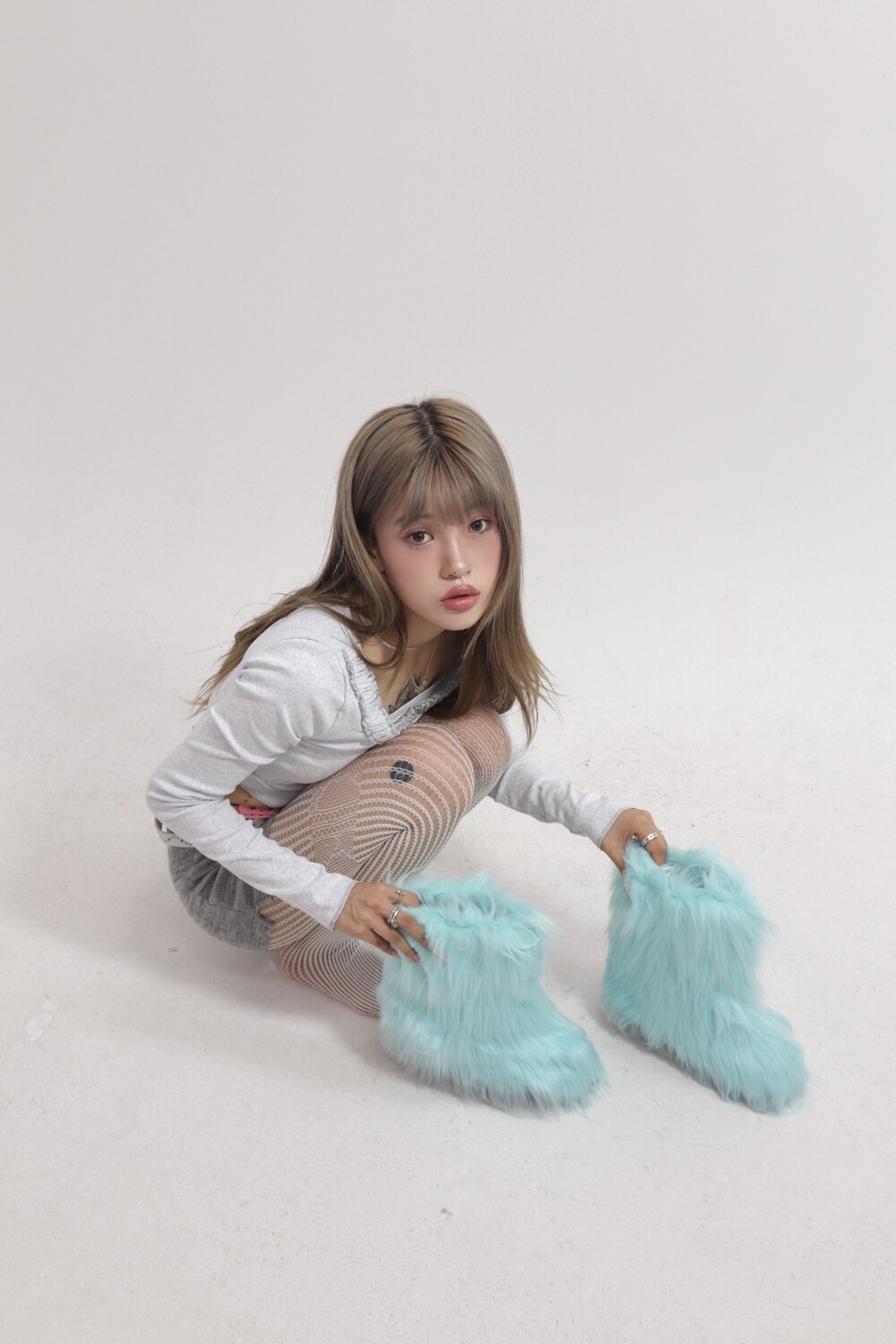 밝은 베이비블루 컬러의 퍼부츠