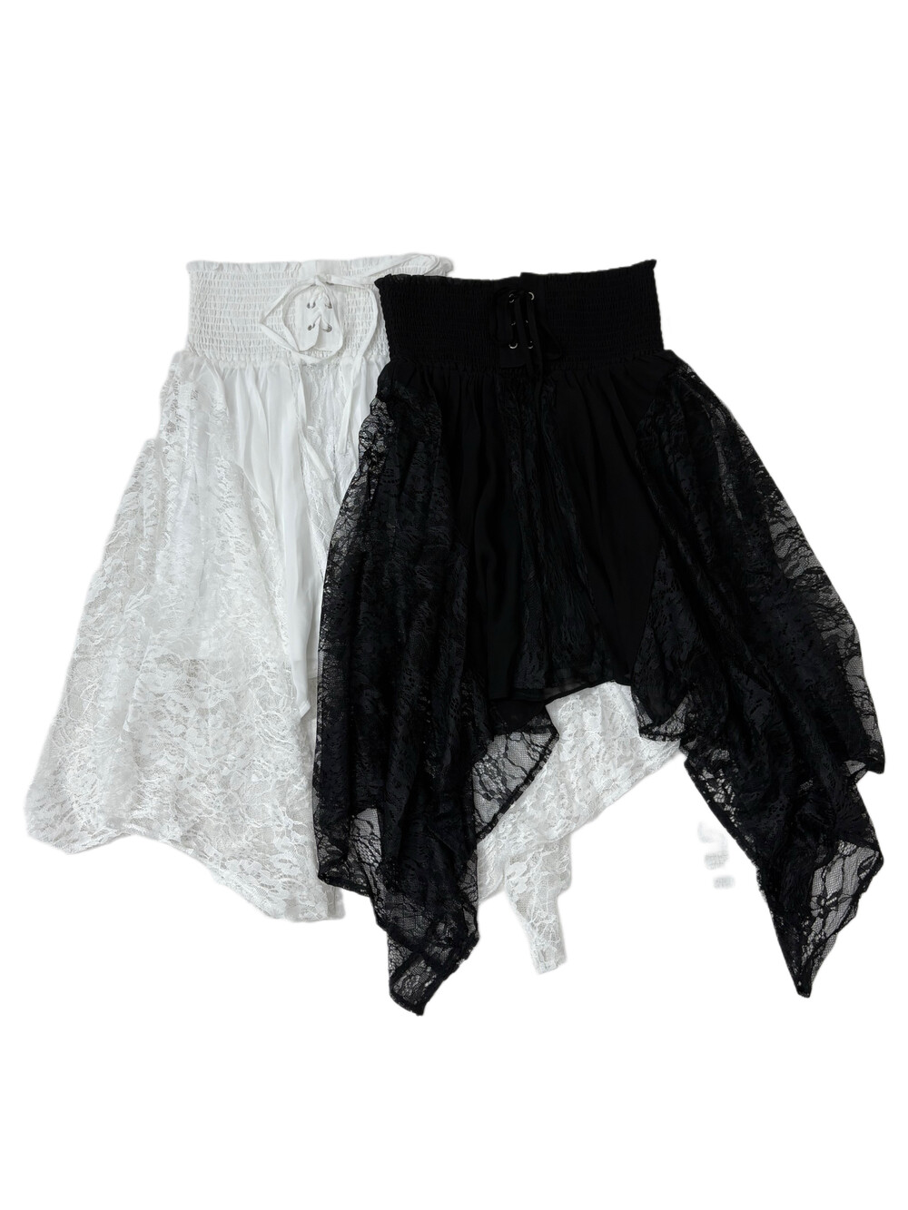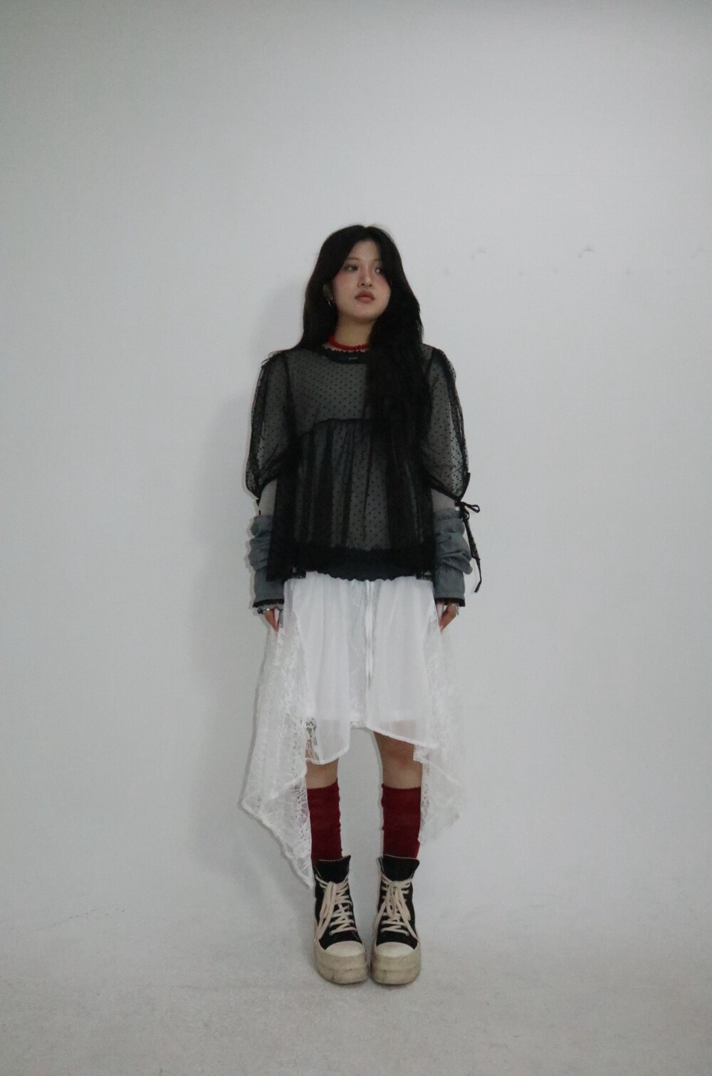 레이스 소재가 더해져 하늘하늘 요정 스커트 무드를 연출해줘요.