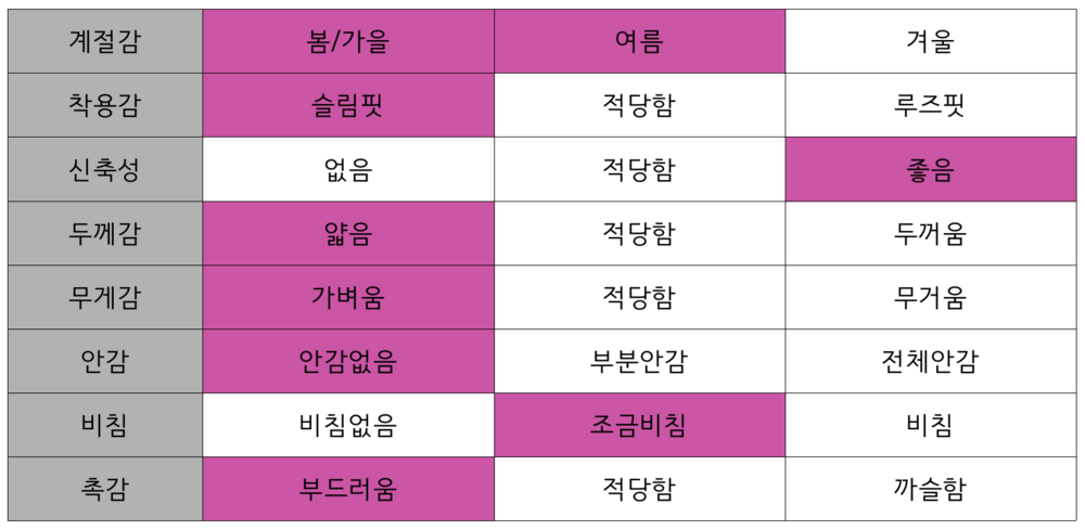부드러우면서도 탄탄한 핏을 연출해줘요.