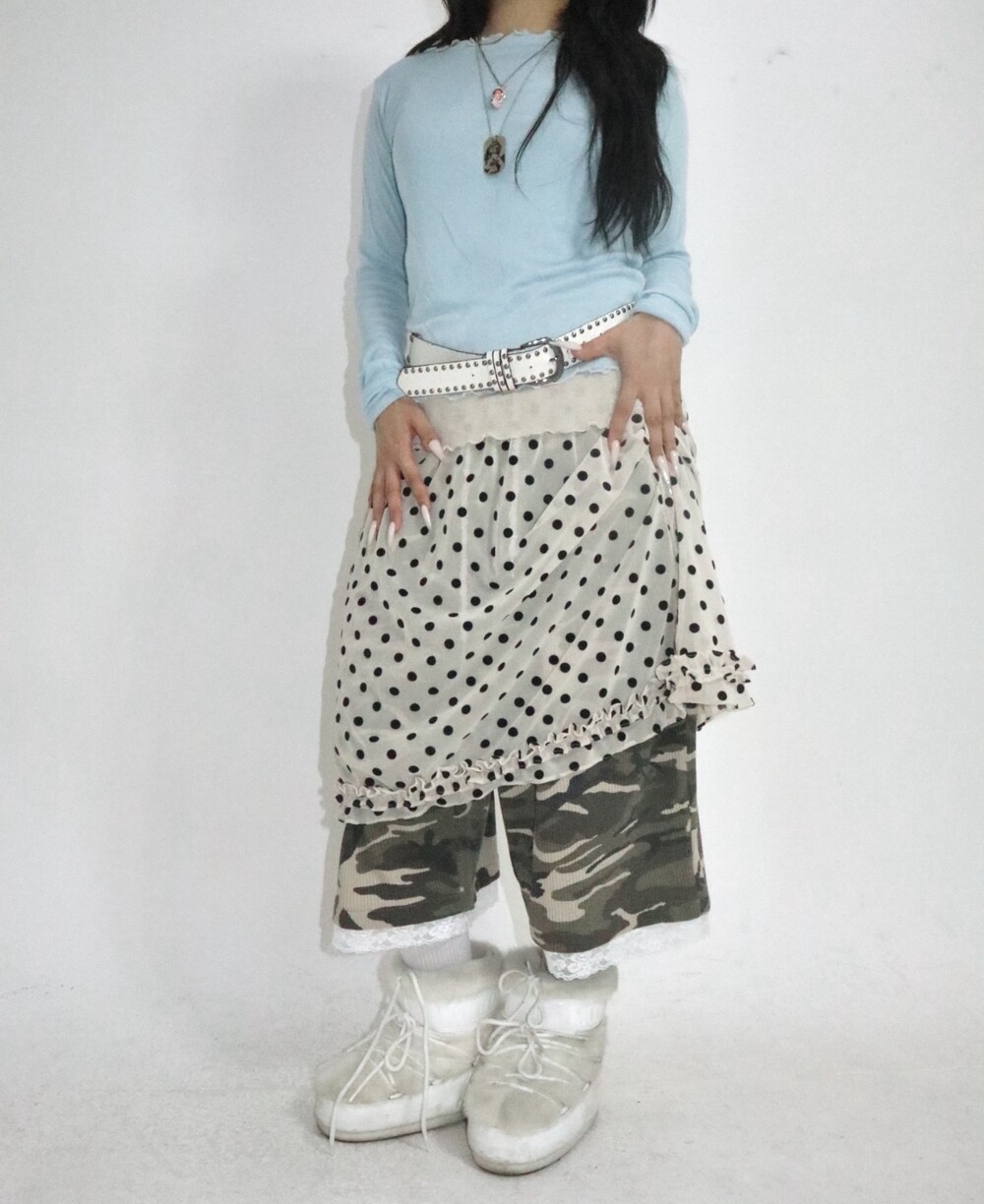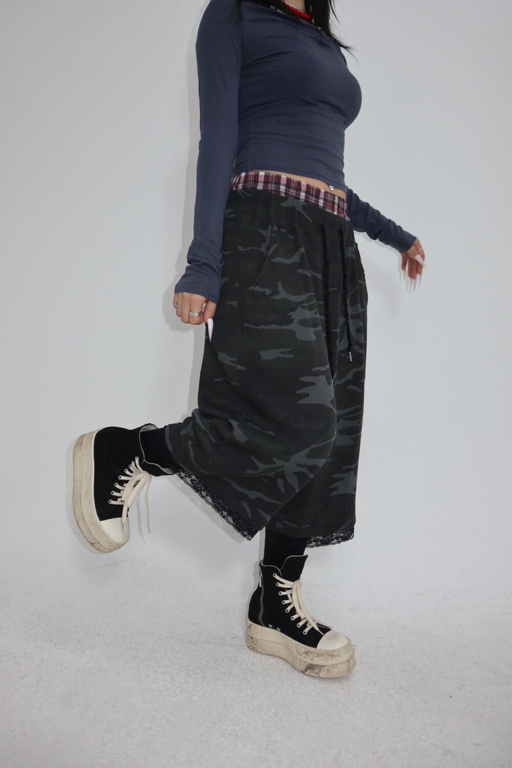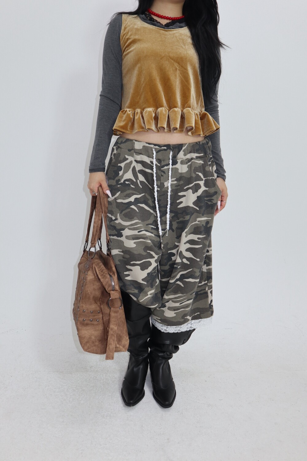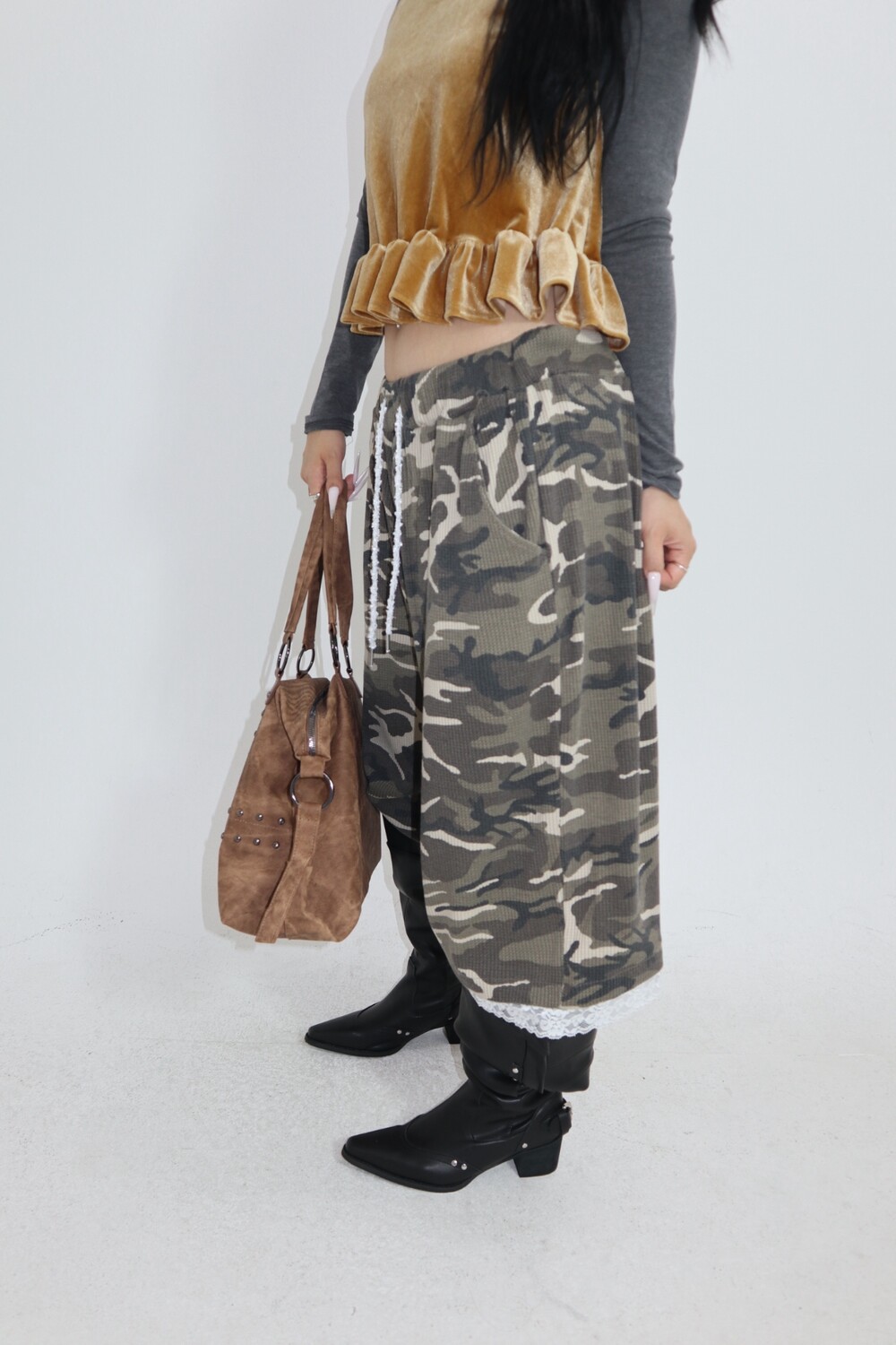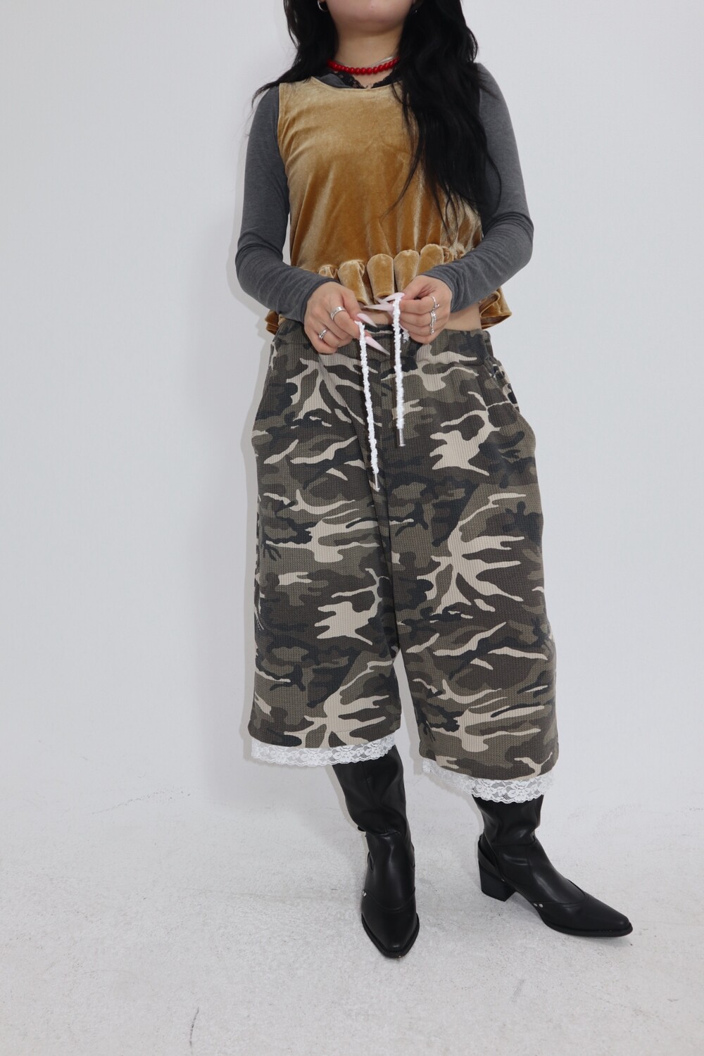 빈티지한 카모 패턴에 레이스 디테일을 더해