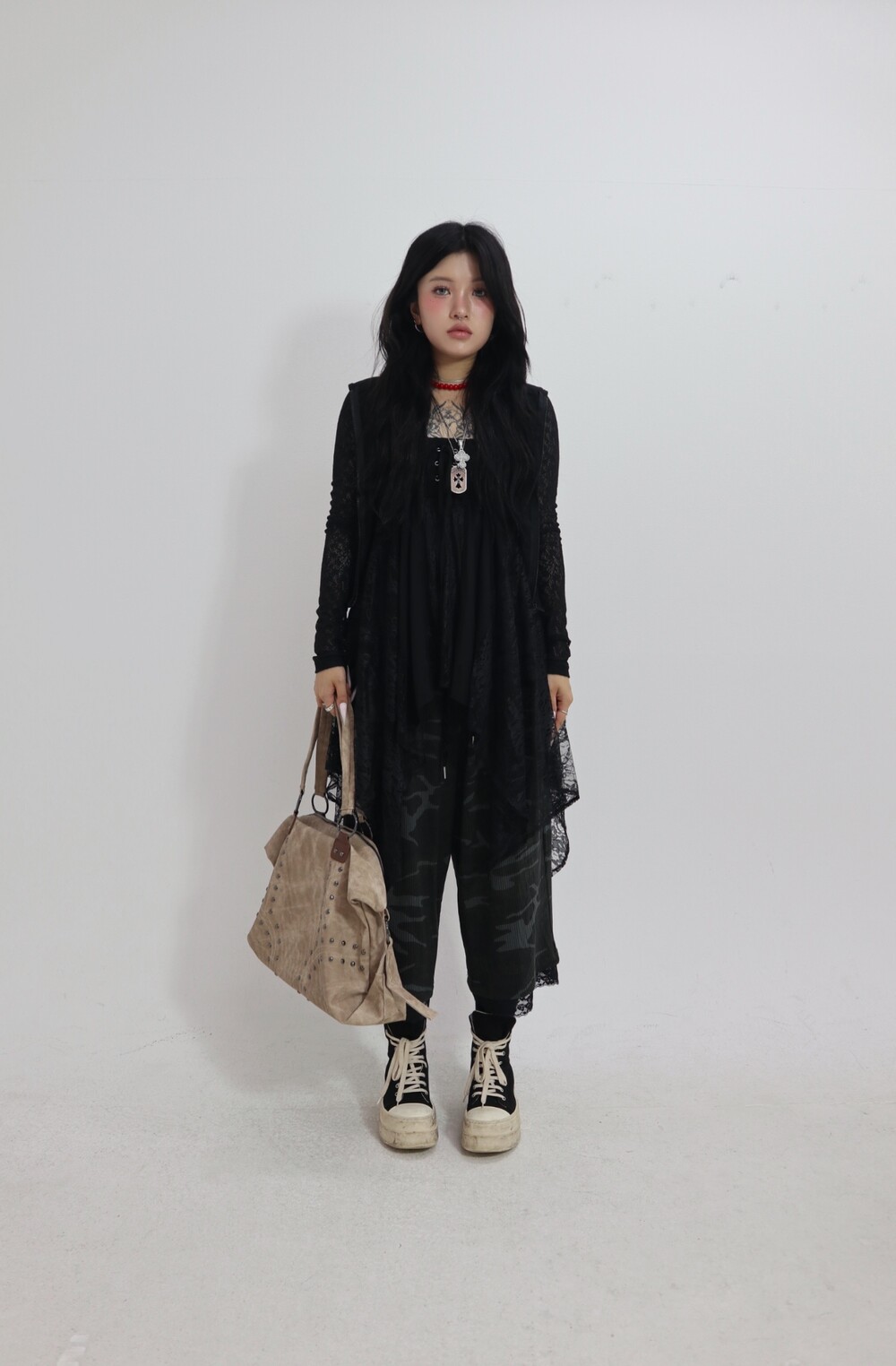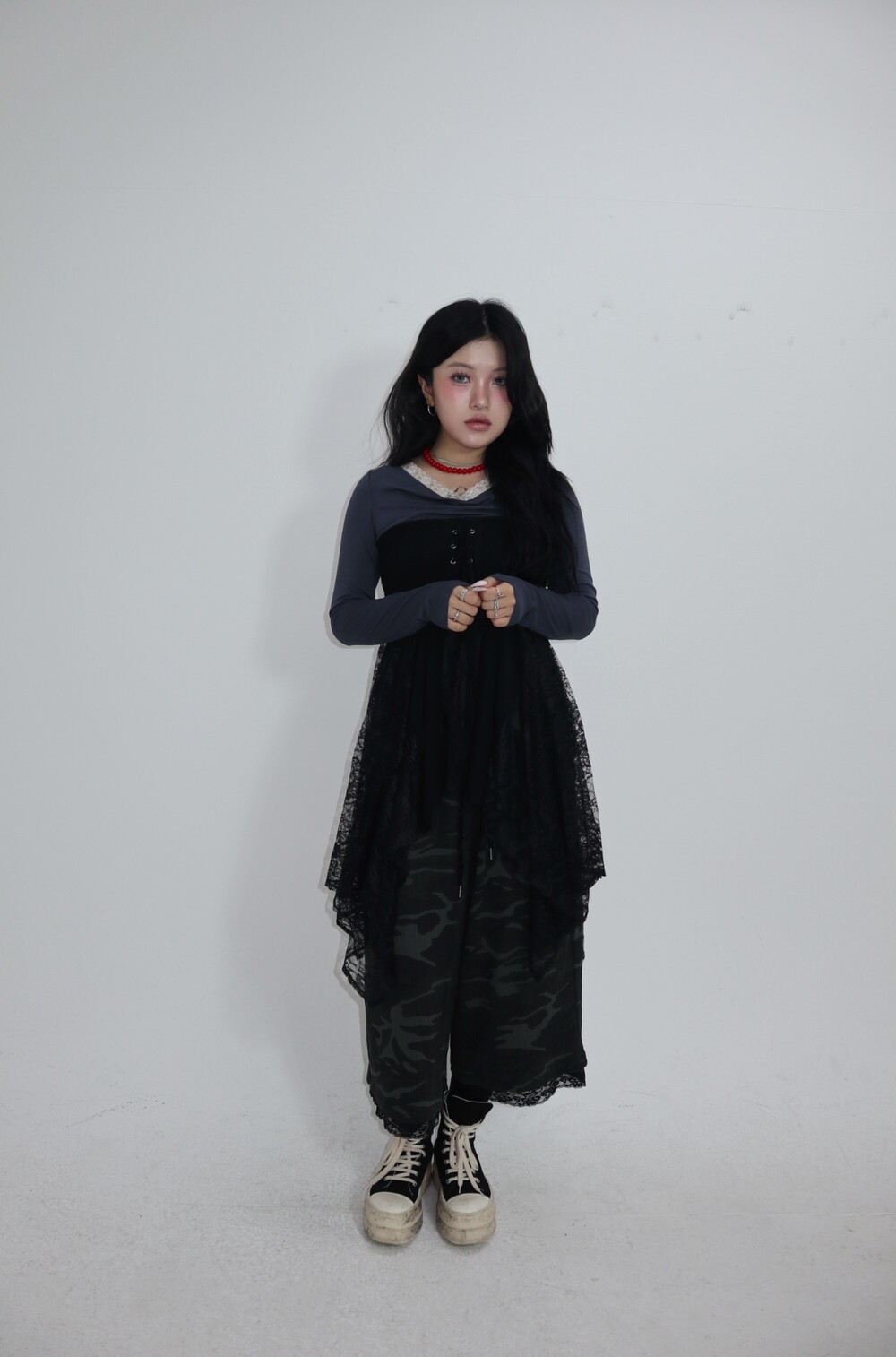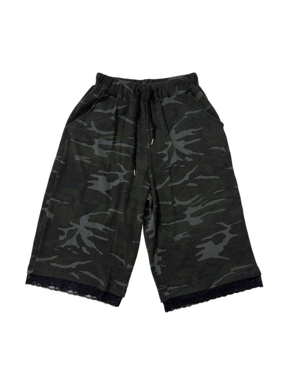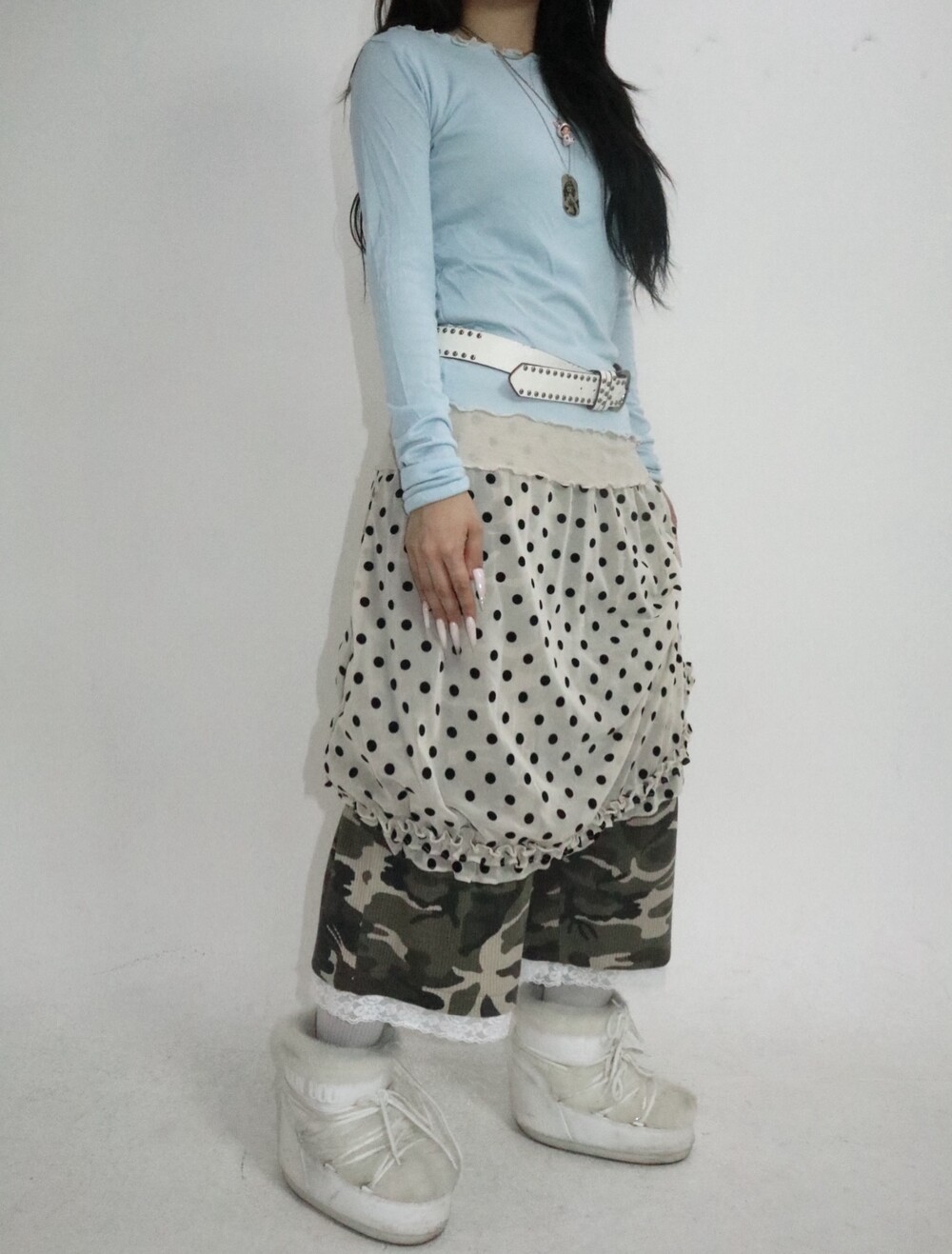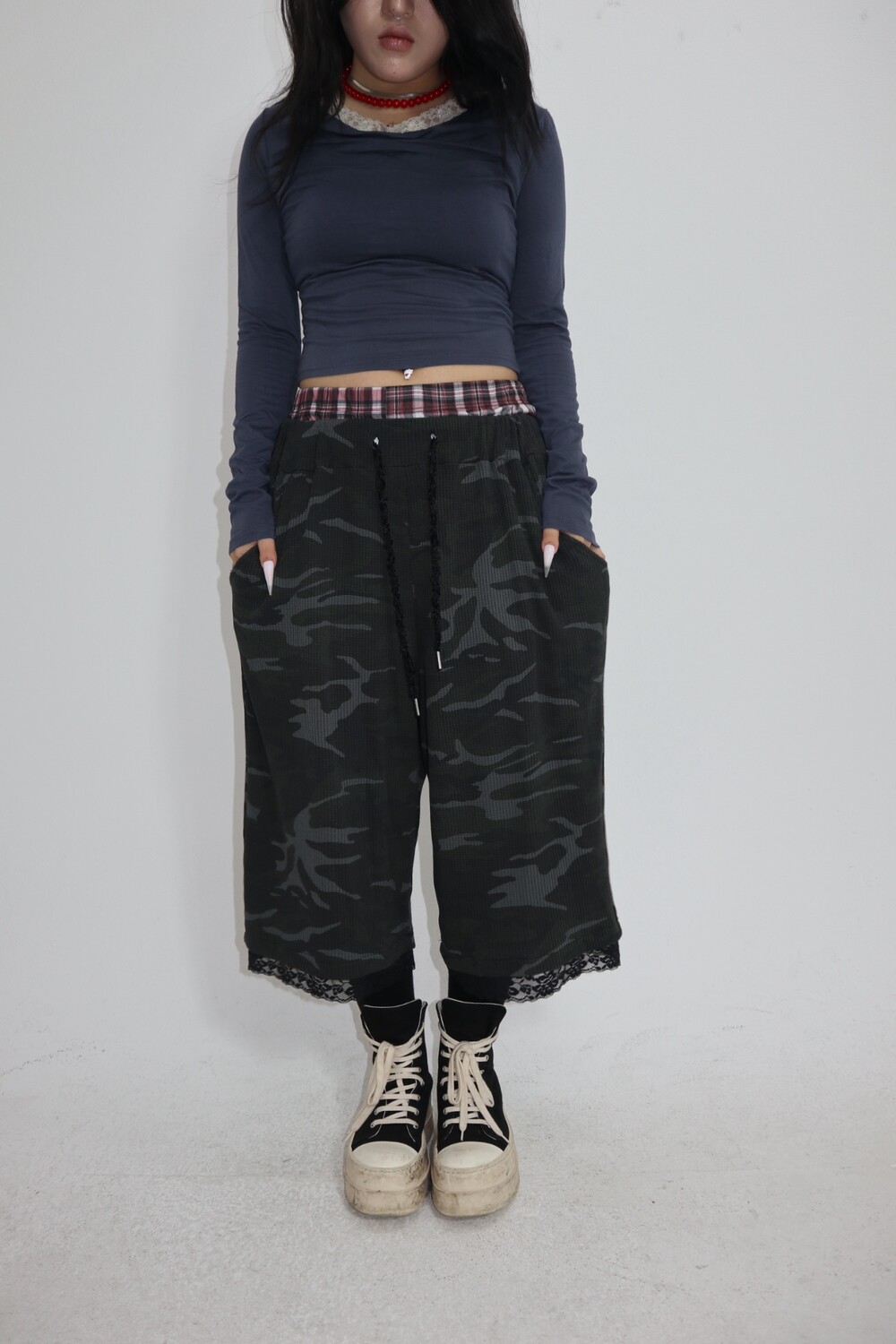 빈티지한 카모 패턴에 레이스 디테일을 더해