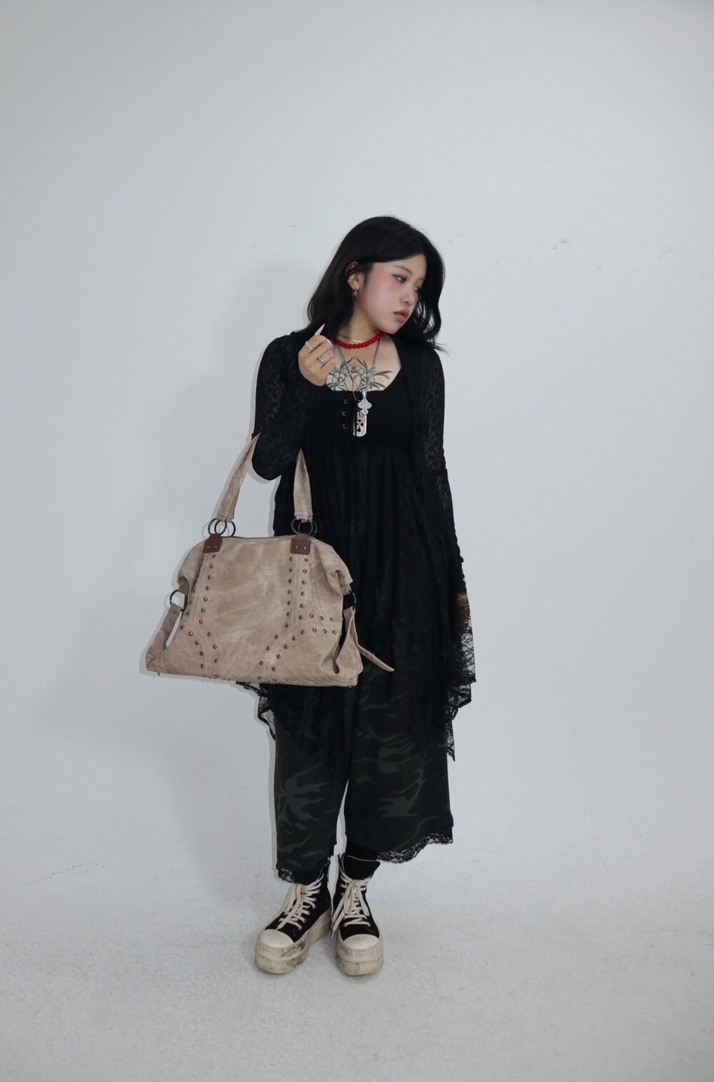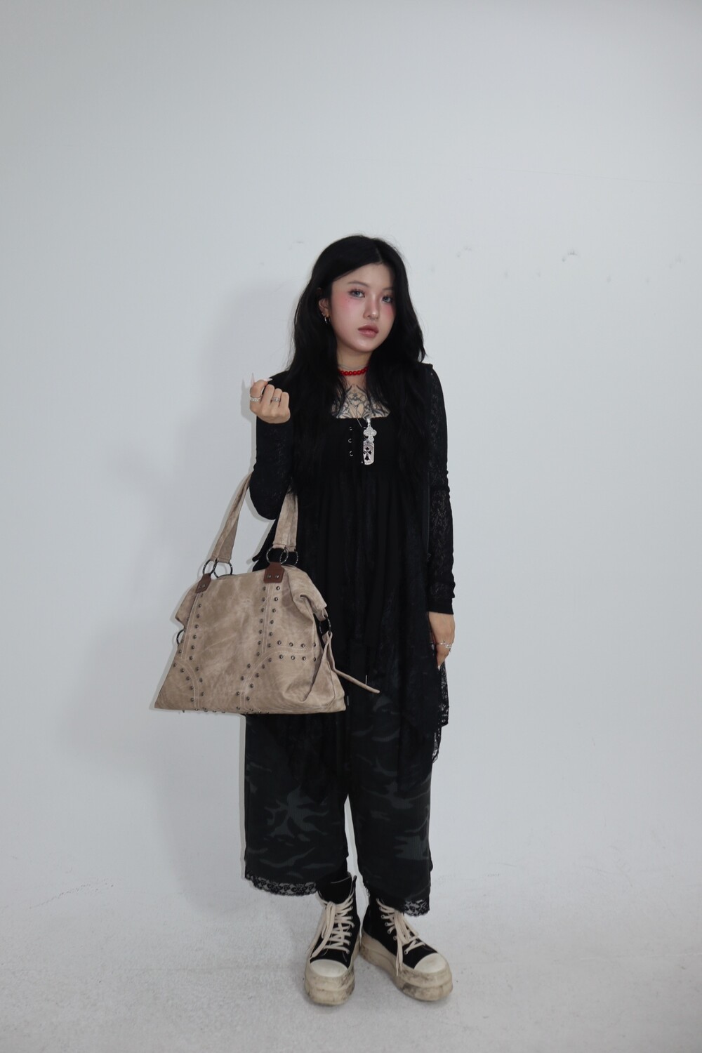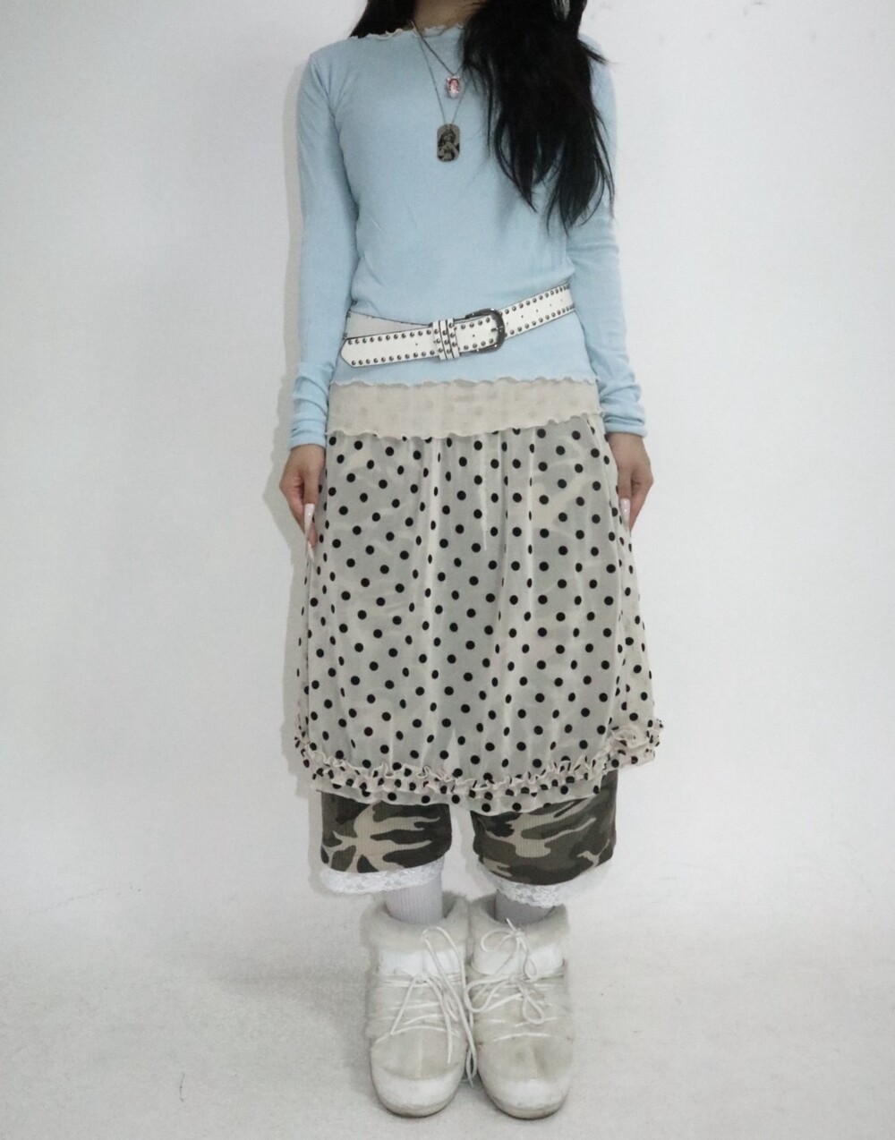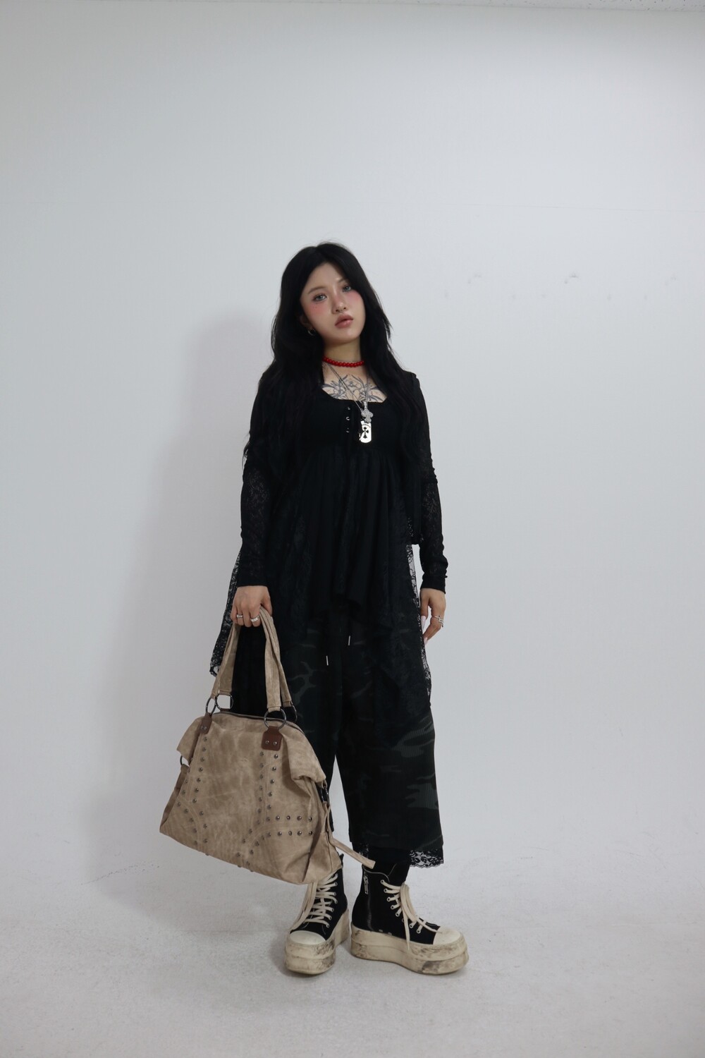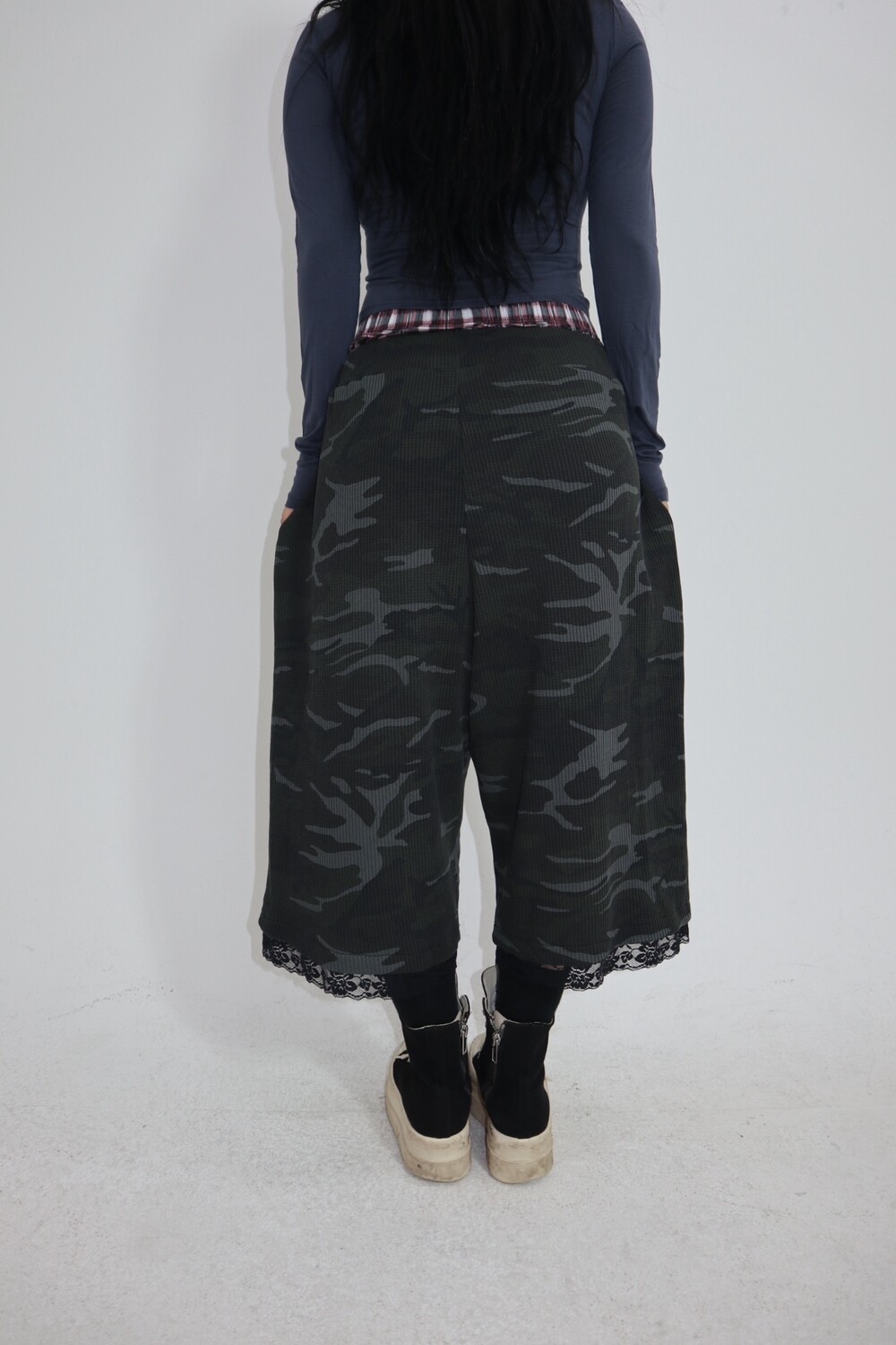 빈티지한 카모 패턴에 레이스 디테일을 더해