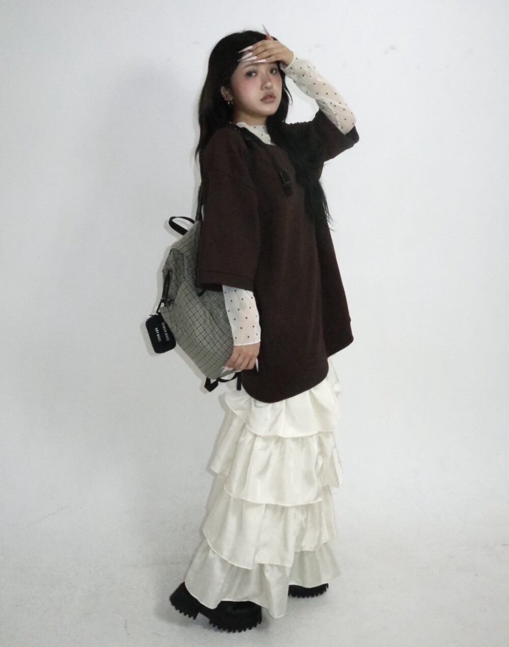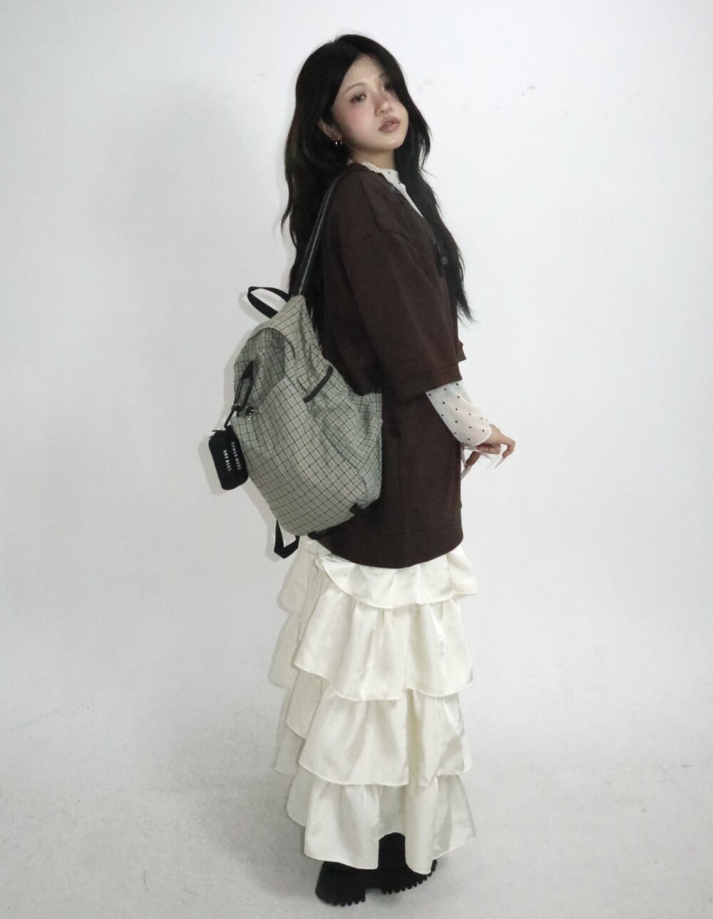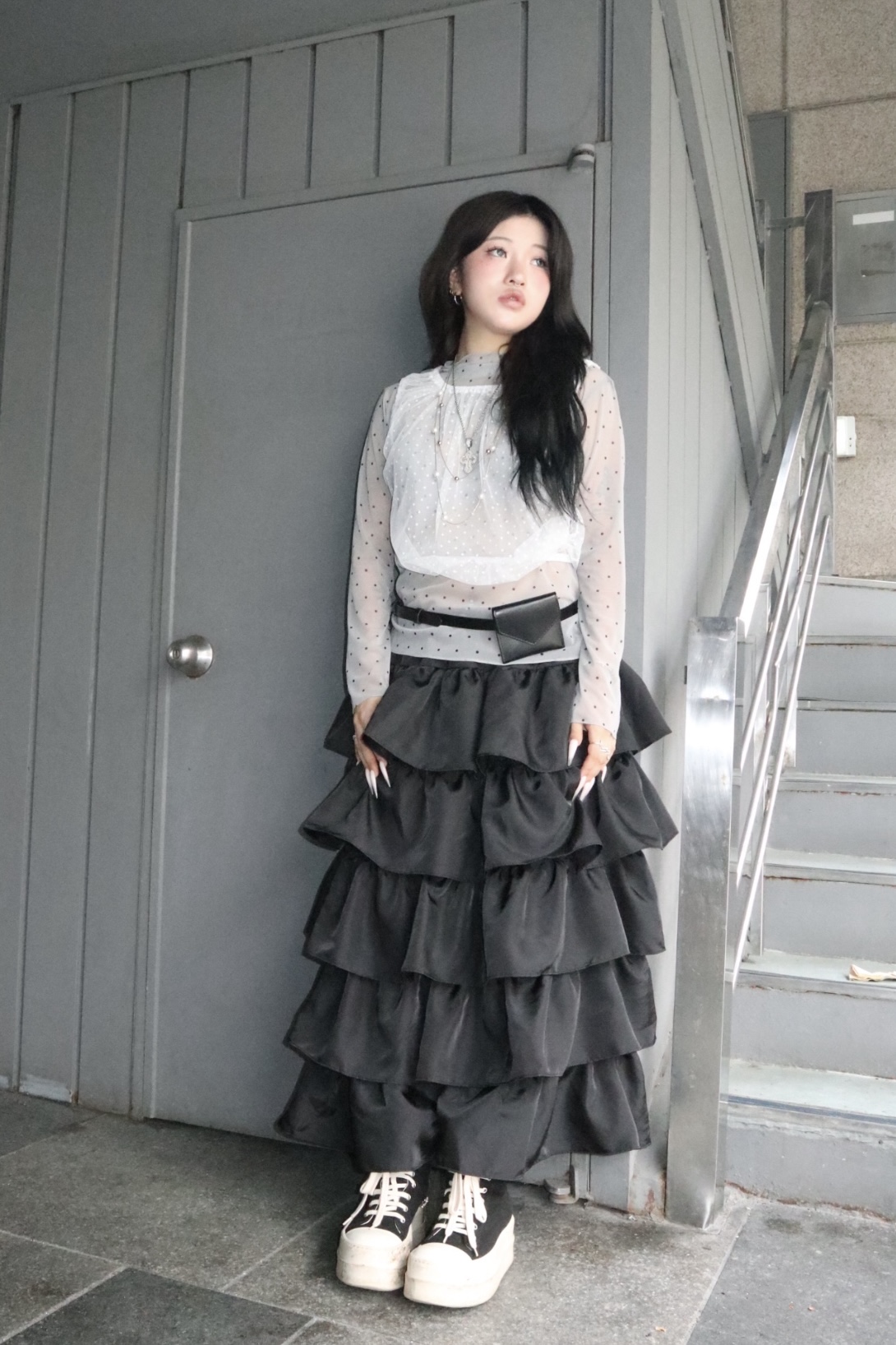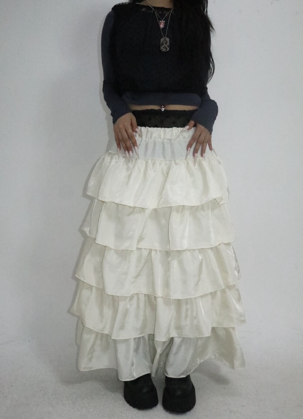 캉캉 러플 디테일로 로맨틱한 무드를 더한 맥시 스커트예요.