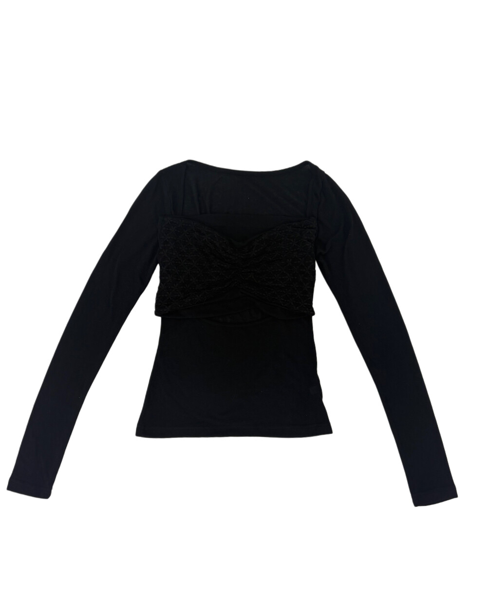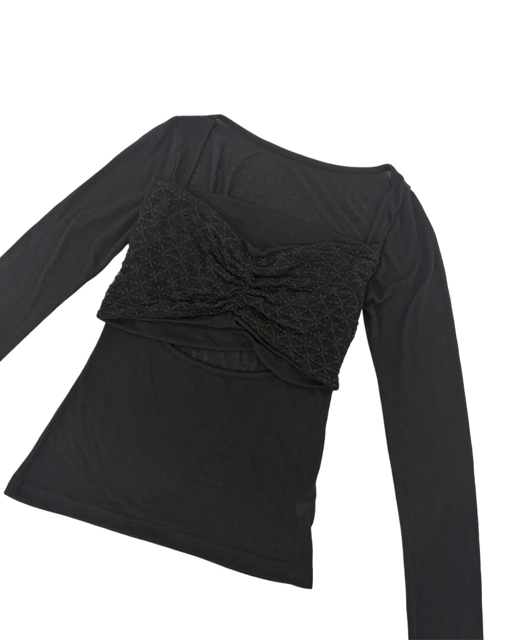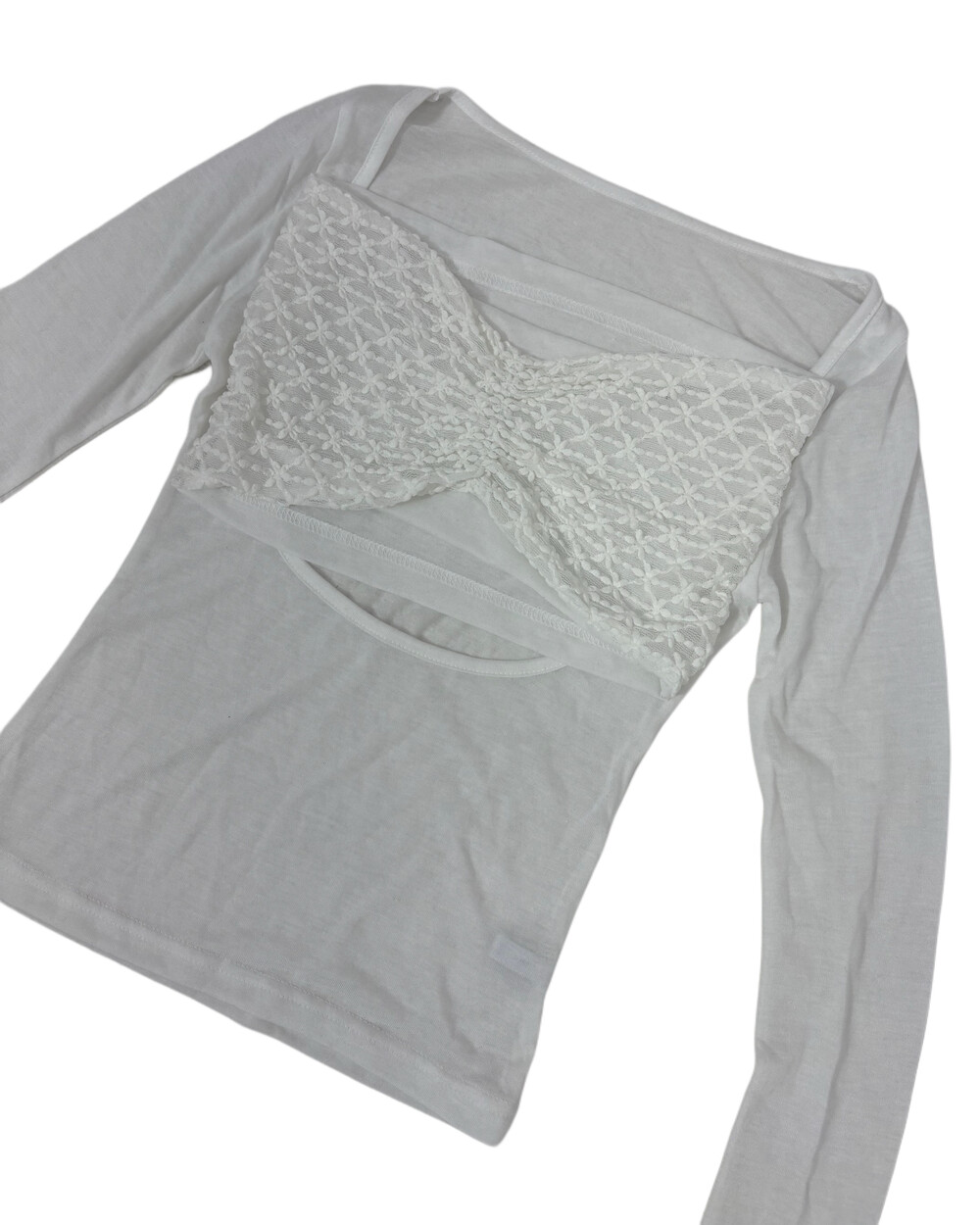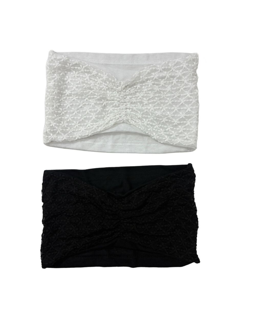 페미닌한 무드에 유니크함을 더한 플라워 레이스 튜브탑 & 시스루 긴팔 탑 세트 소개드려요.