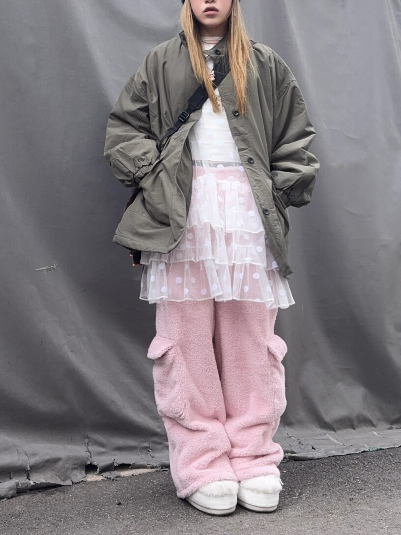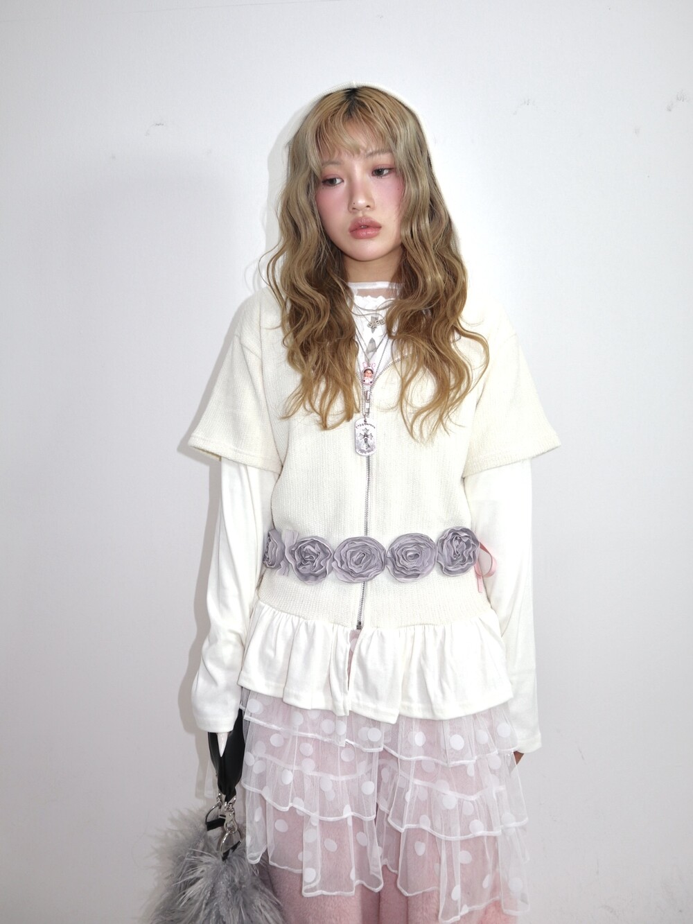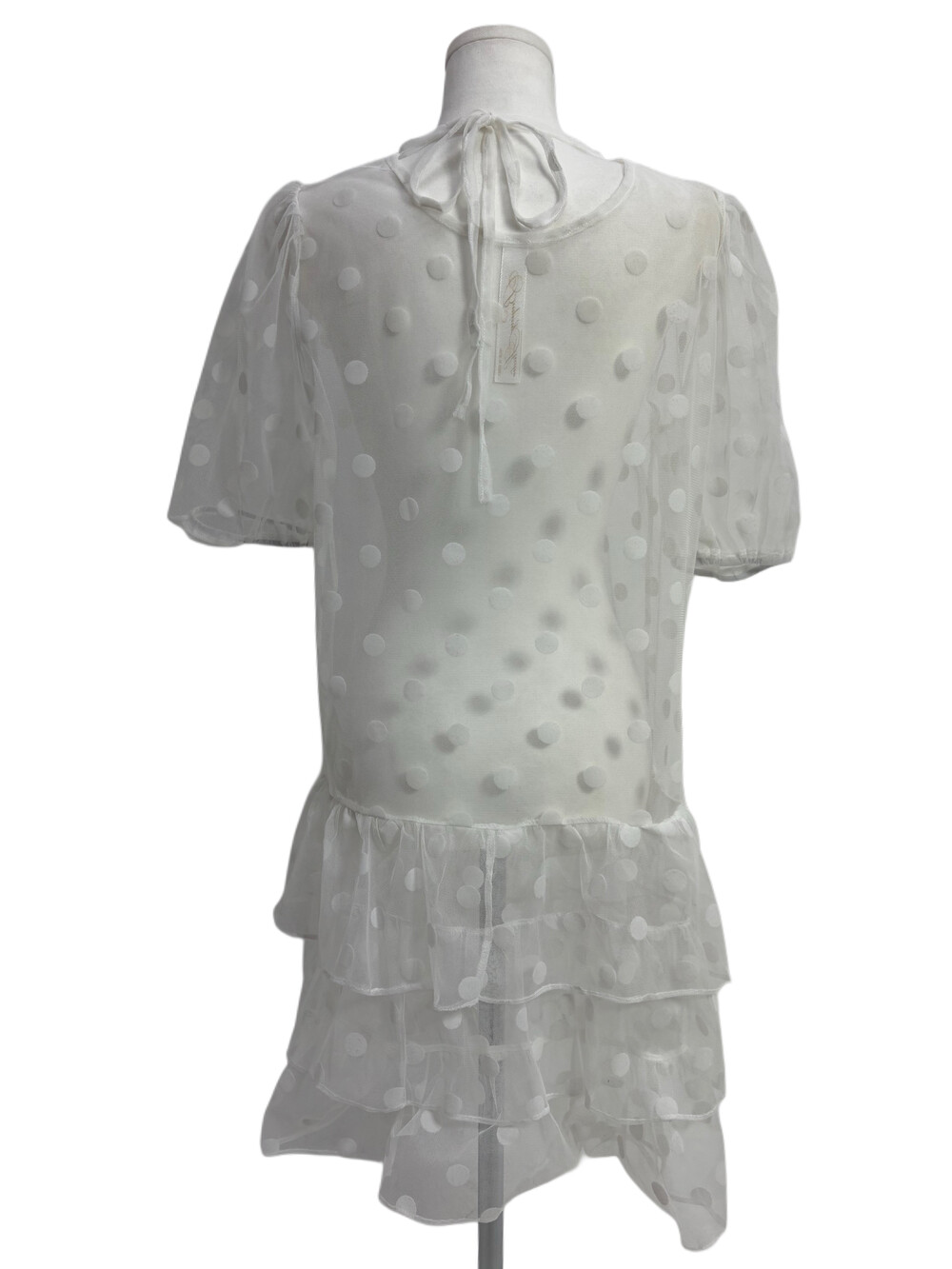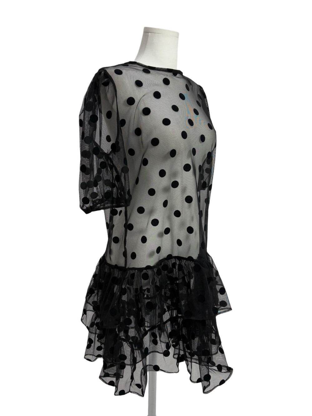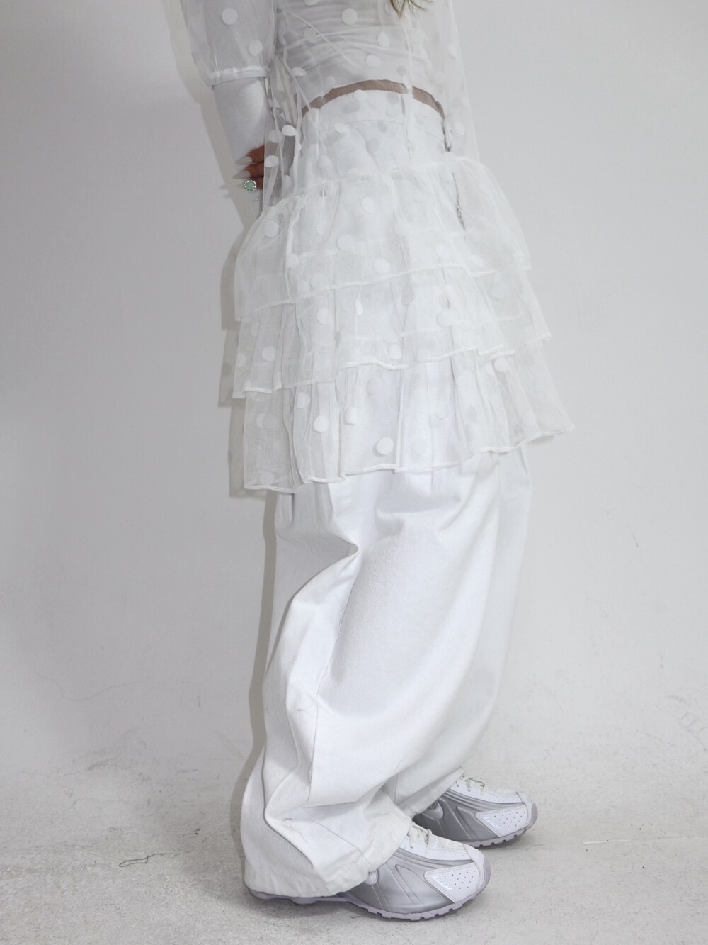 은은한 도트 패턴과 시스루 메쉬 소재가 어우러져 빈티지, 페미닌 무드를 연출합니다.