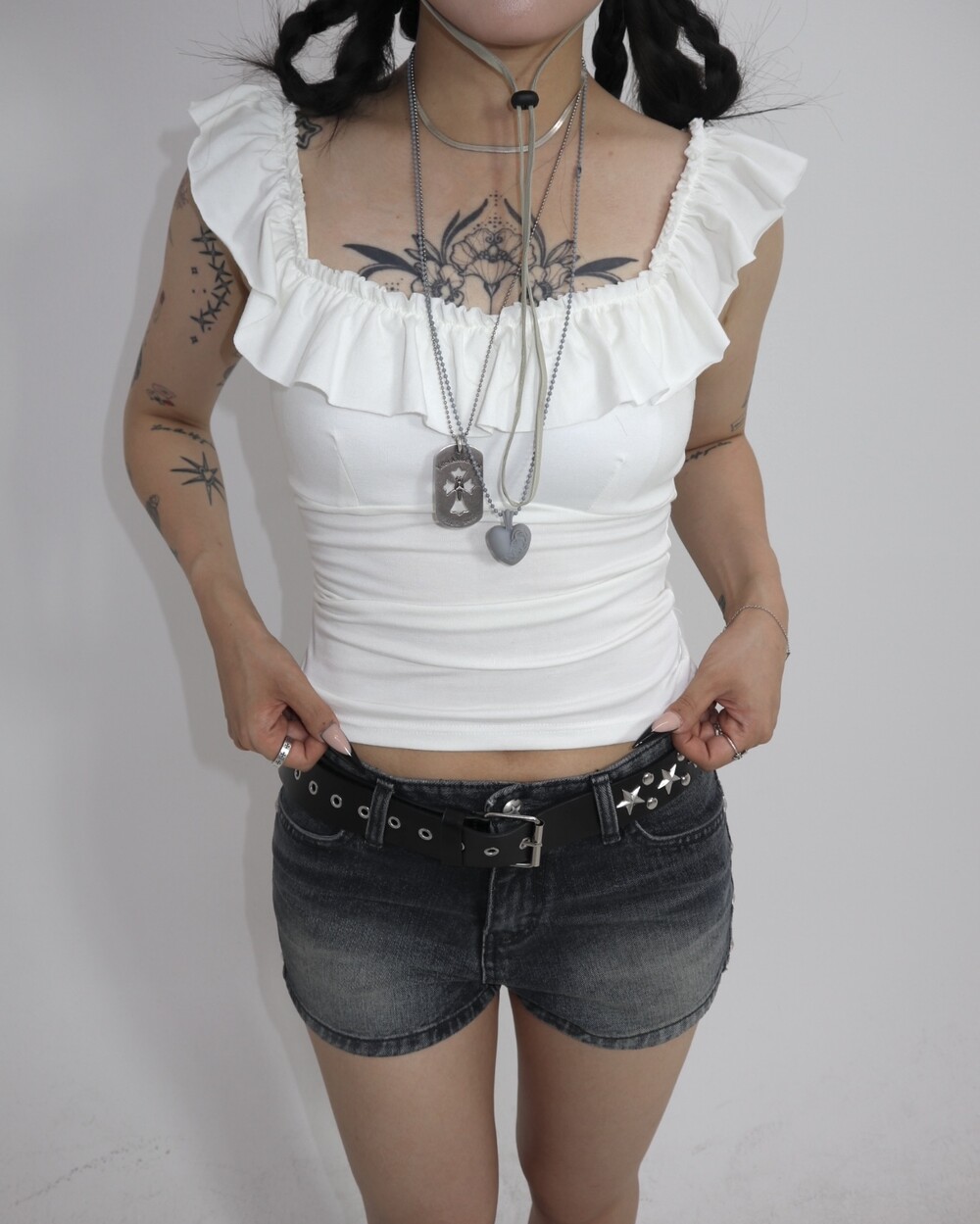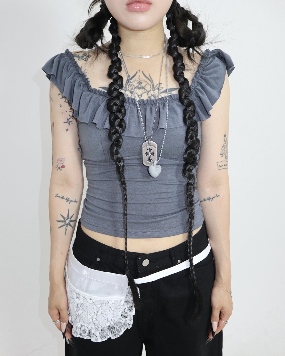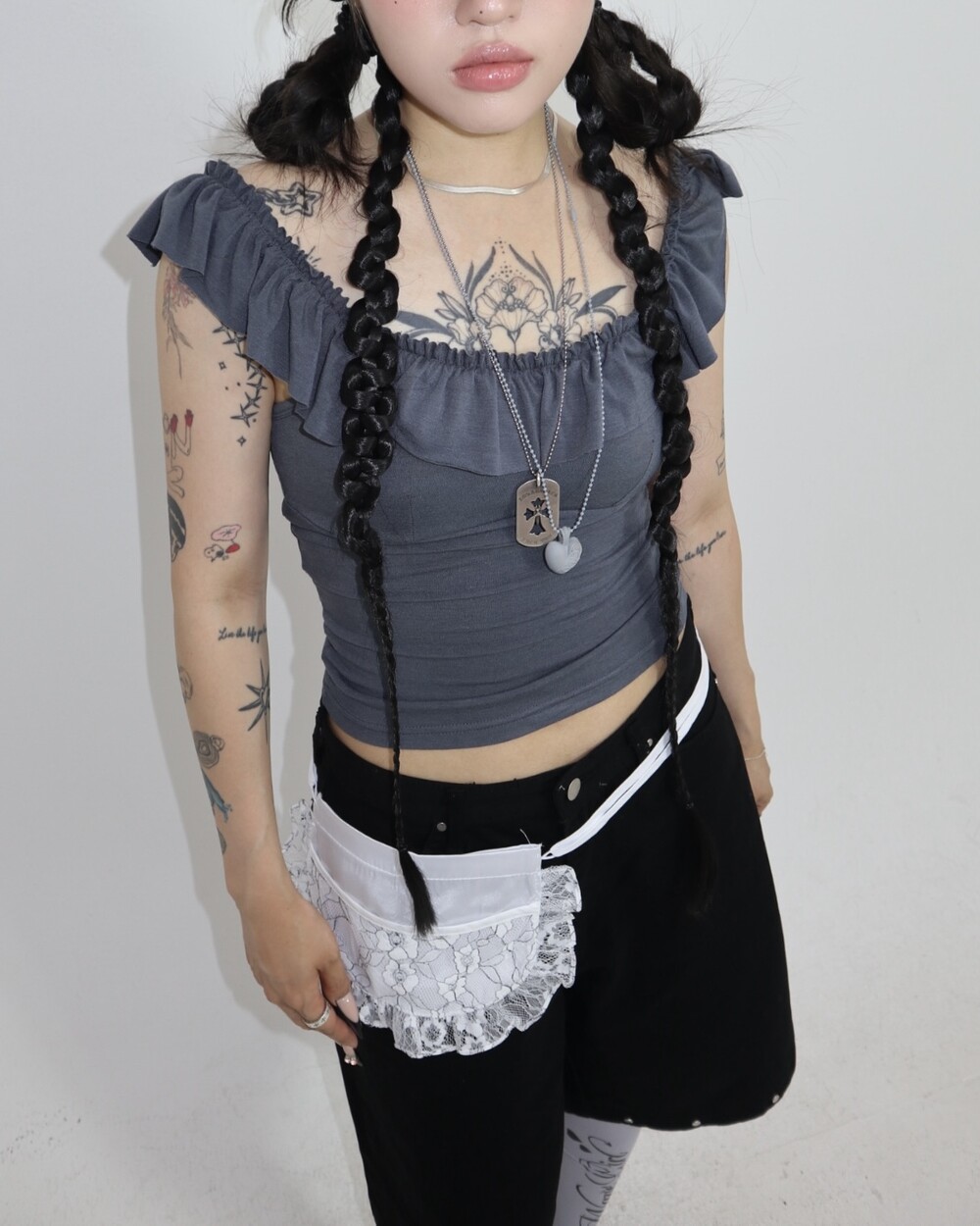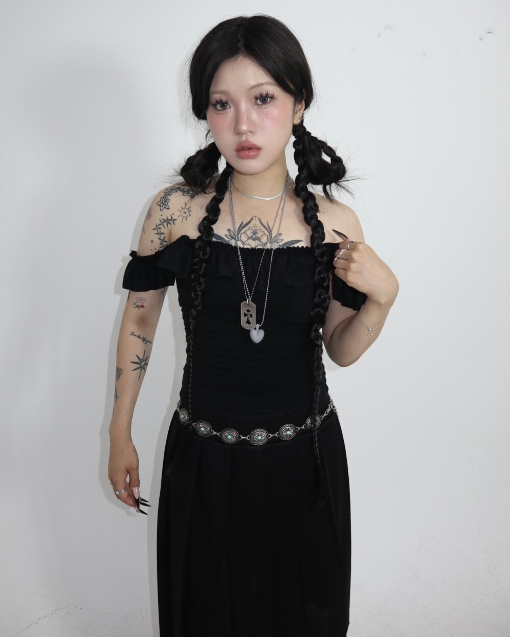 시스루 셔츠나 볼레로와 레이어드해도 예쁜 만능템.