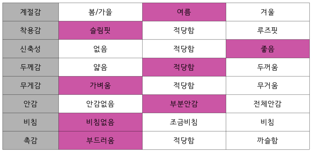 숄더 라인을 따라 자연스럽게 흐르는 실루엣이