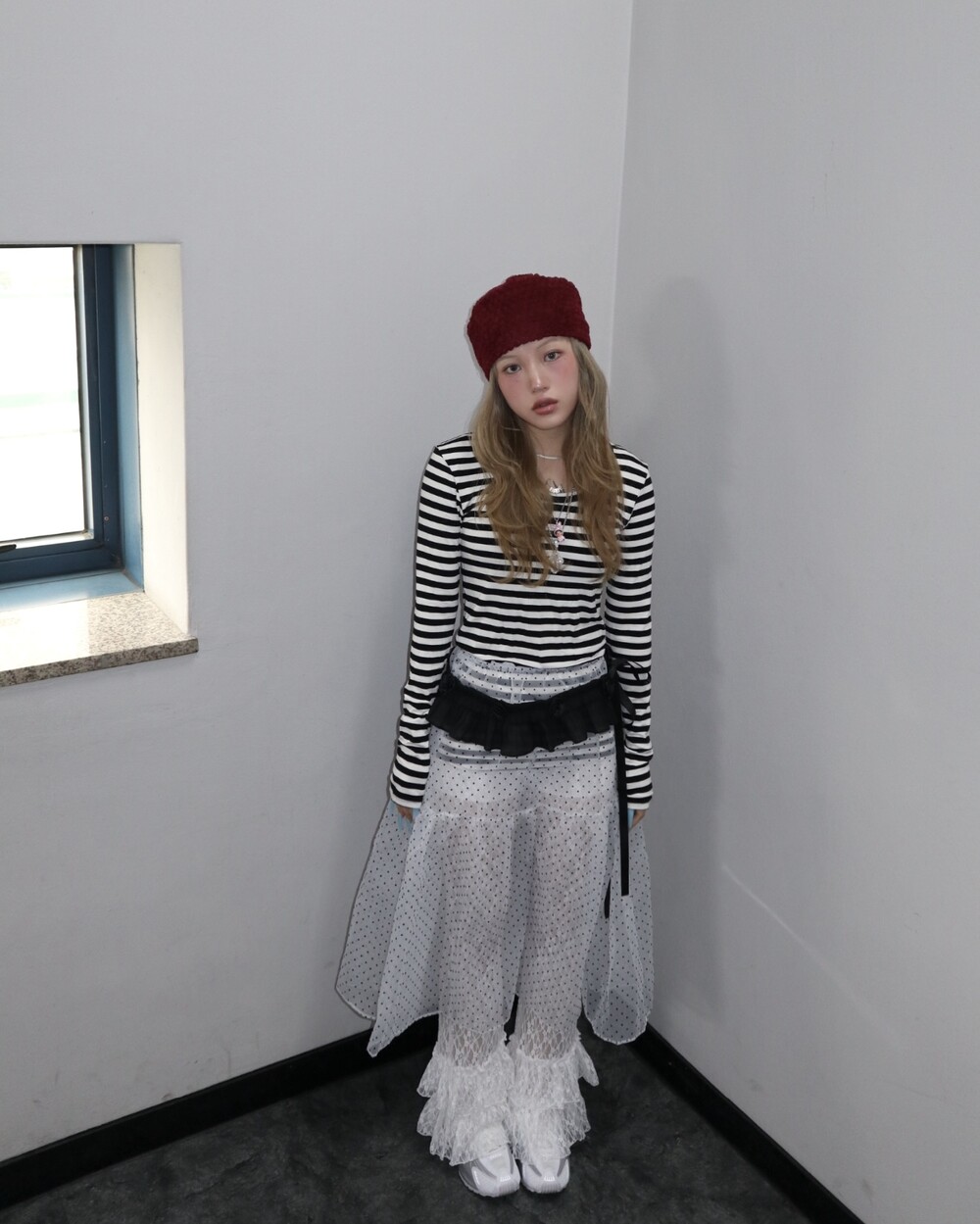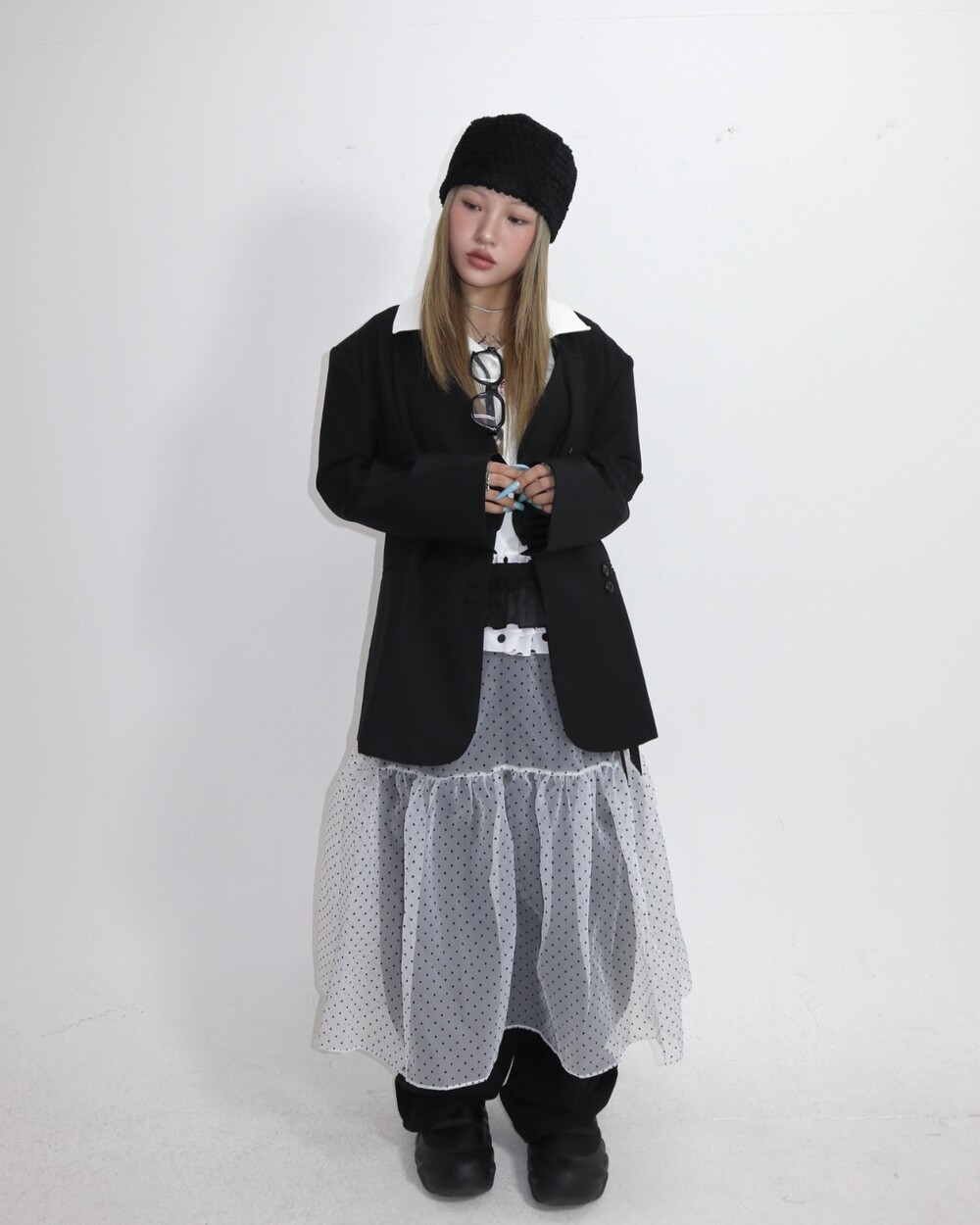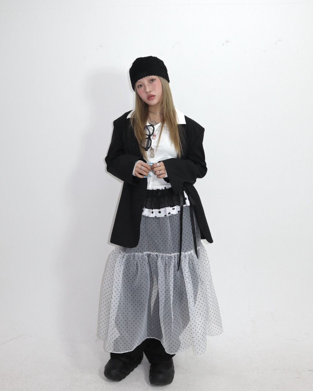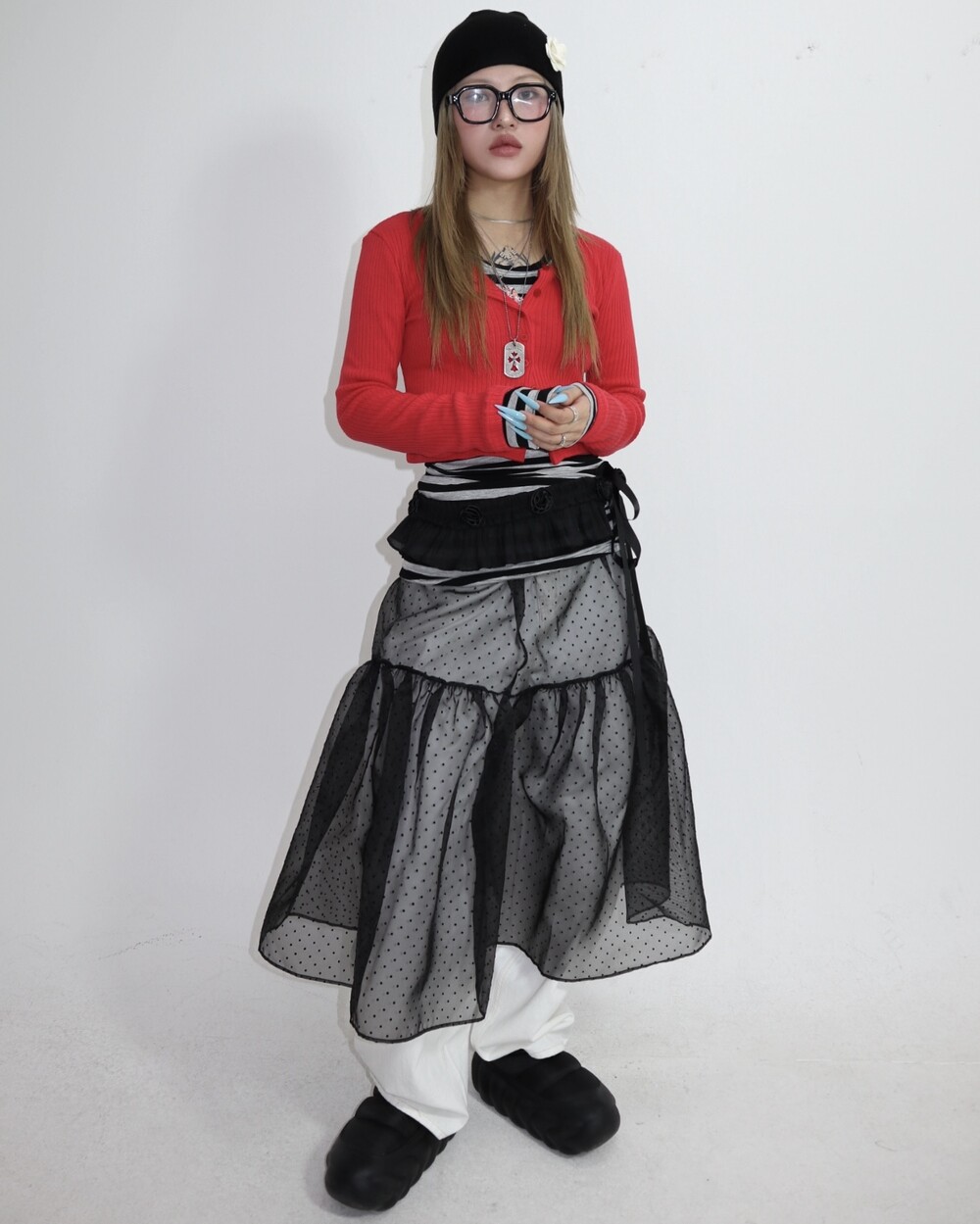 시스루 도트 미디 레이어드 스커트 소개드려요 ⚫⚪✨
