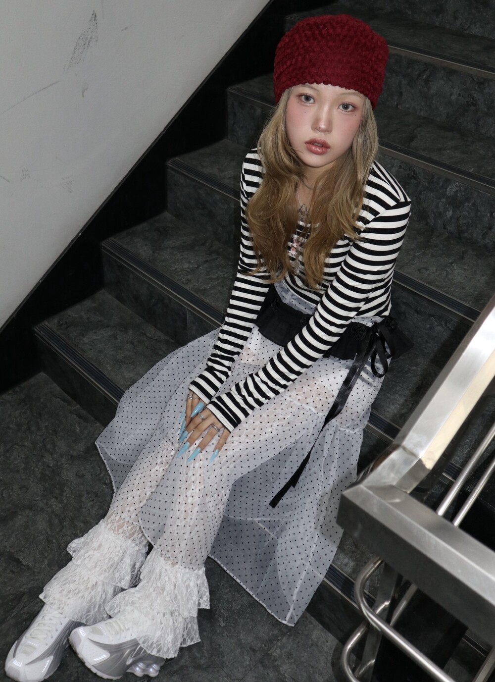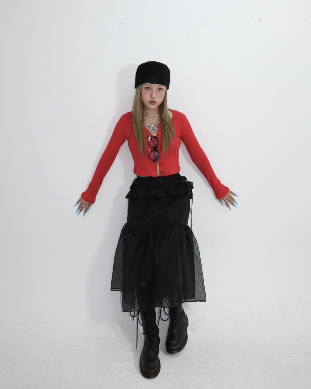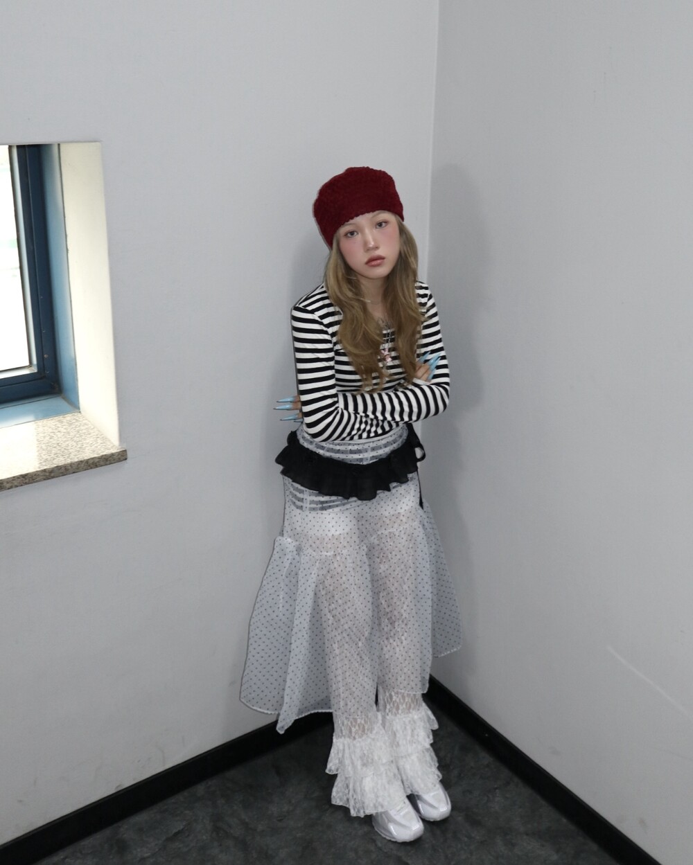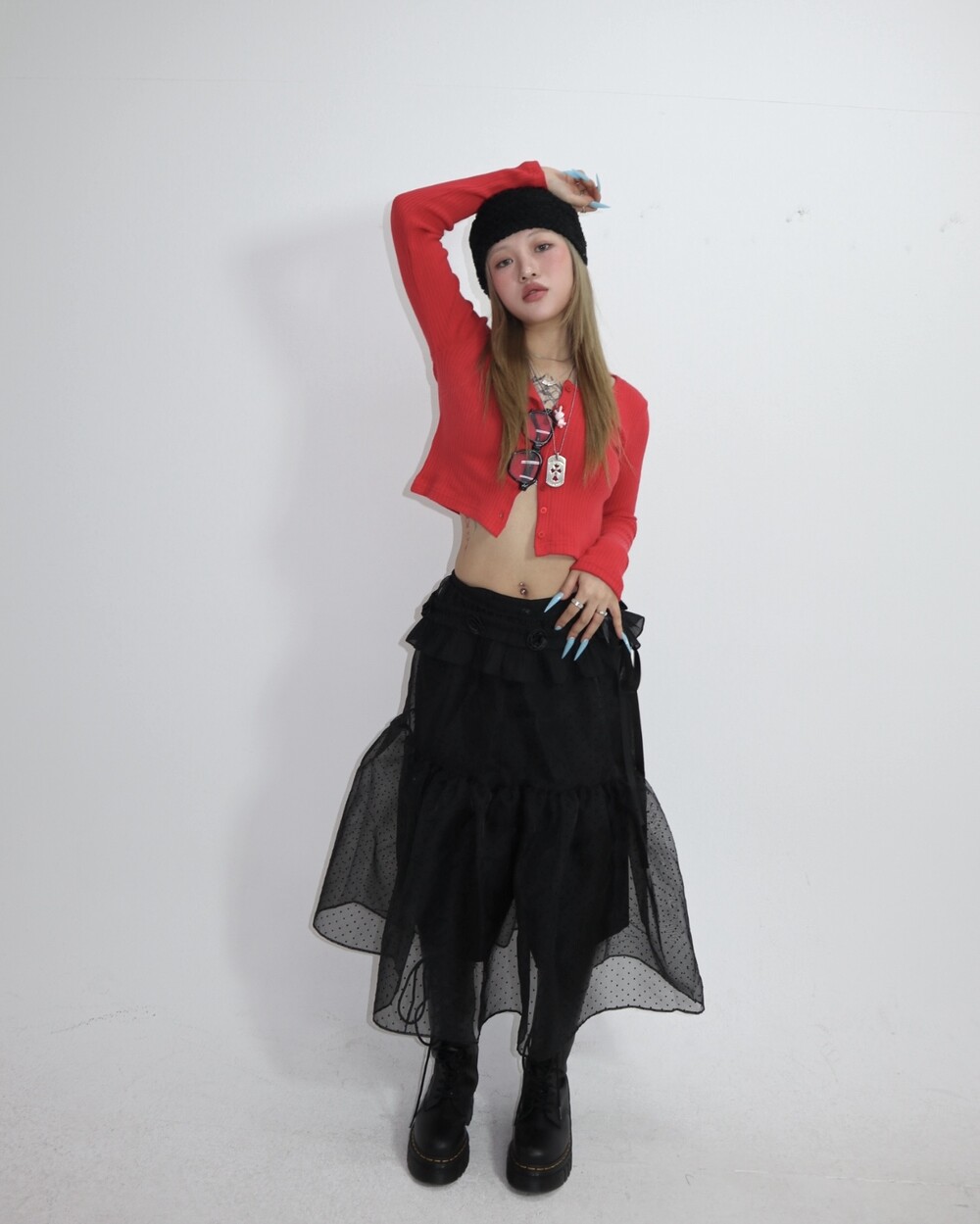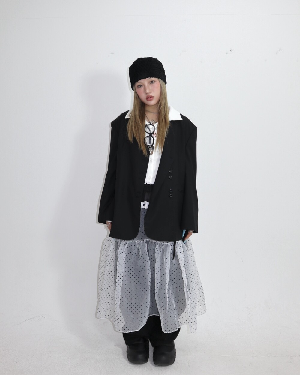 시스루 도트 미디 레이어드 스커트 소개드려요 ⚫⚪✨