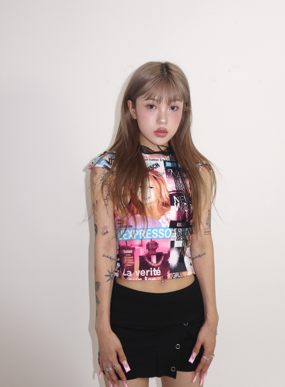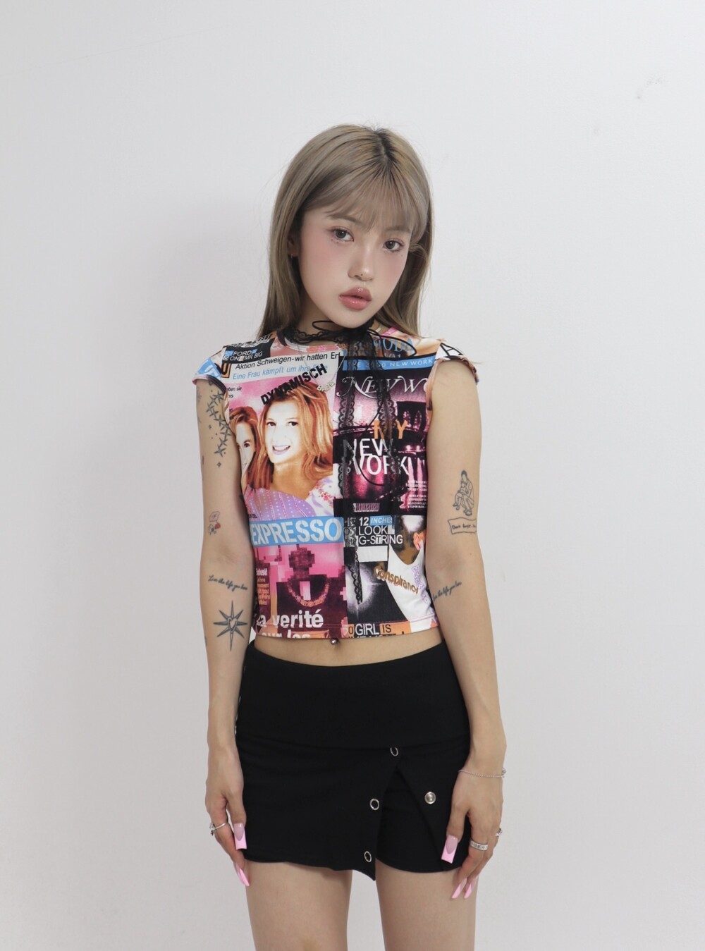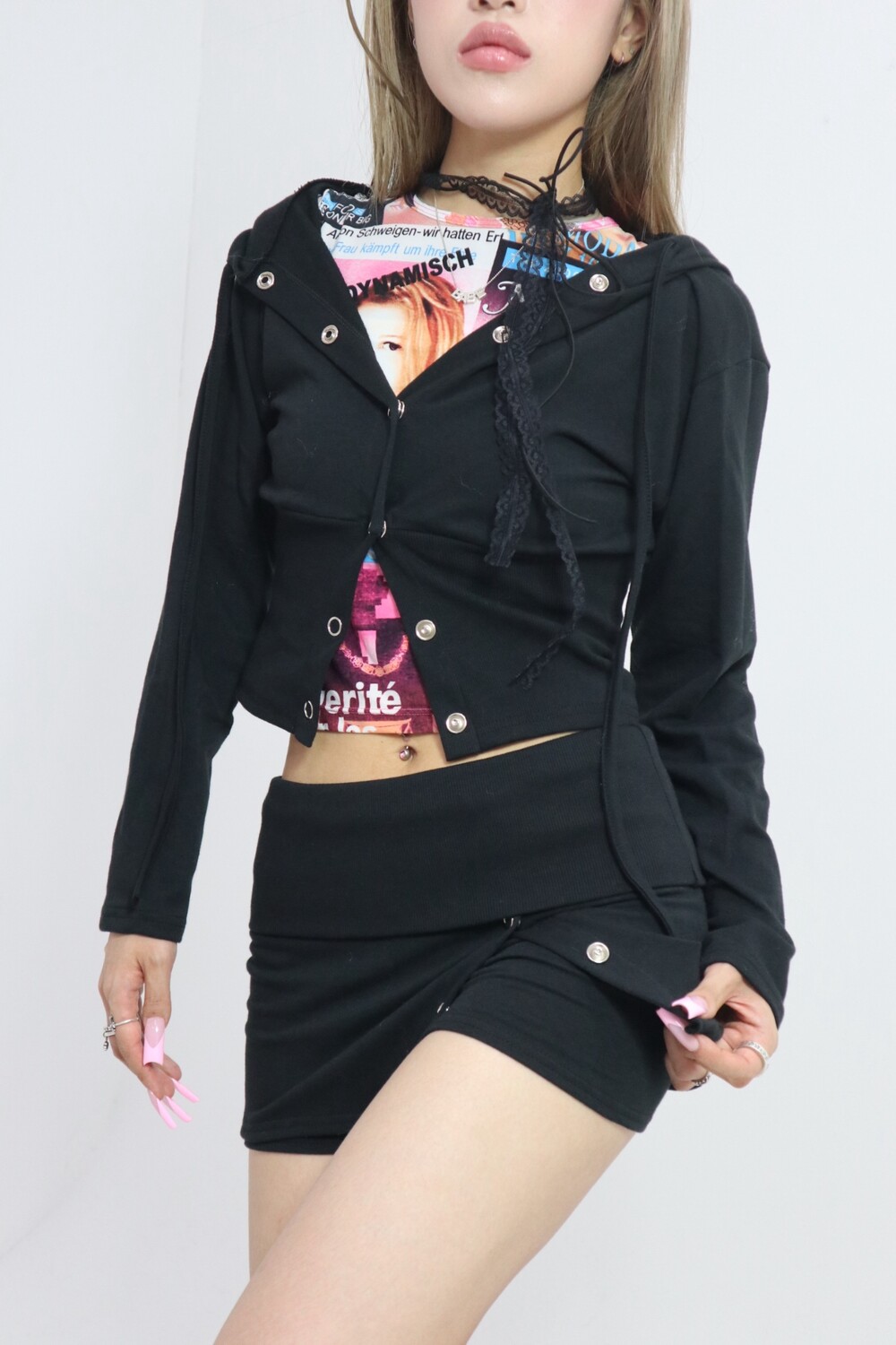 크롭 가디건이나 후드탑과 같이 레이어드 추천드리며