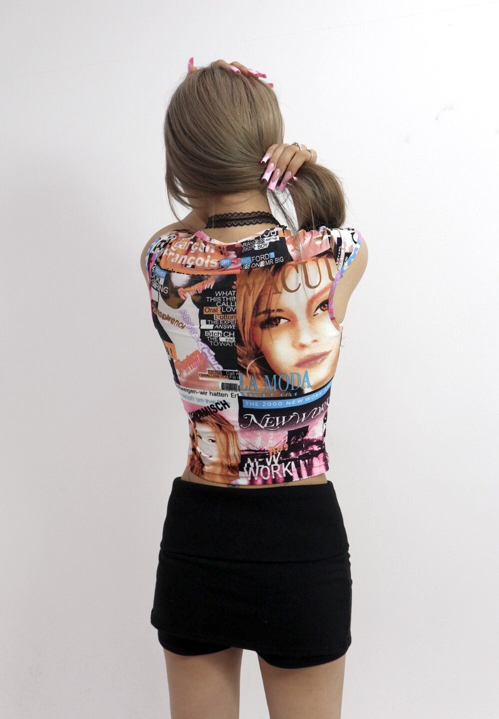 가십걸이 떠오르는 빈티지 그래픽의 크롭 탑
