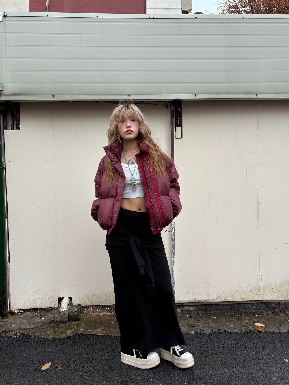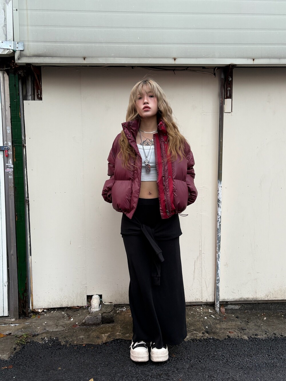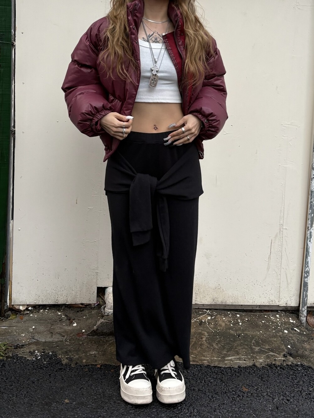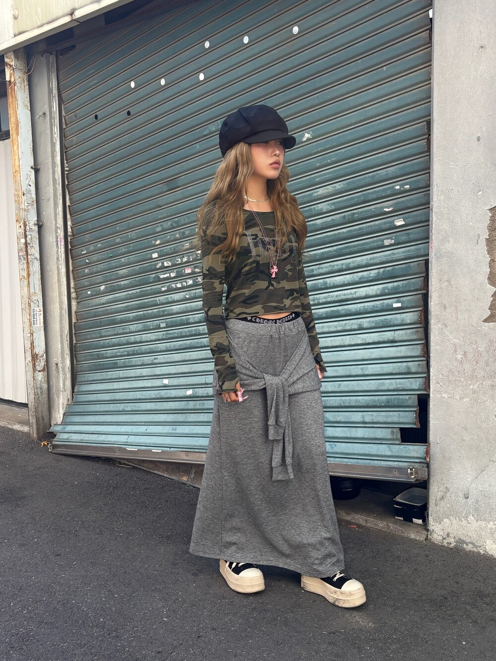 후드를 두른 듯한 독특한 디자인 디테일이 돋보이며, 맥시한 기장감으로 멋스러운 실루엣의 스커트 소개드려요 :)