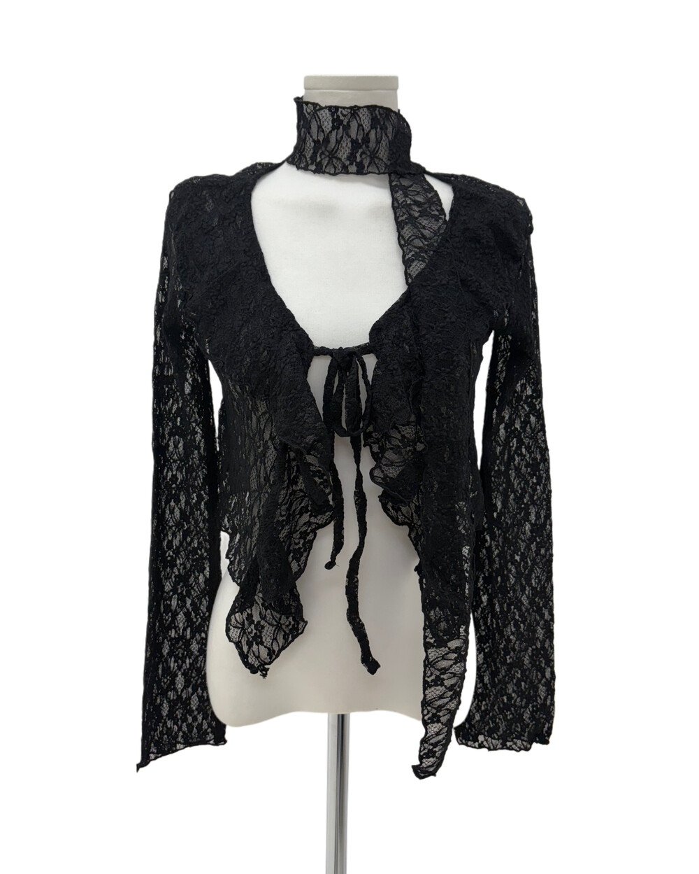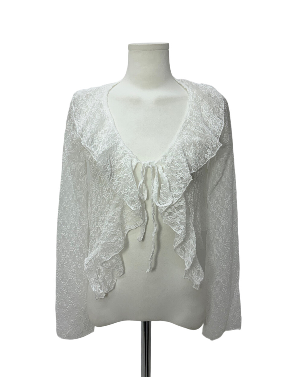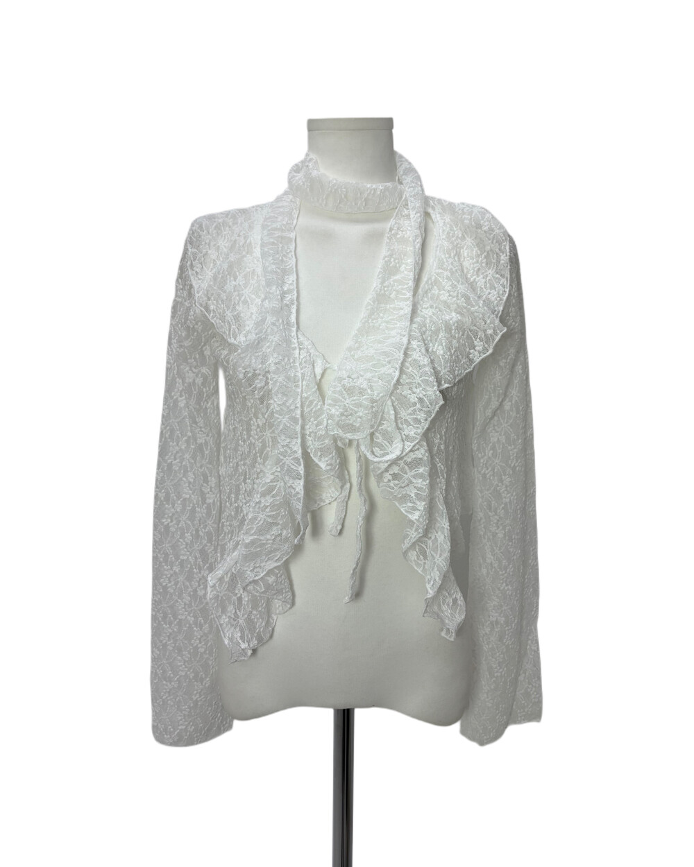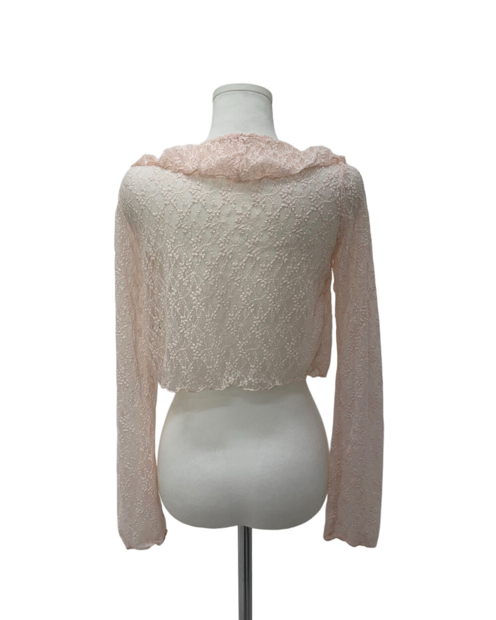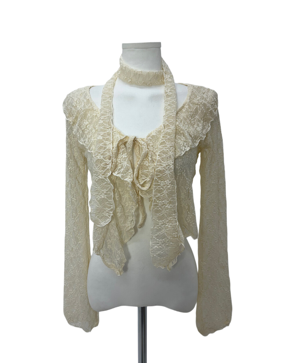 은은한 플라워 레이스와 러플 카라 디테일이 포인트인