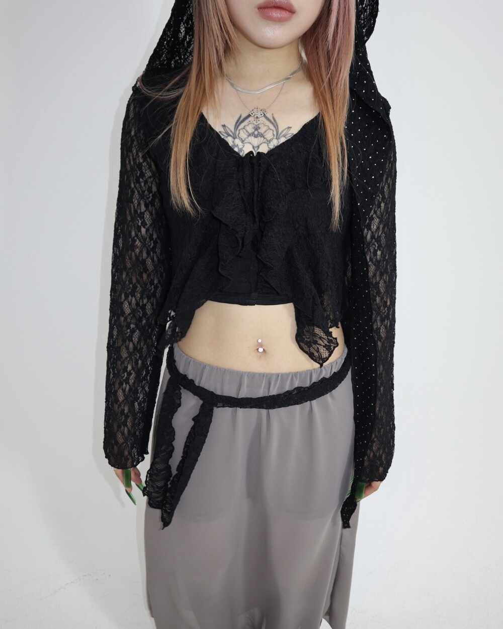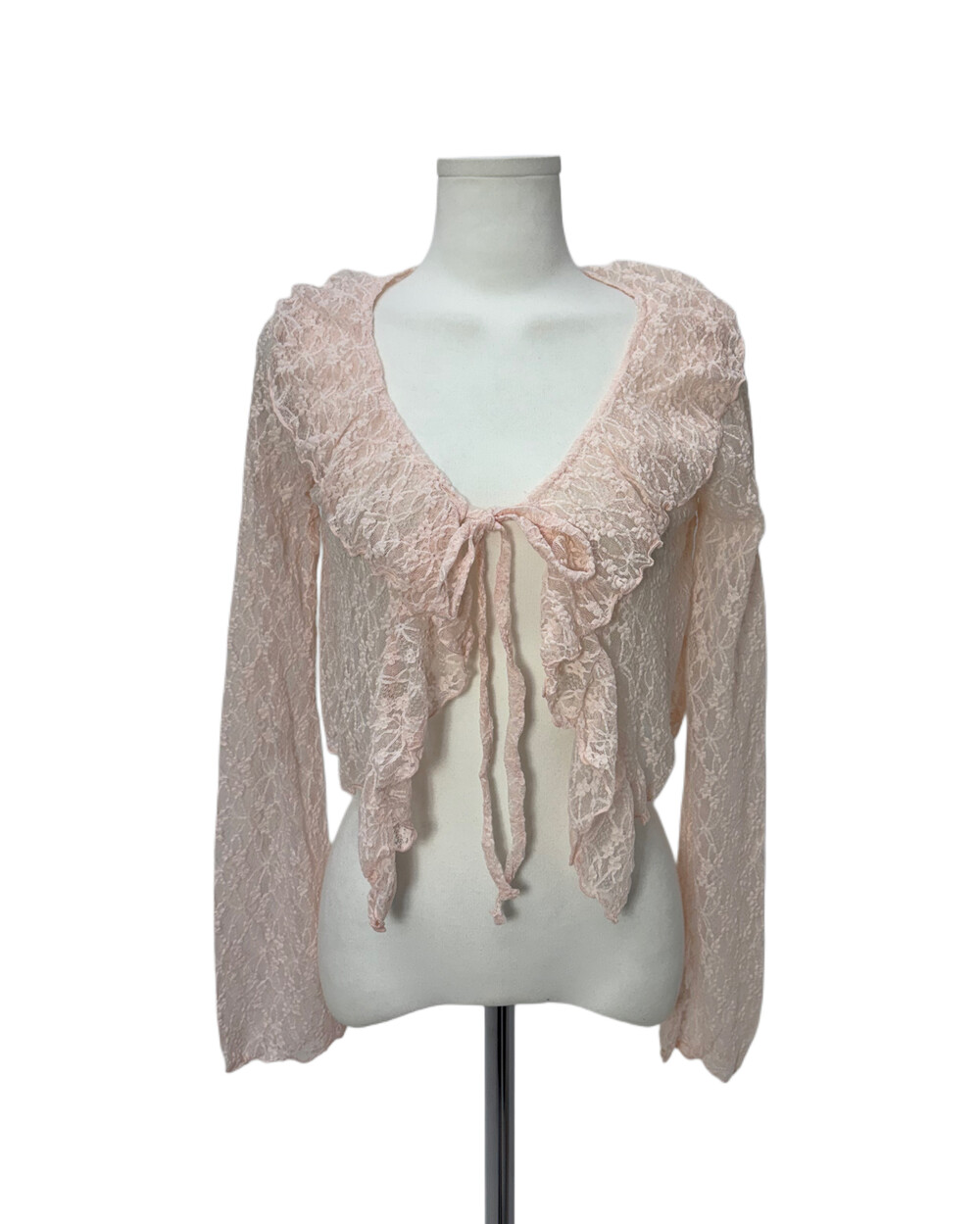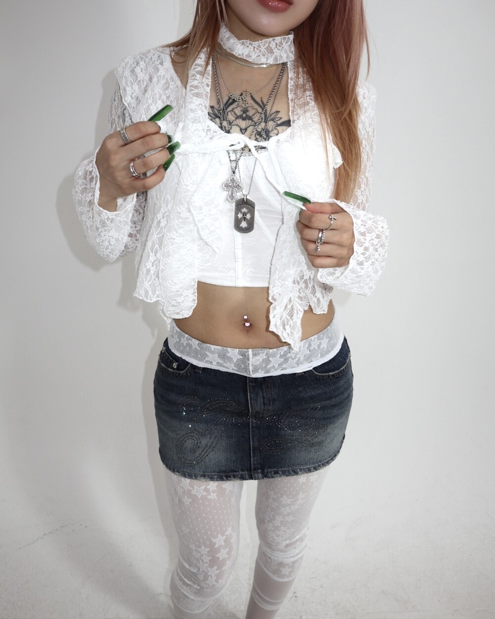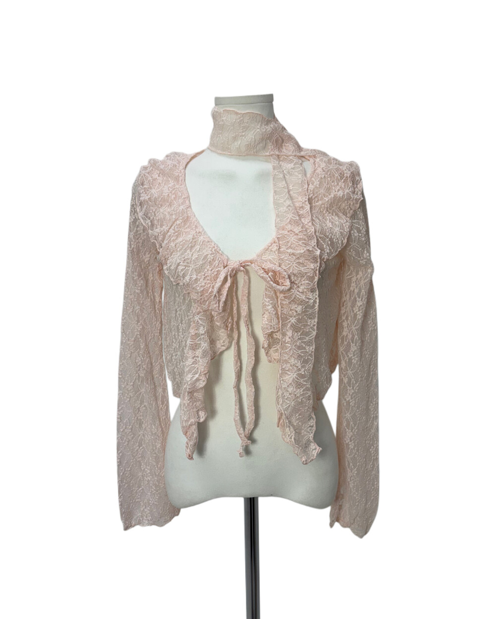 은은한 플라워 레이스와 러플 카라 디테일이 포인트인