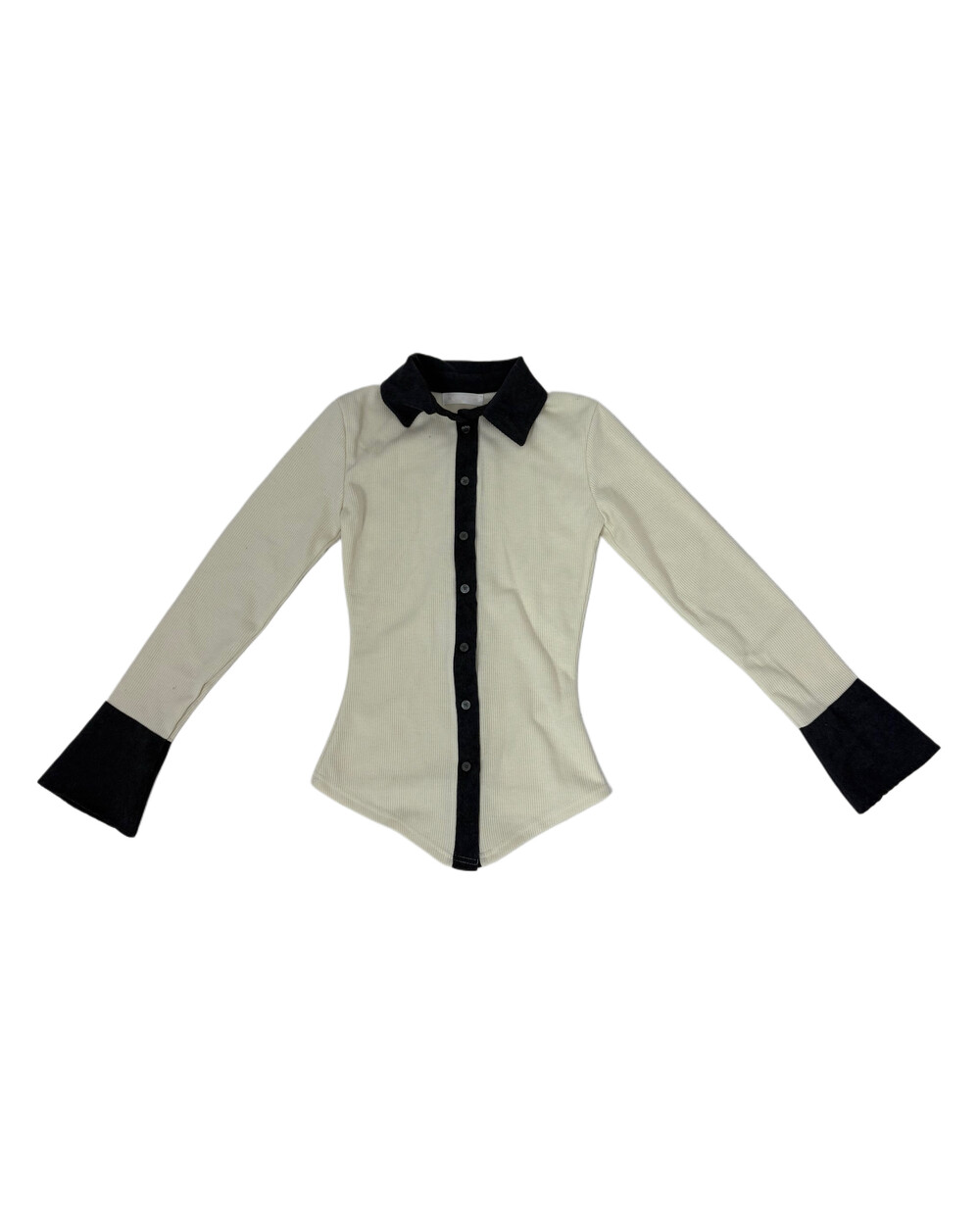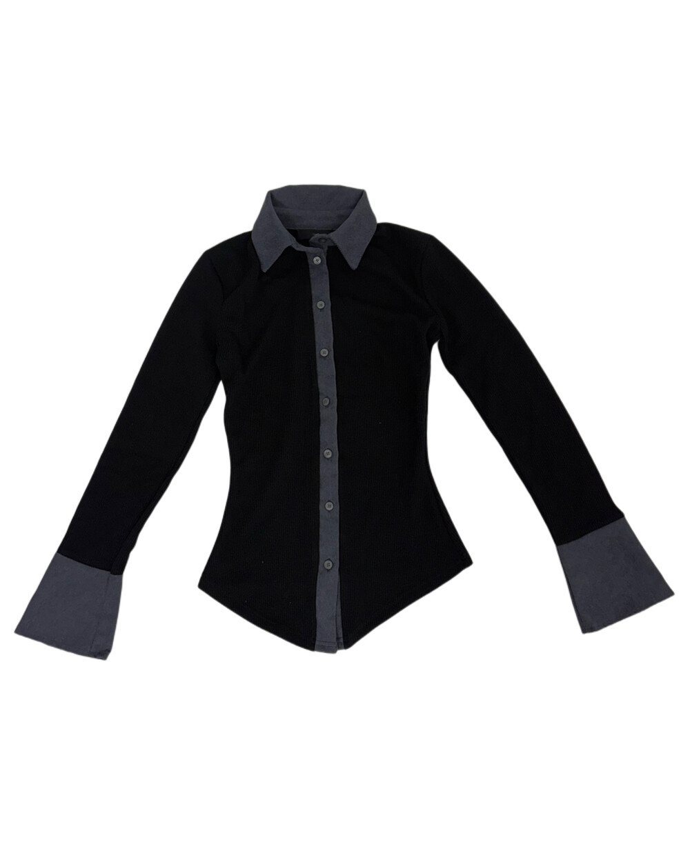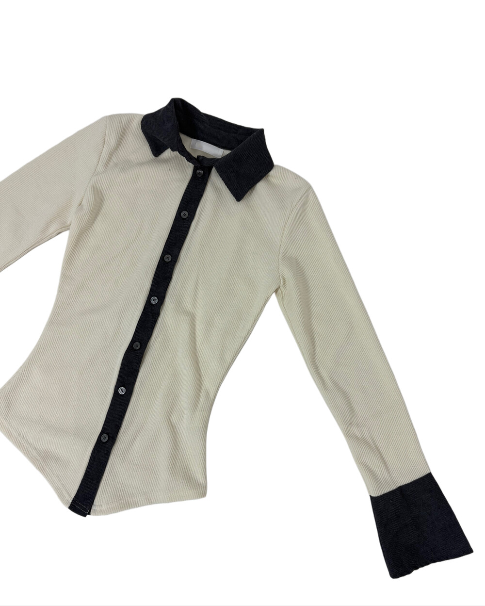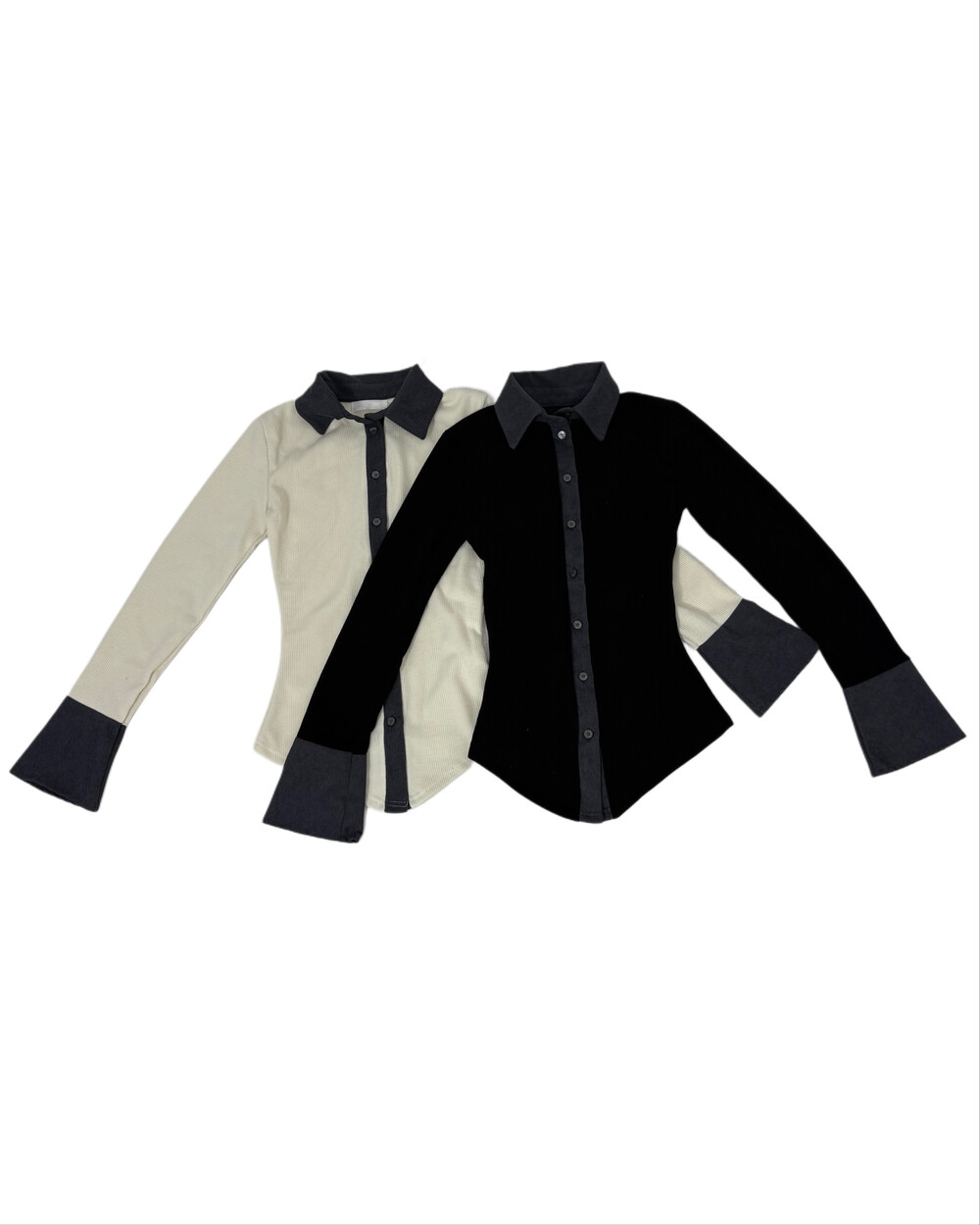 배색 컬러 디테일이 돋보이는 감각적인 디자인의 카라 가디건 + 스커트 팬츠 셋업 소개해드려요.
