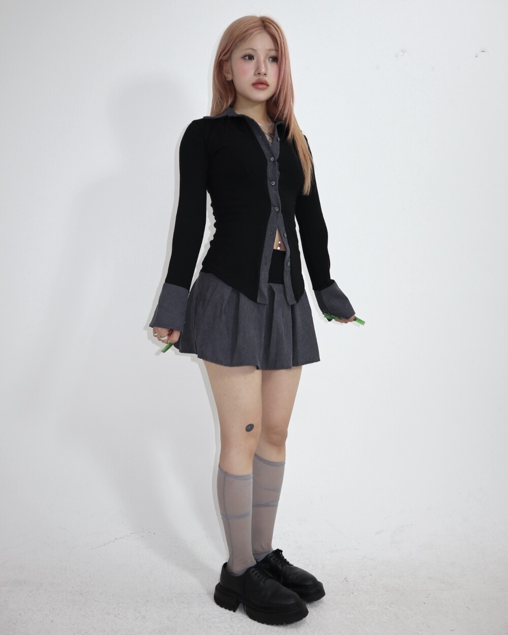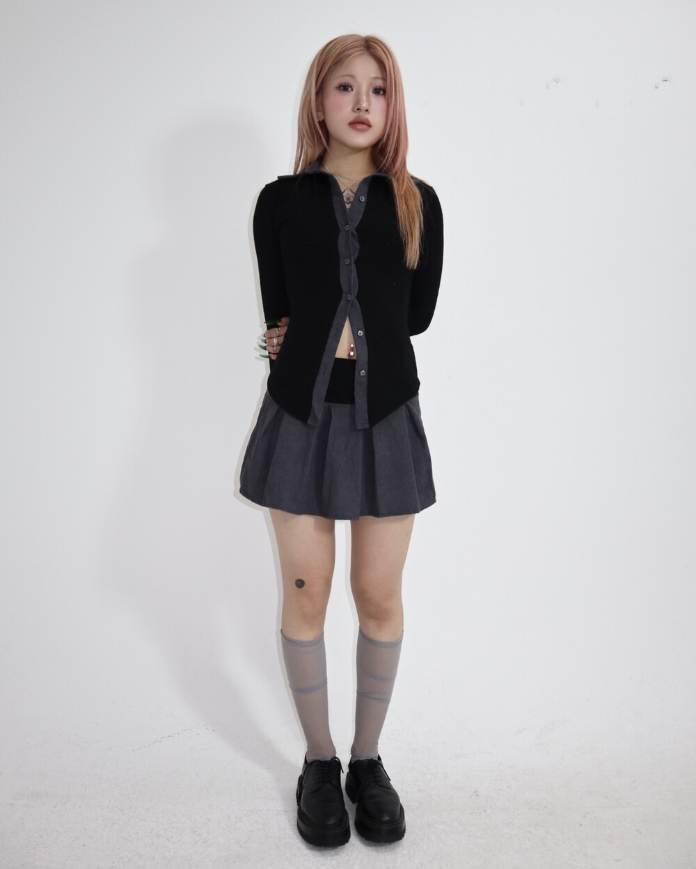 가디건은 긴 소매 기장으로 여리여리한 실루엣을 연출해주고,