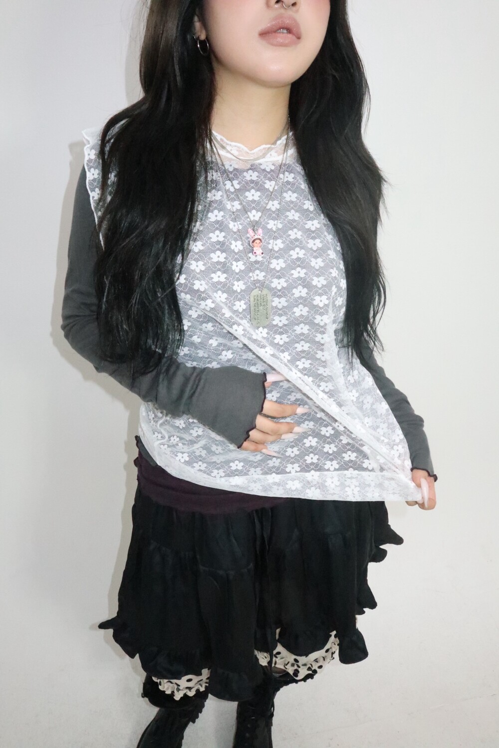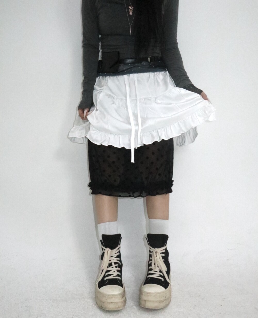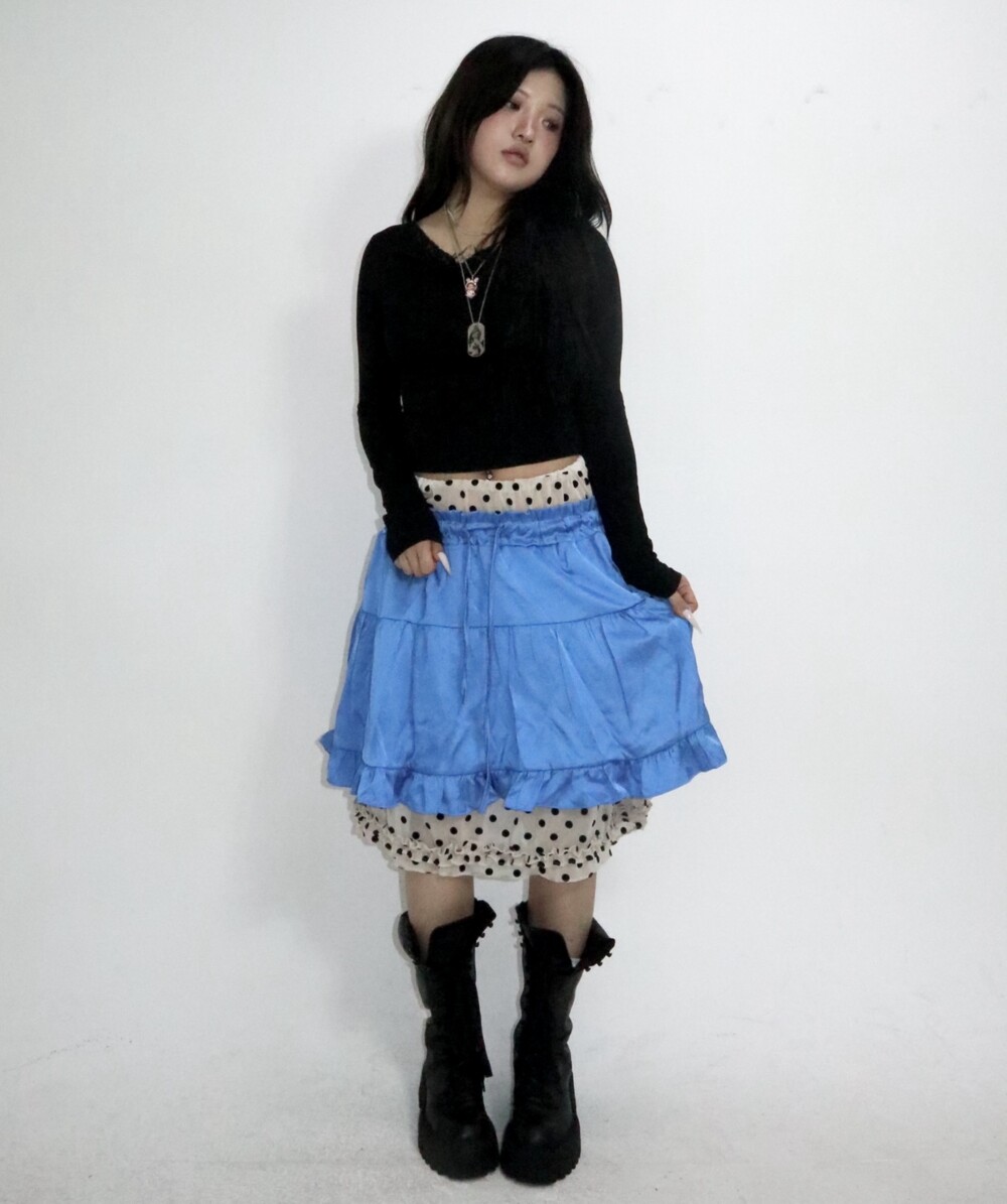 고급스럽고 러블리한 무드를 동시에 담은 미디 스커트예요.