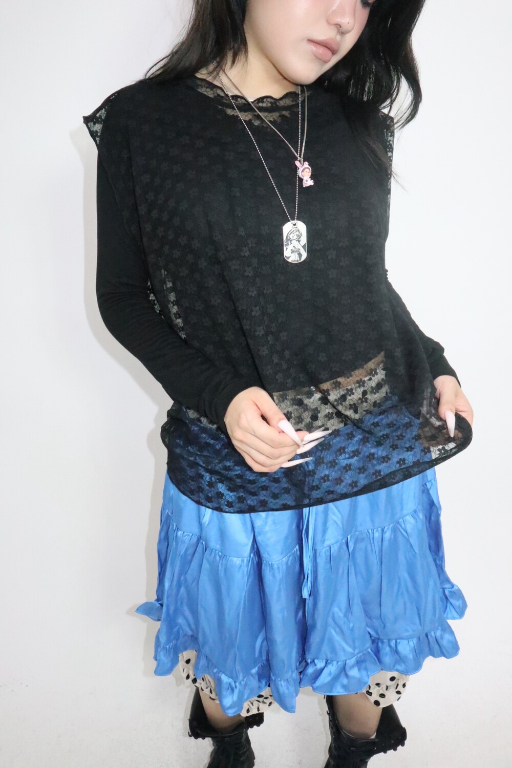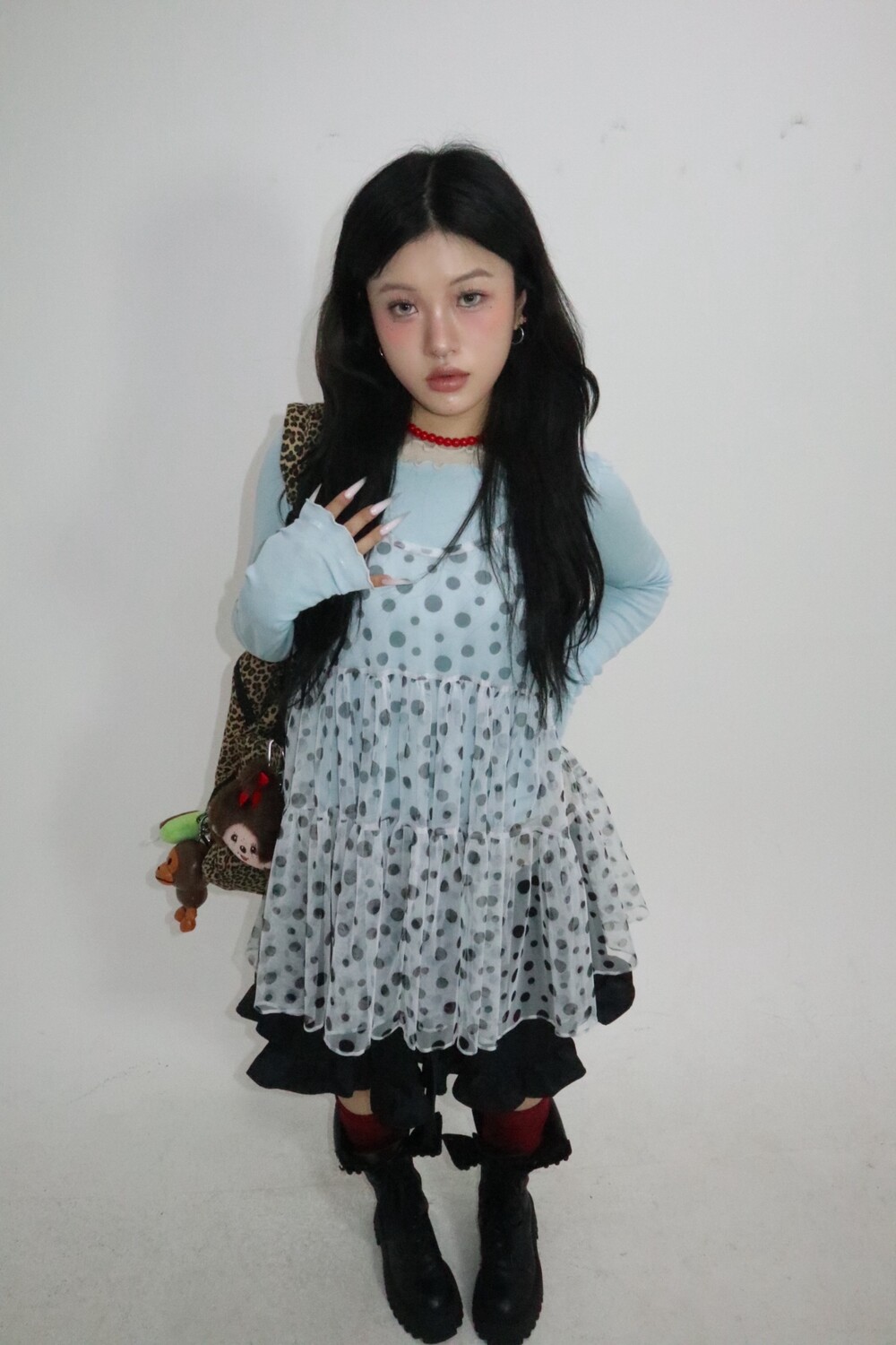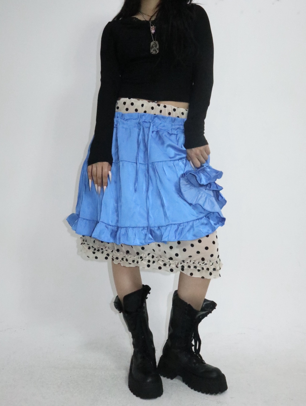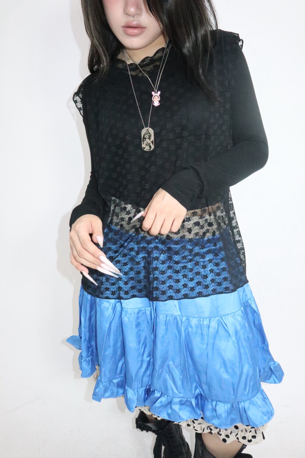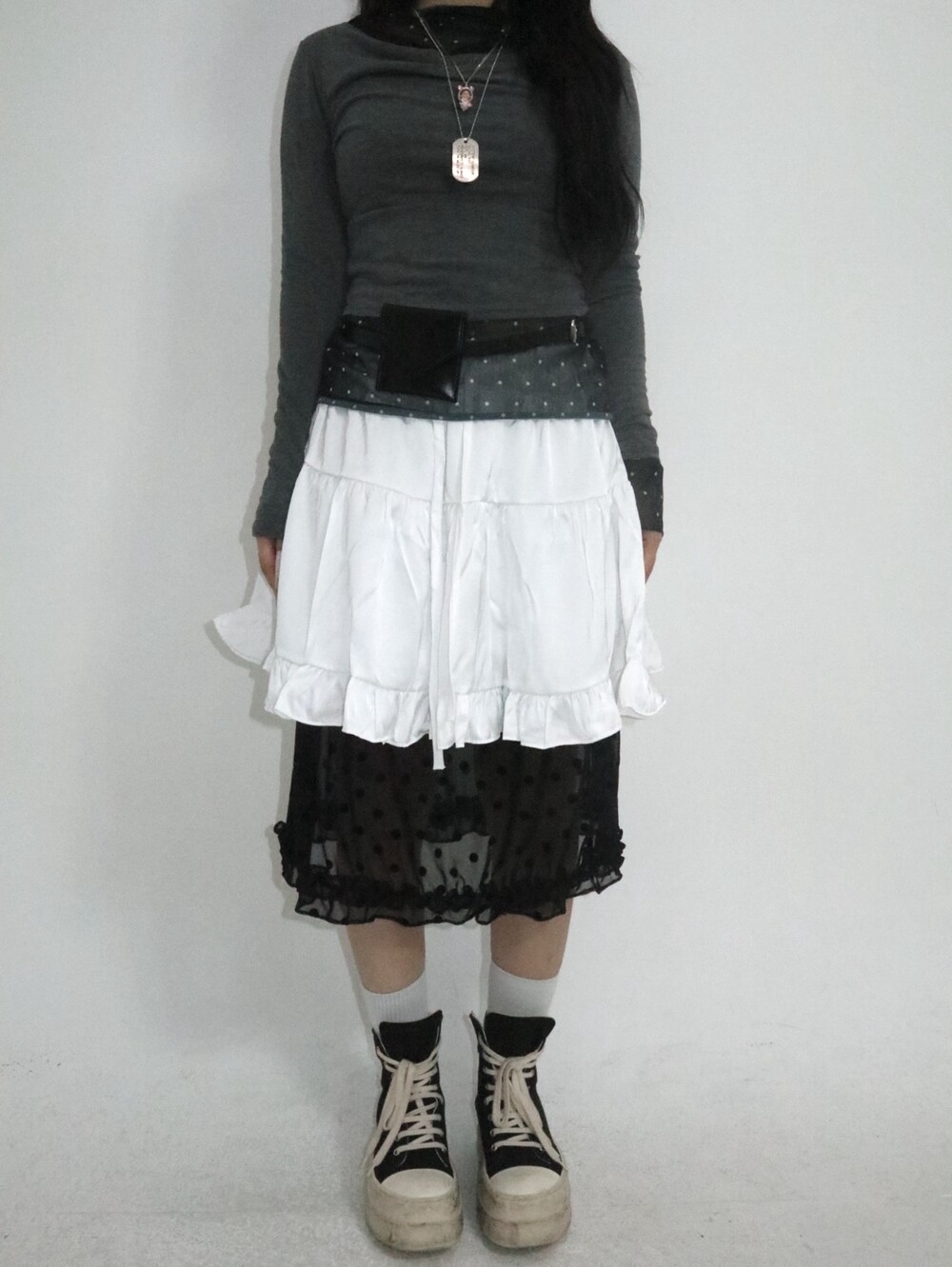 은은하게 빛나는 새틴 소재에 프릴 캉캉 디테일을 더해,