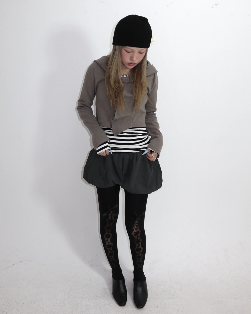 펌킨 쉐입 디자인이 힙과 허벅지 라인을 자연스럽게 커버해