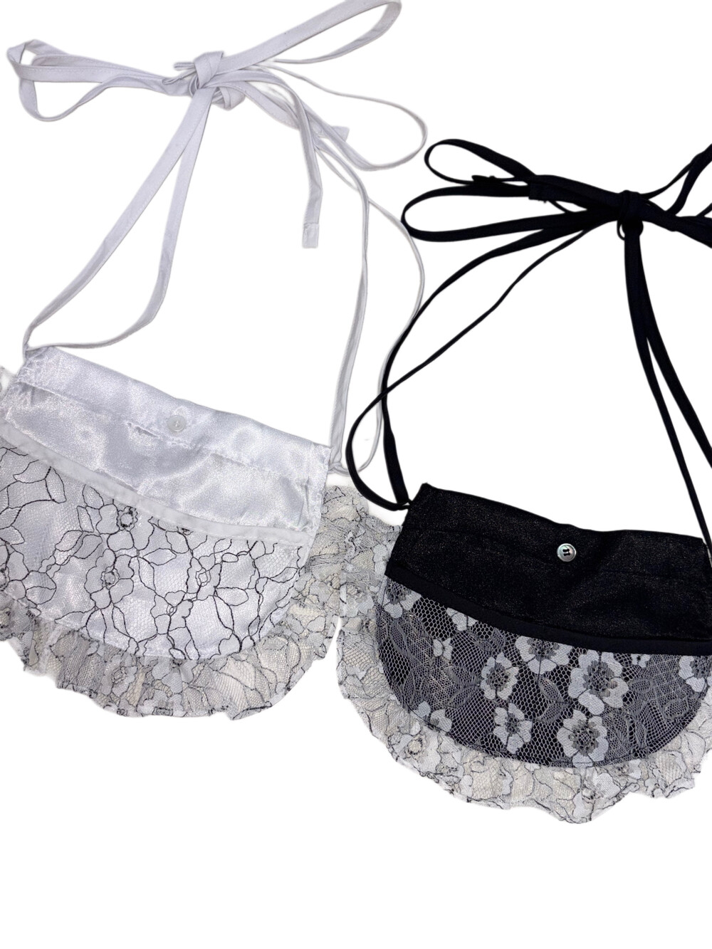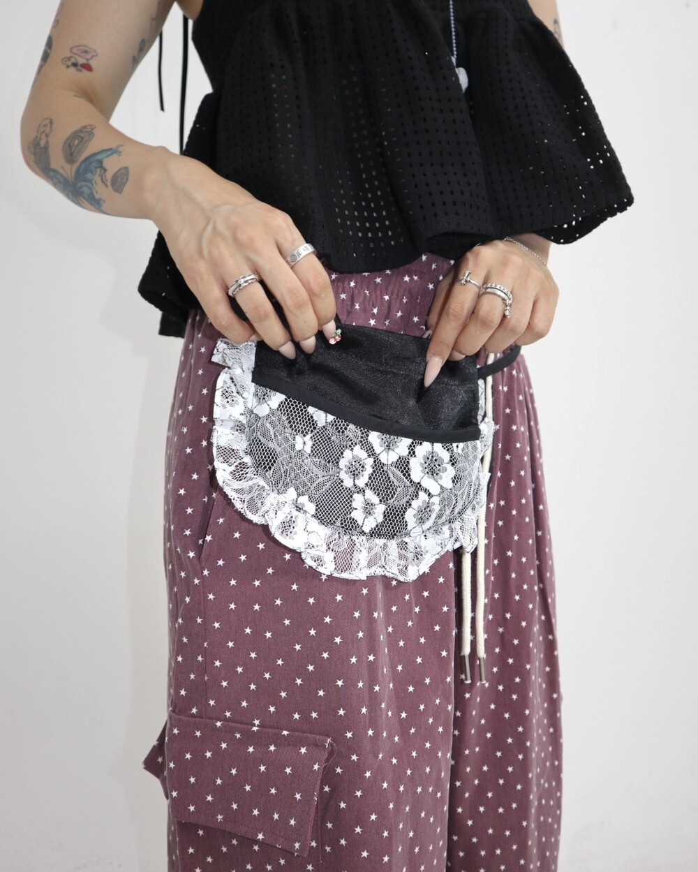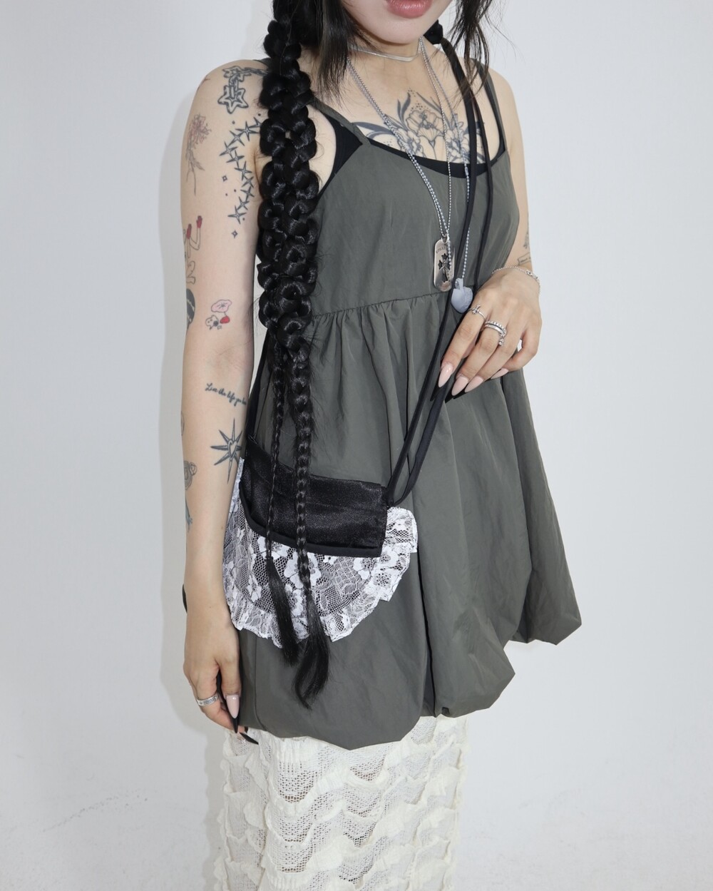 은은한 레이스 디테일과 스트랩이 매력적인 레이스 미니 벨트백.