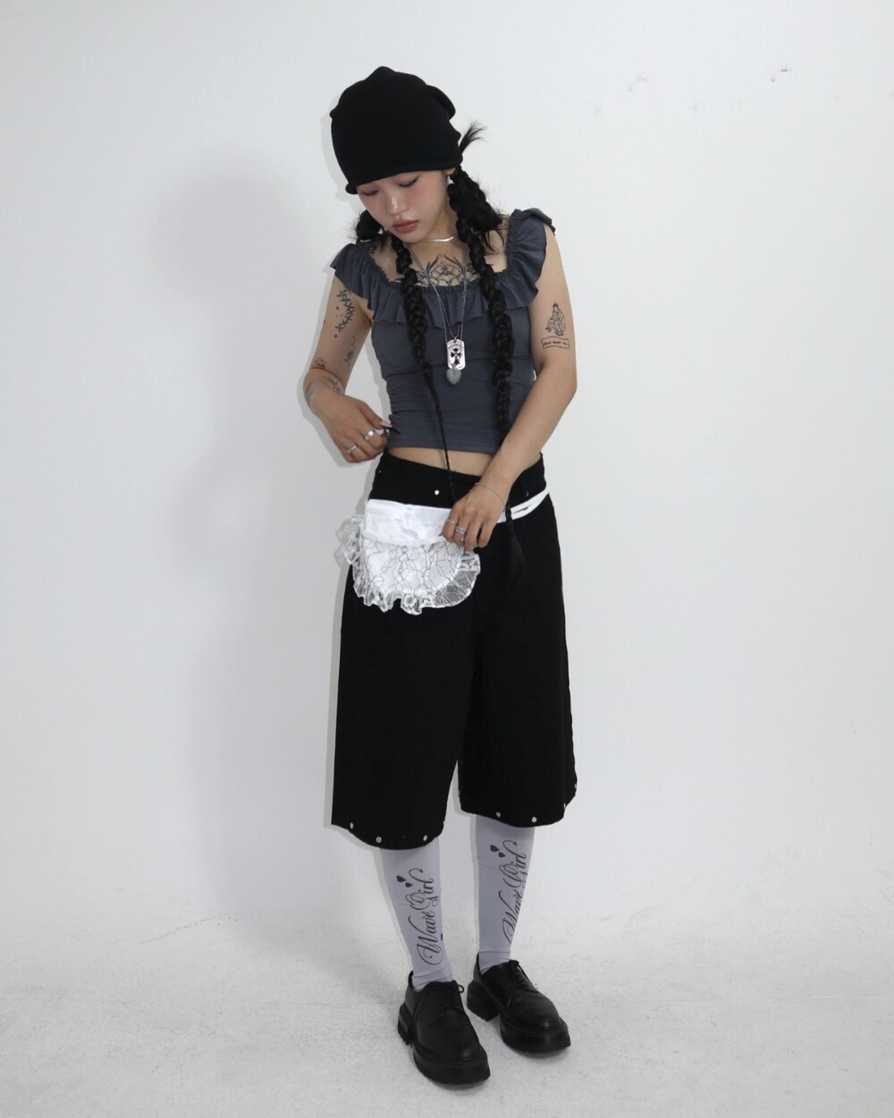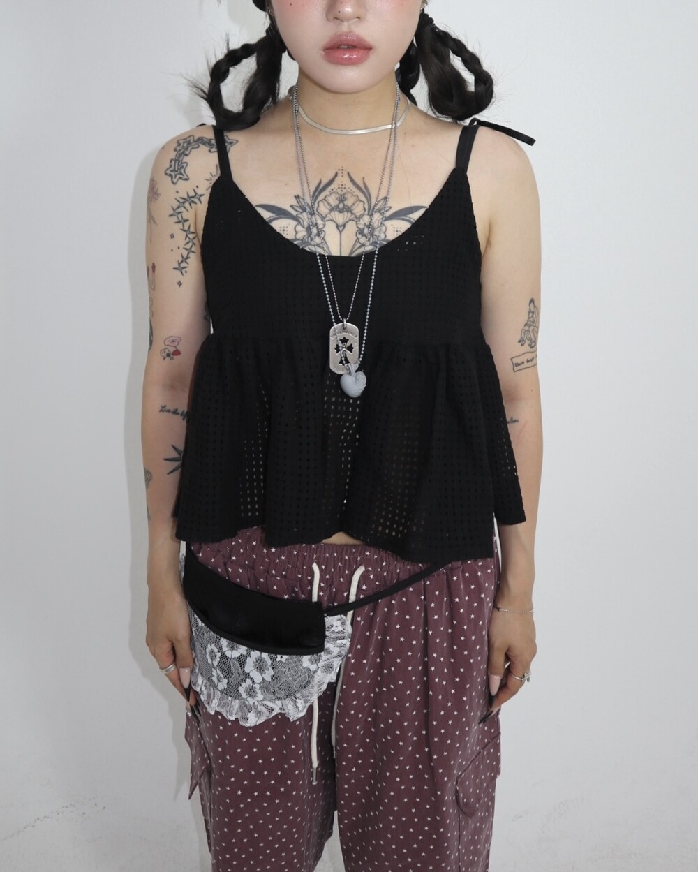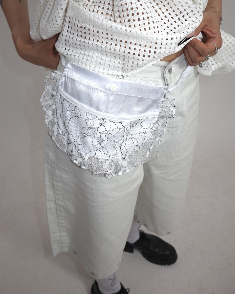 은은한 레이스 디테일과 스트랩이 매력적인 레이스 미니 벨트백.
