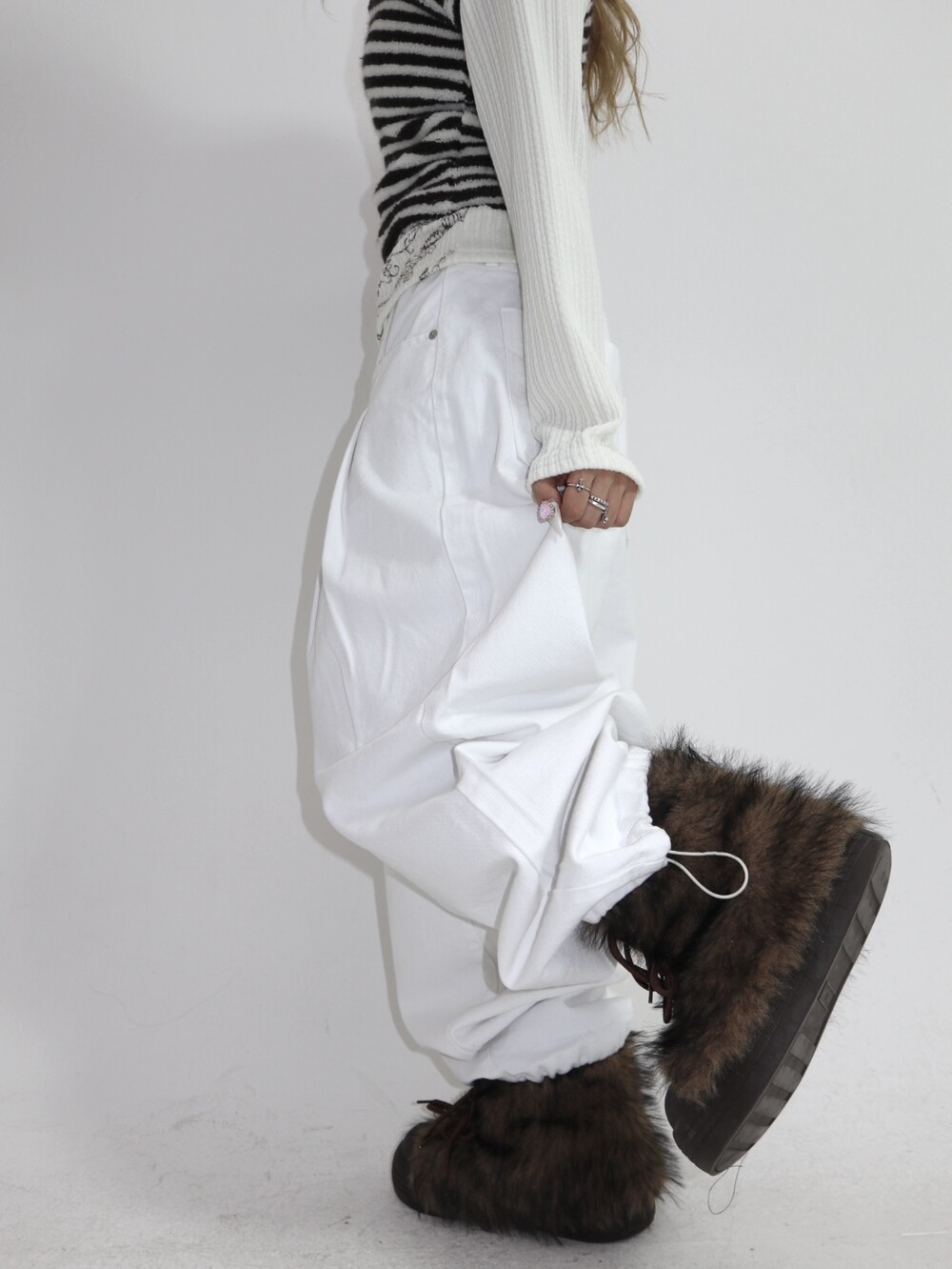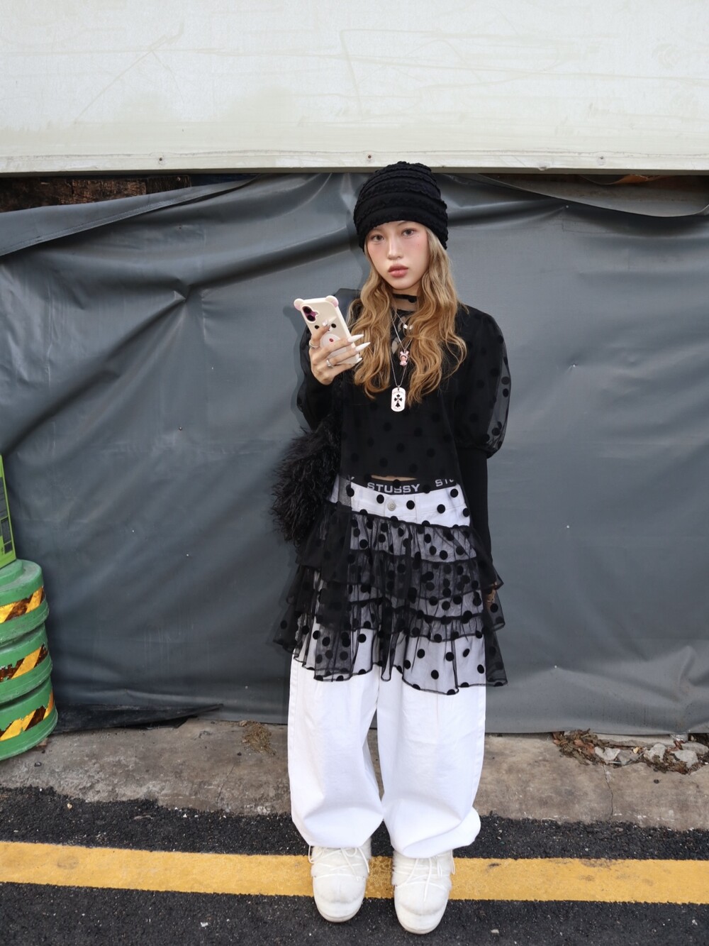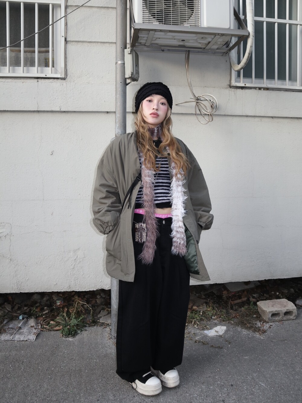밑단에 스트링이 있어 핏을 조절할 수 있어 다양한 스타일링이 가능하답니다.