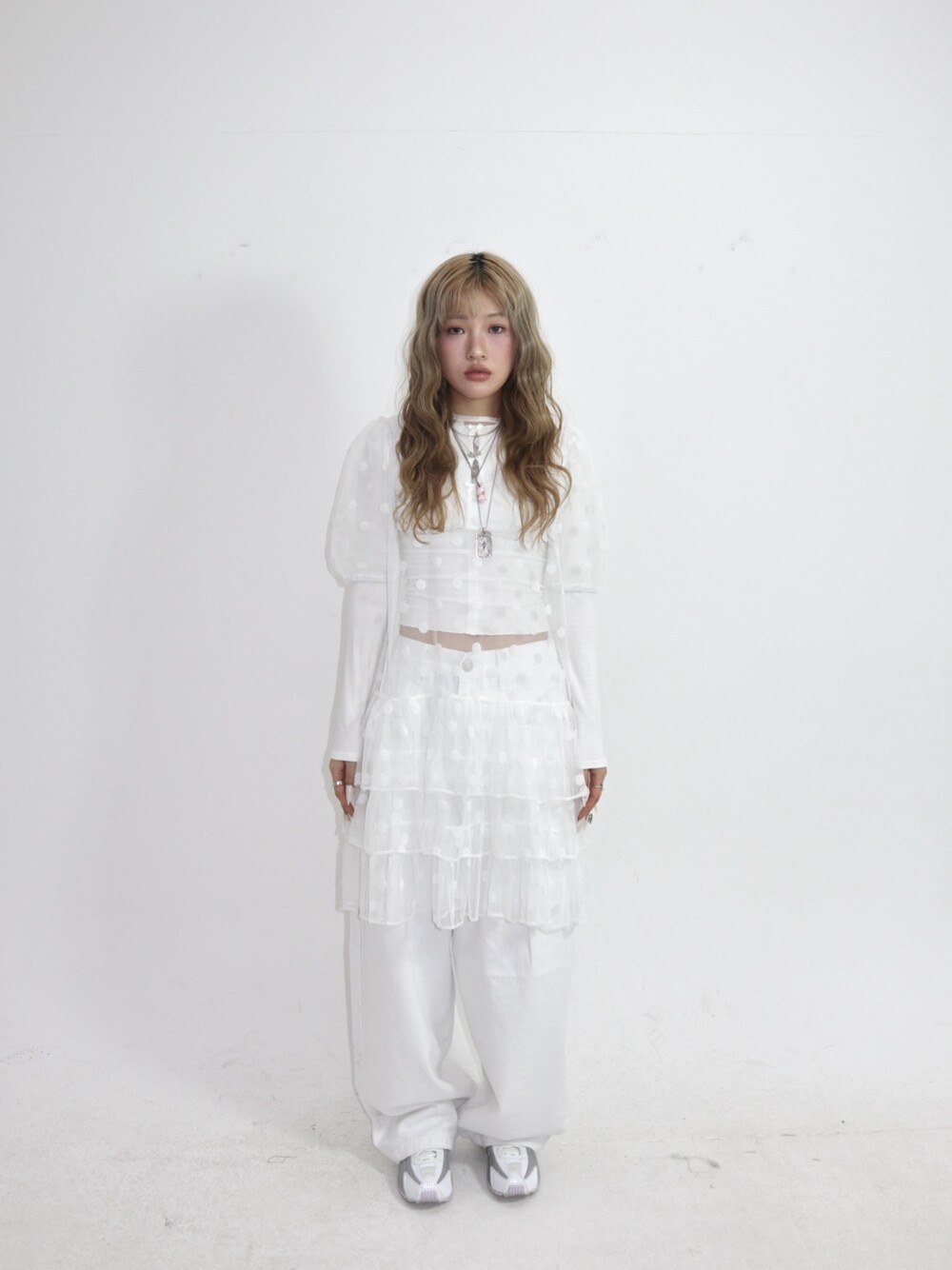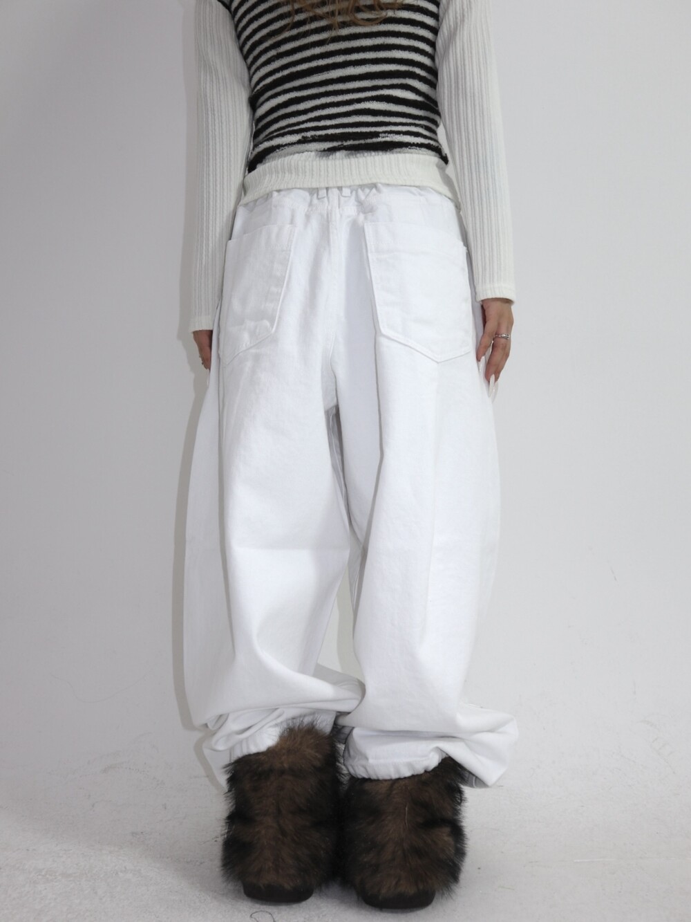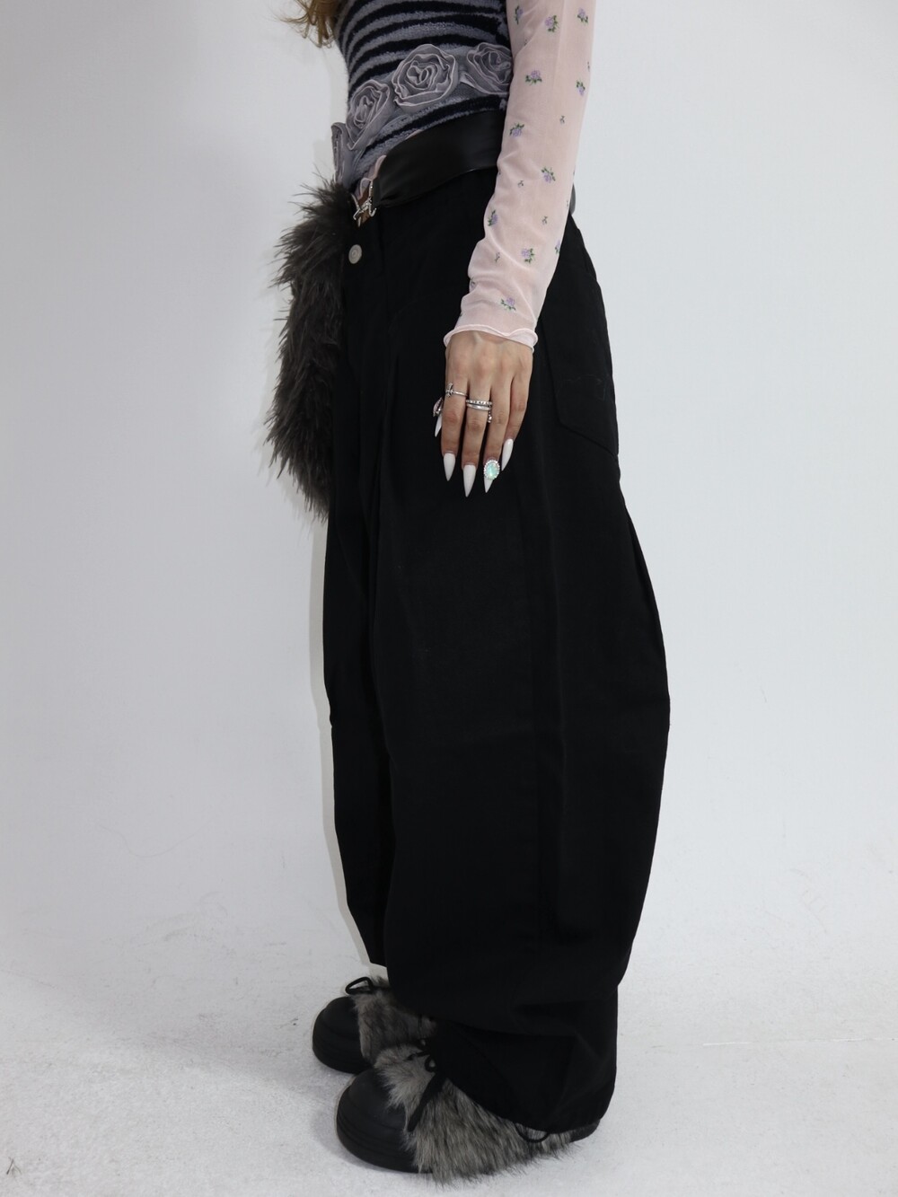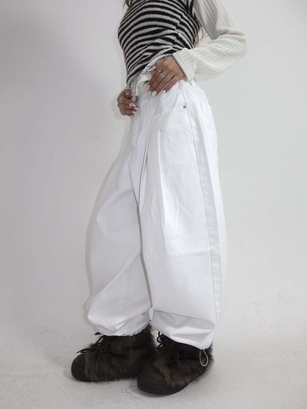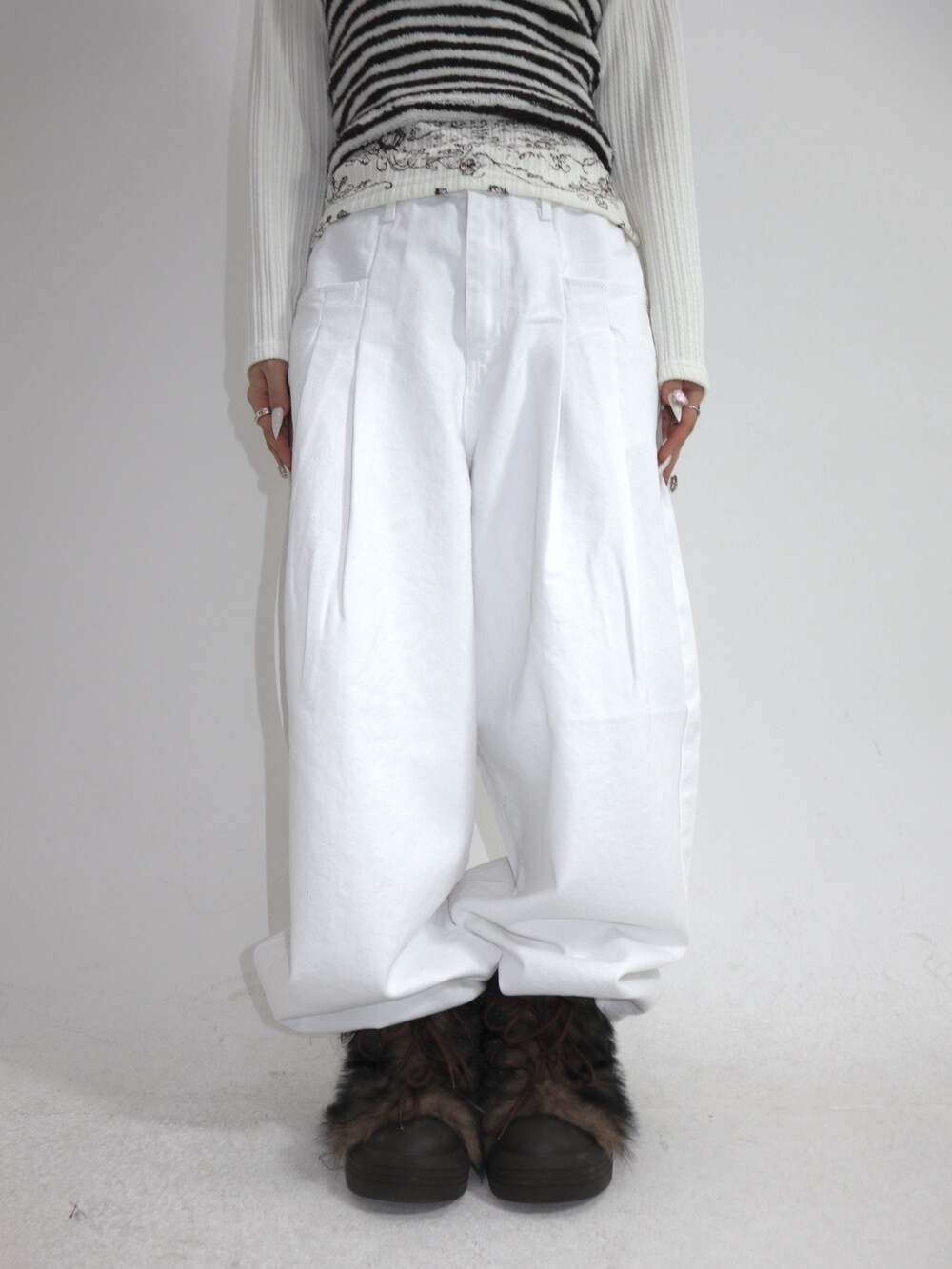 포켓 밑부분의 핀턱 디테일이 트렌디한 벌룬 실루엣을 완성해주며,