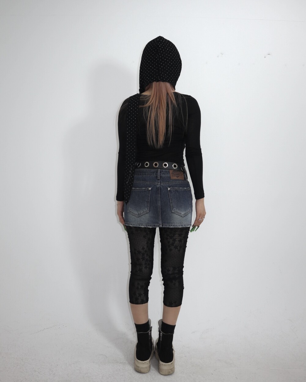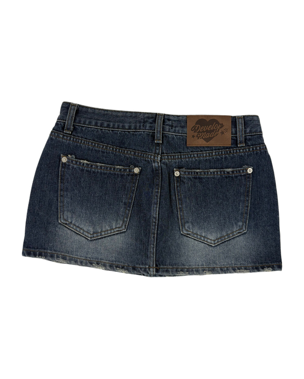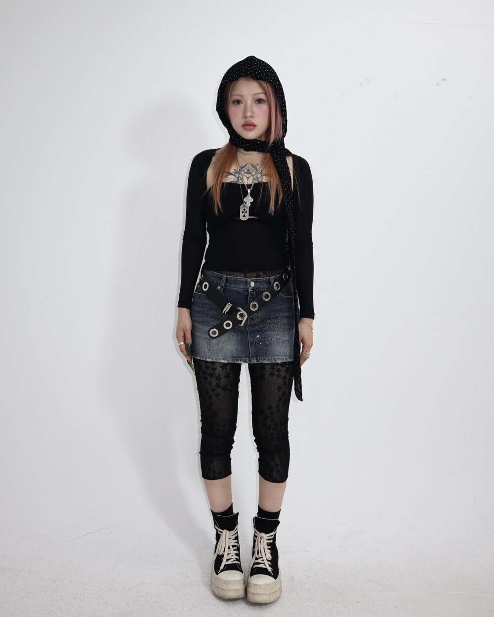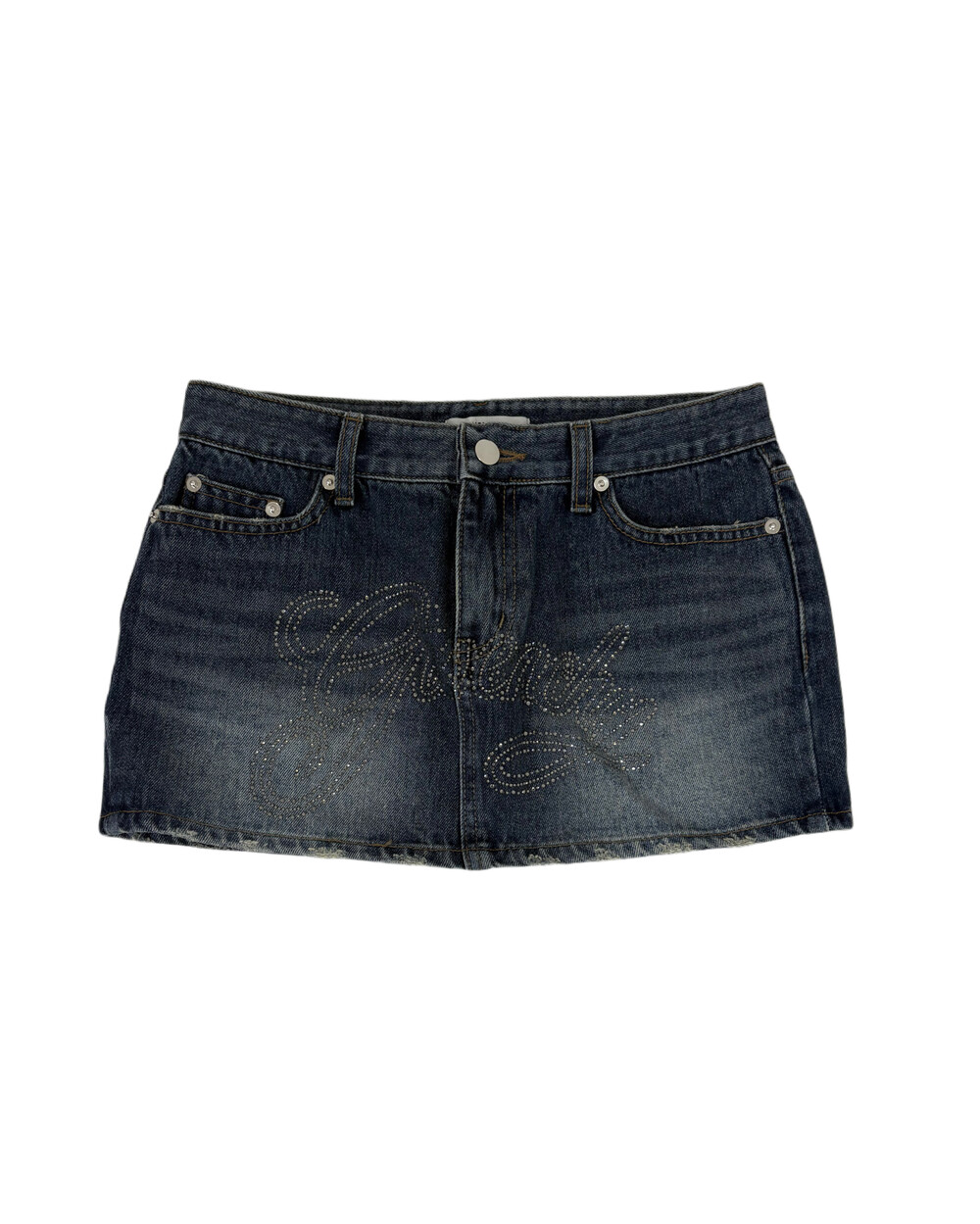Y2K 무드를 제대로 담아낸 큐빅 레터링 포인트의 데님 미니스커트 소개드려요.