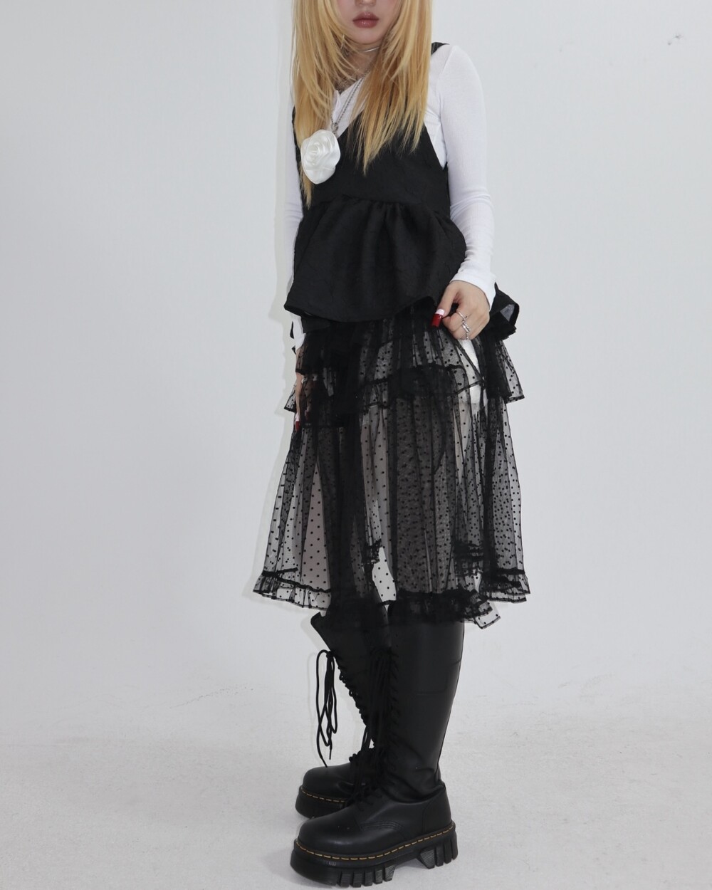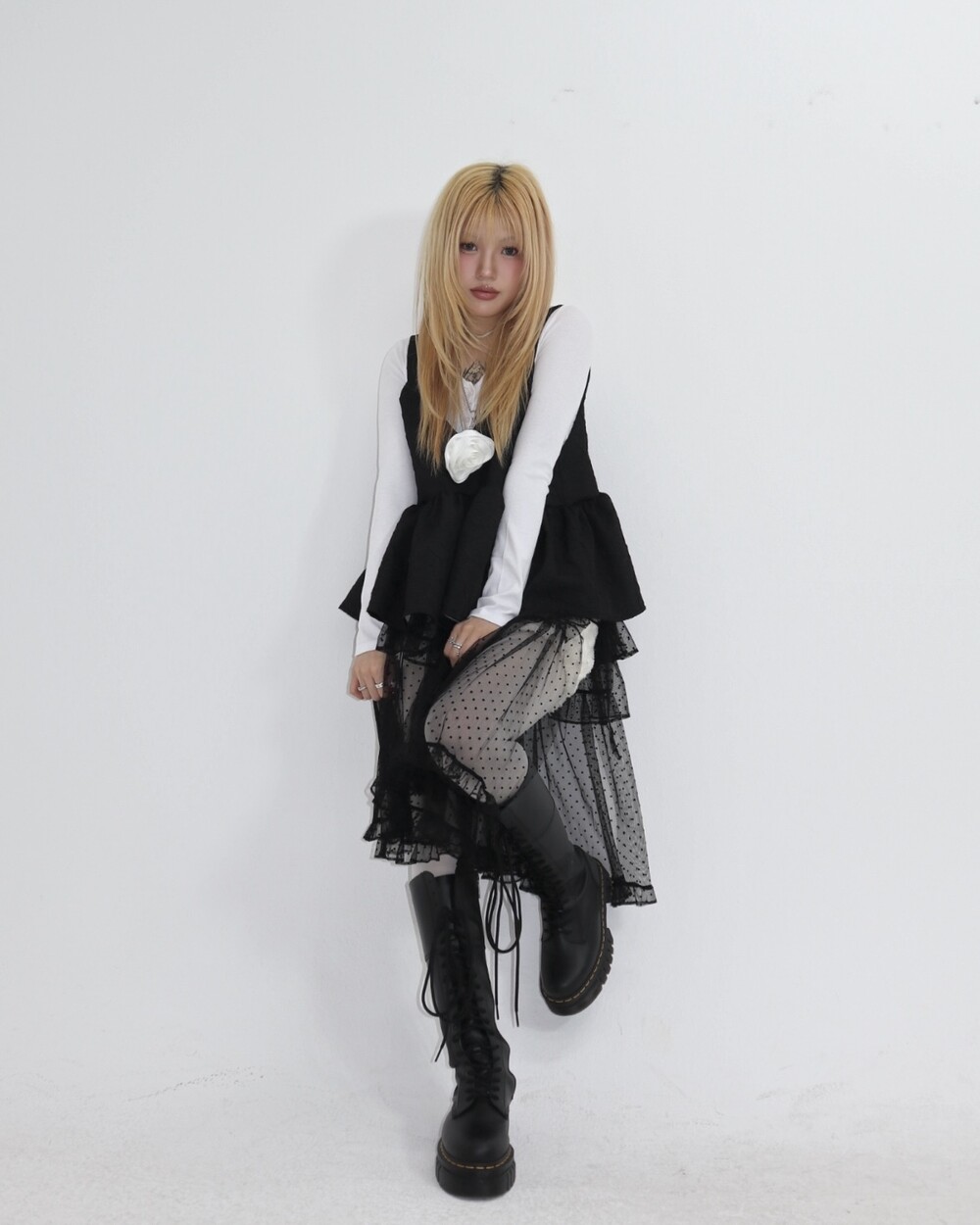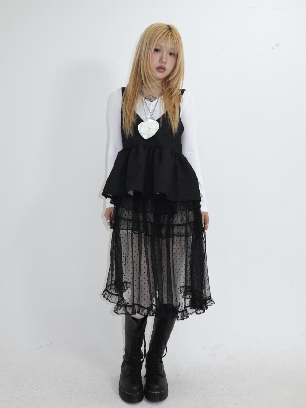 러블리한 도트 패턴과 캉캉 디테일이 매력적인 미디 스커트 소개드려요 💕
