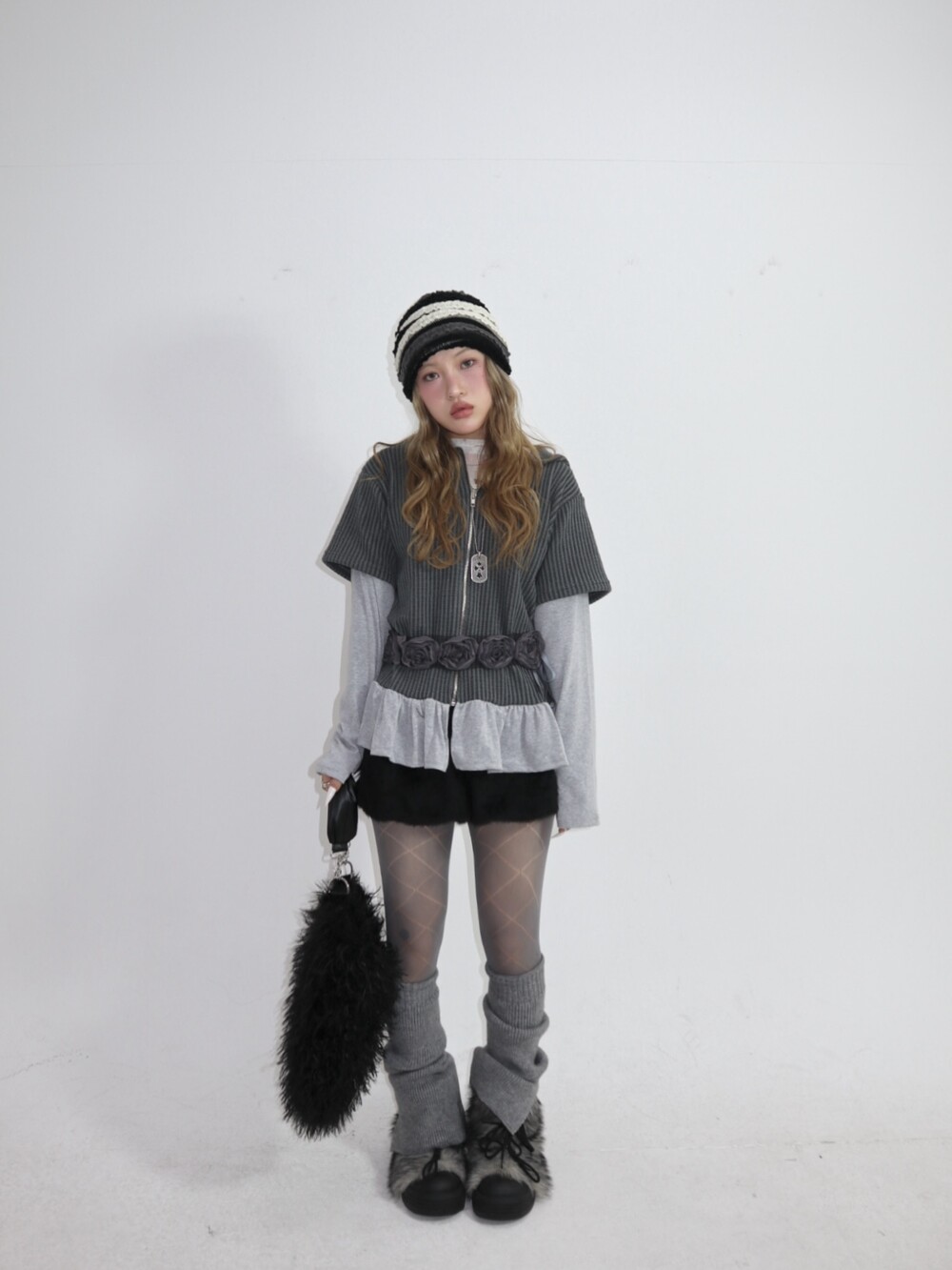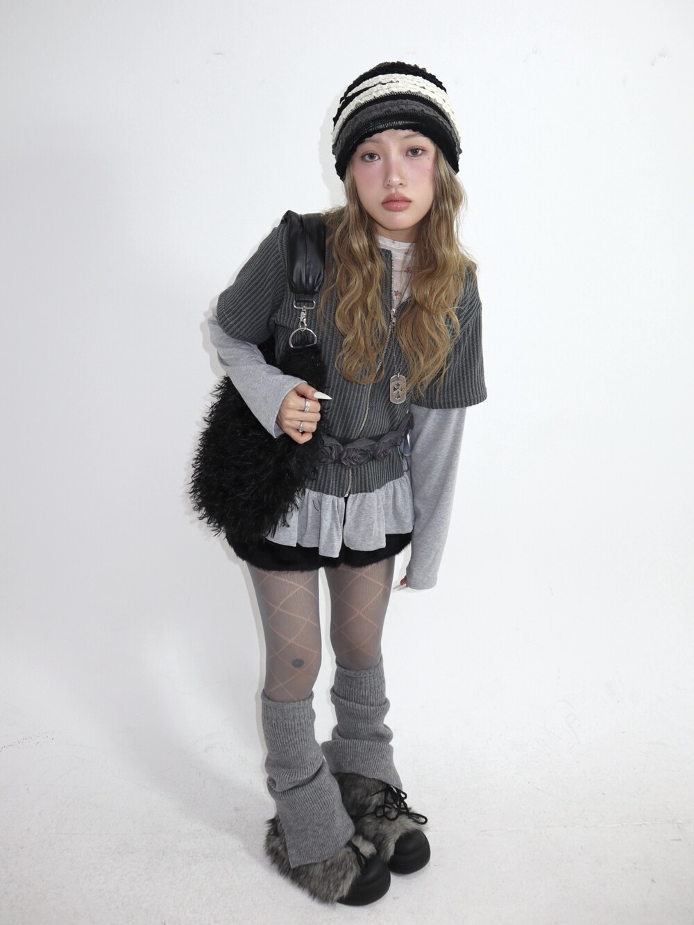 스커트, 원피스, 또는 부츠와 매치해 빈티지한 무드를 완성해보세요.