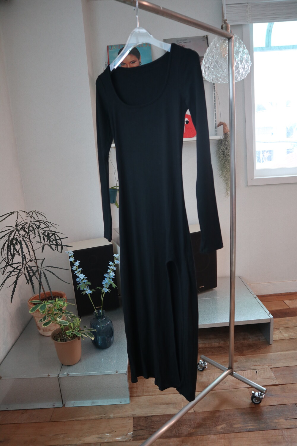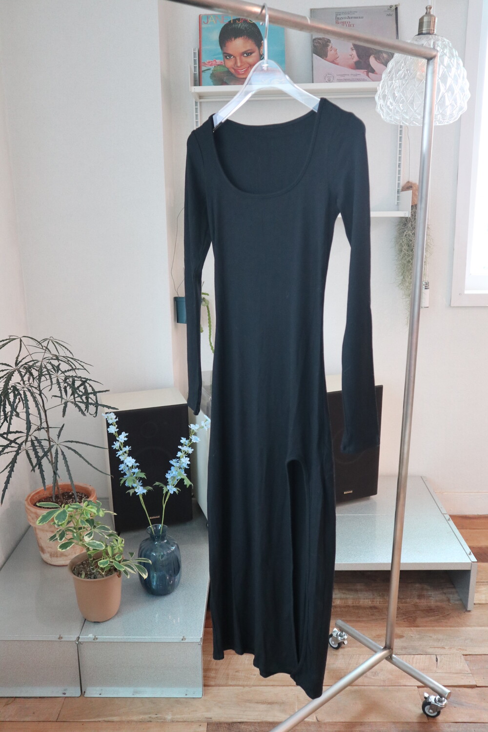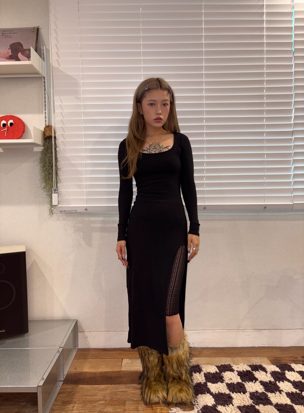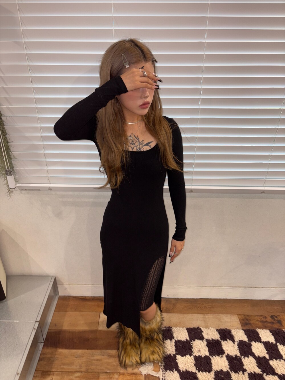 사이드 슬릿 부분 포인트의 슬림핏 원피스