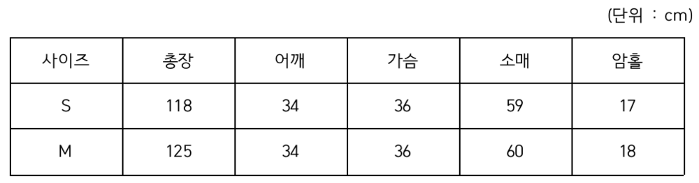 S,M 사이즈간 총장 차이가 꽤 있는 편으로,