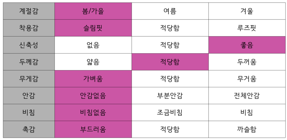 탄탄한 텐션감의 소재로 전반적인 바디라인을 잘 잡아주며,