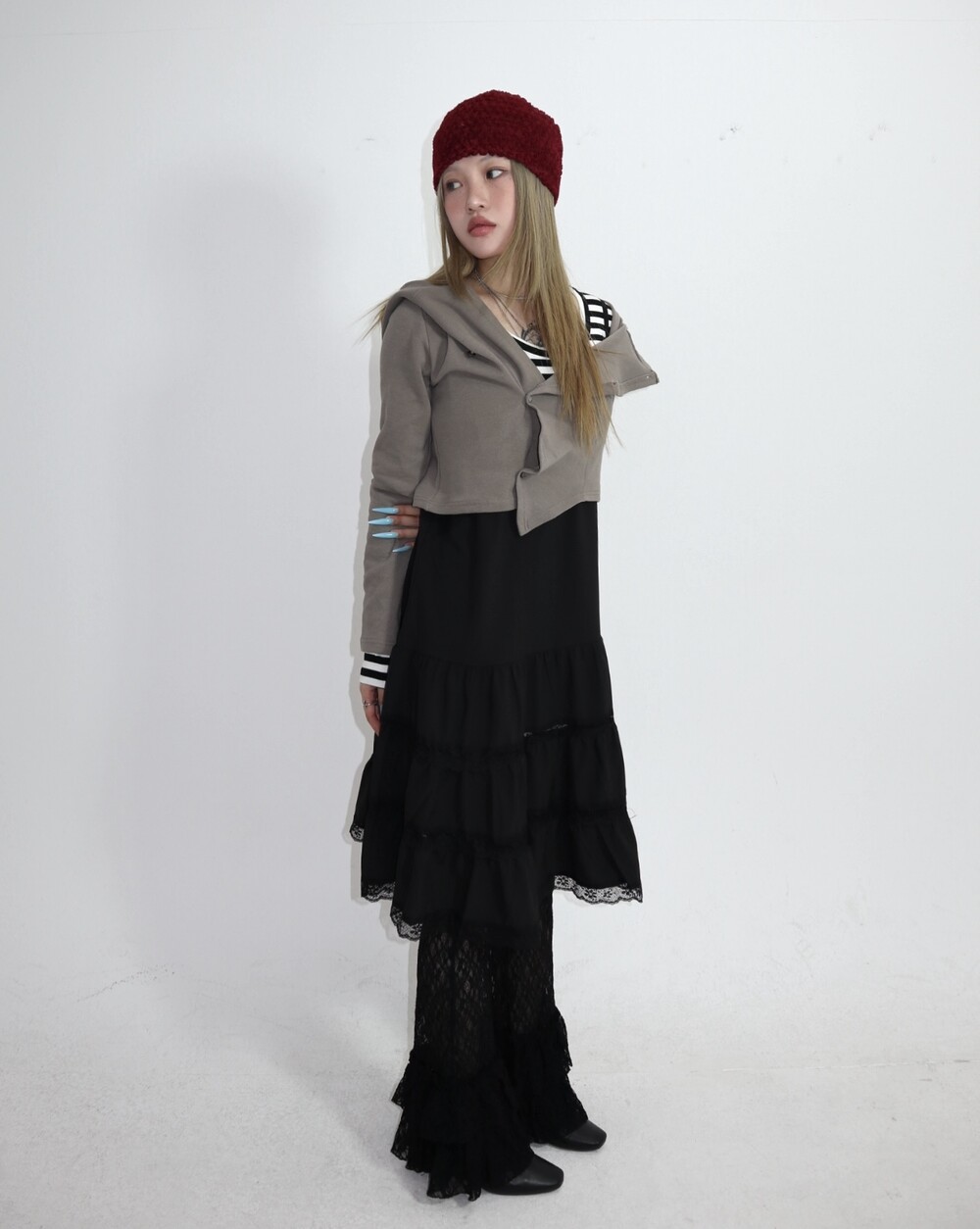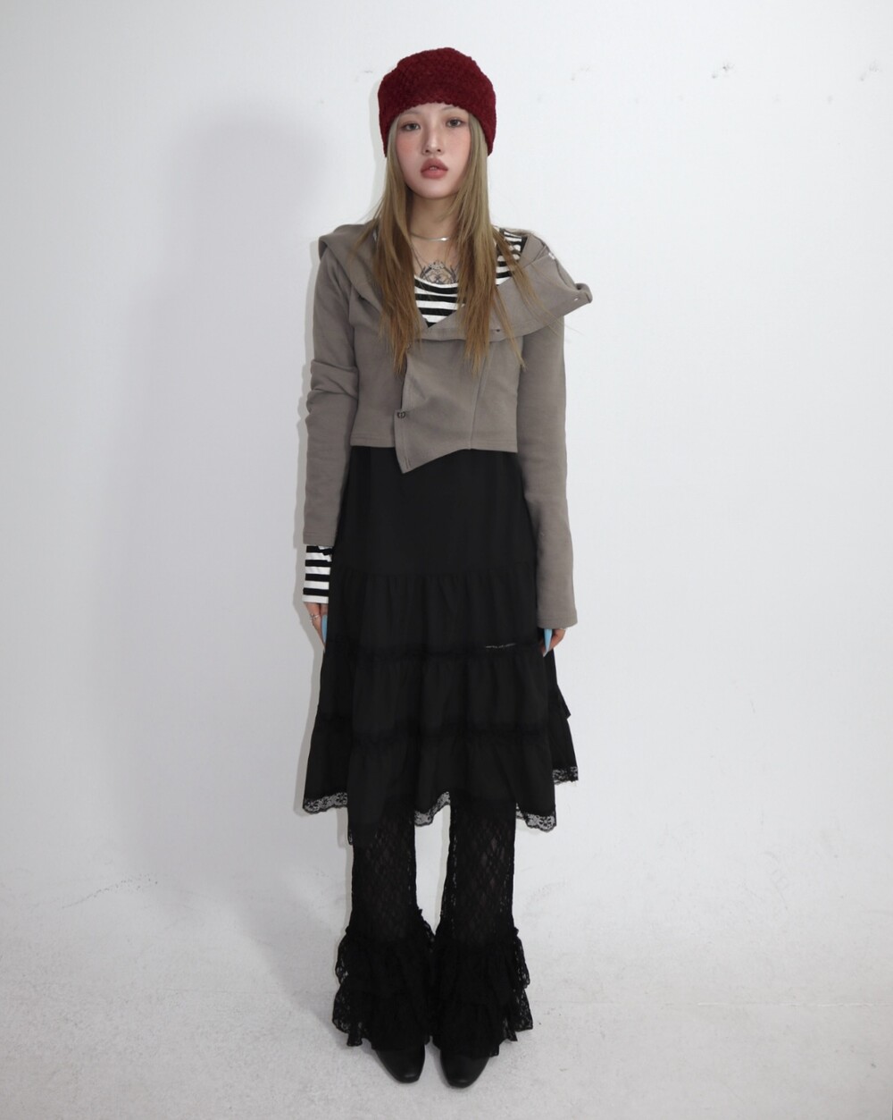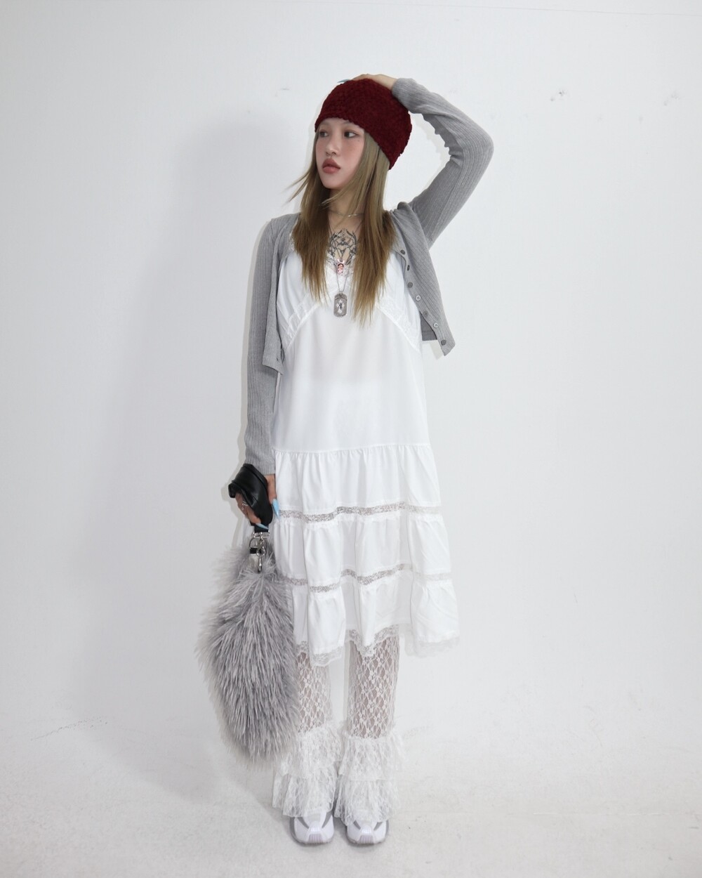 우아한 레이스 소재에 밑단 캉캉 디테일이 더해져