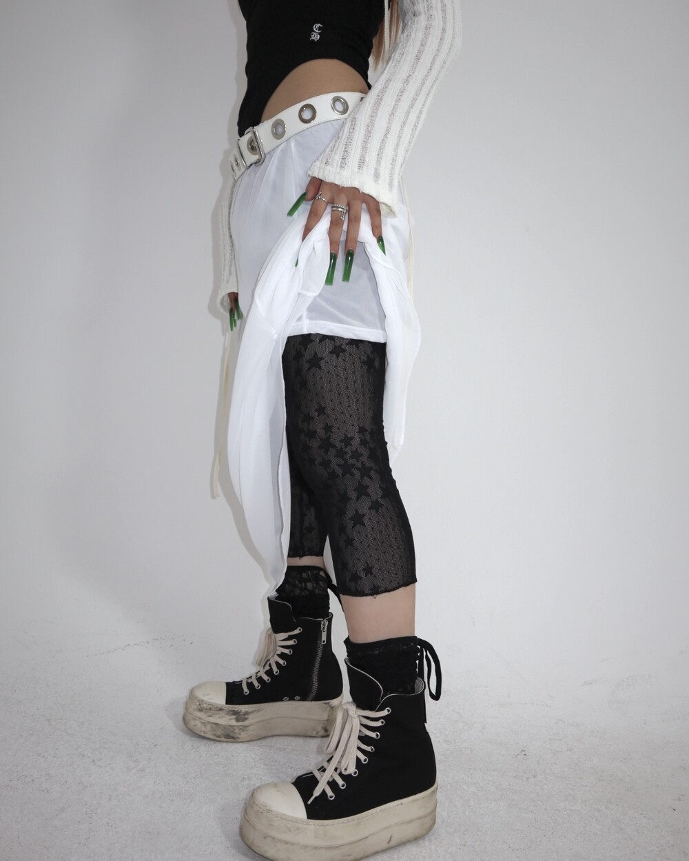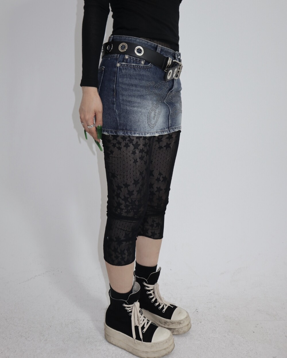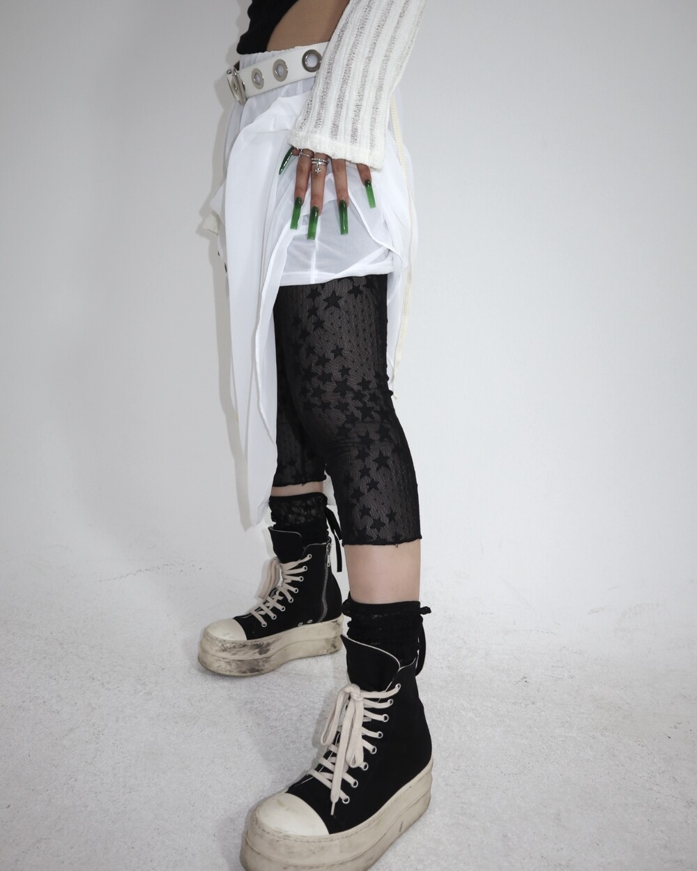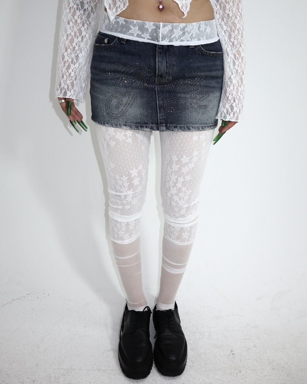 은은한 스타 패턴이 포인트인 시스루 7부 레깅스 소개해드려요.