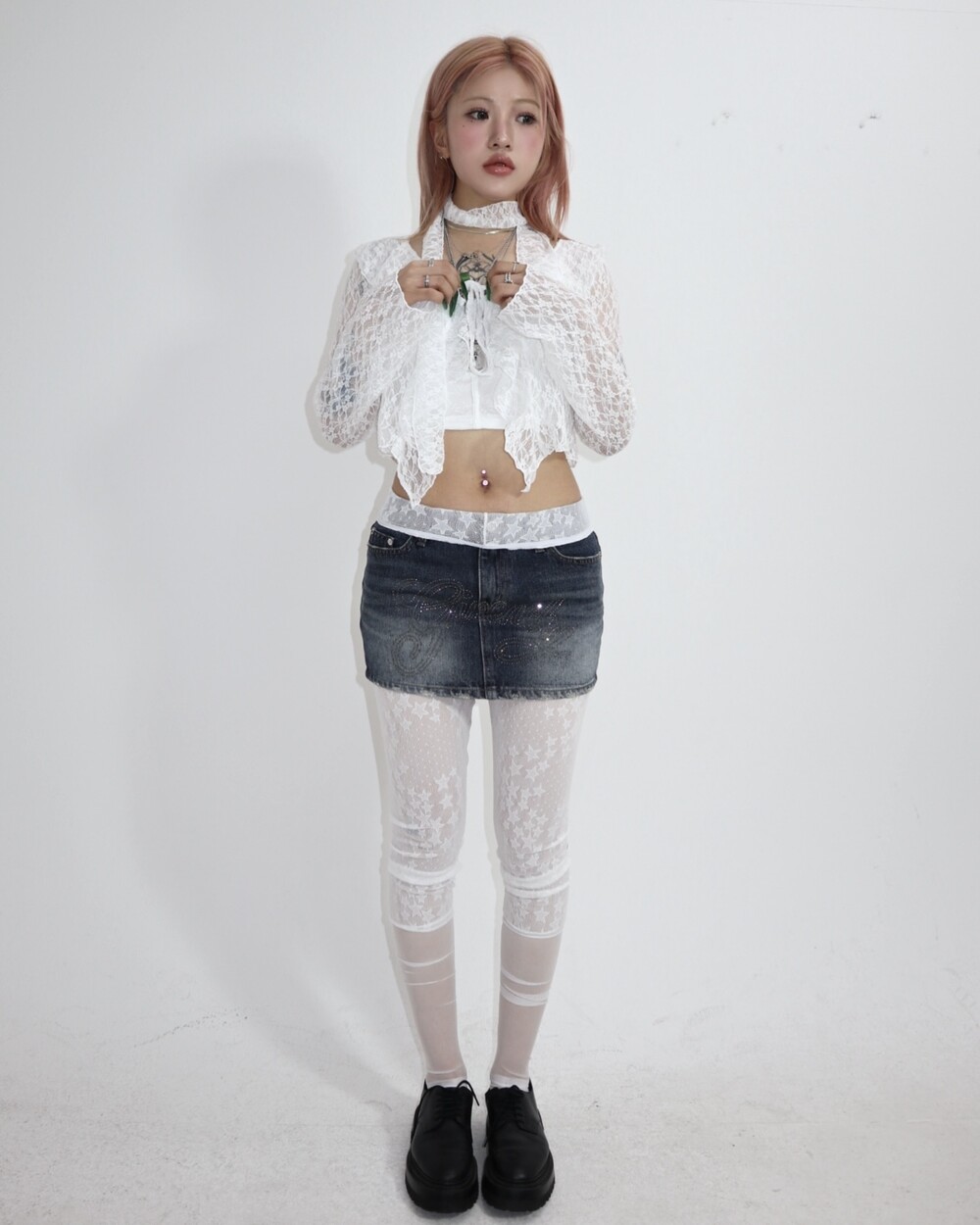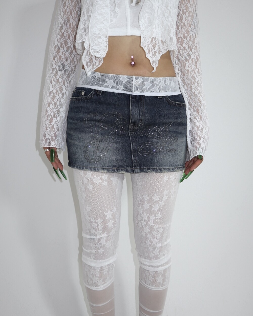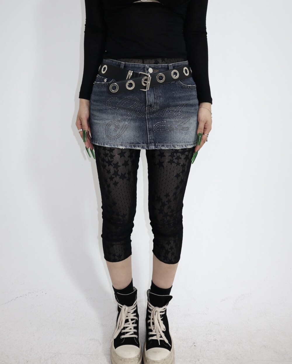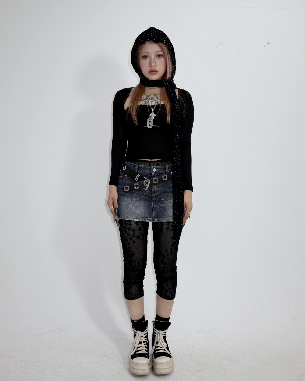 은은한 스타 패턴이 포인트인 시스루 7부 레깅스 소개해드려요.