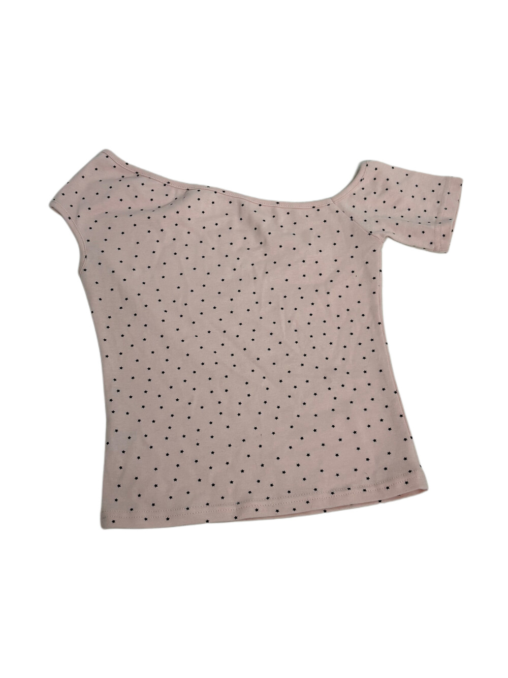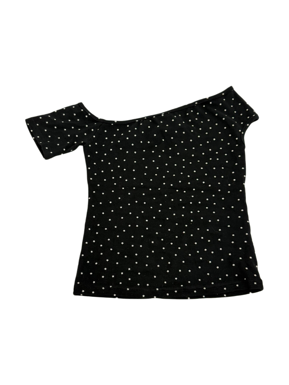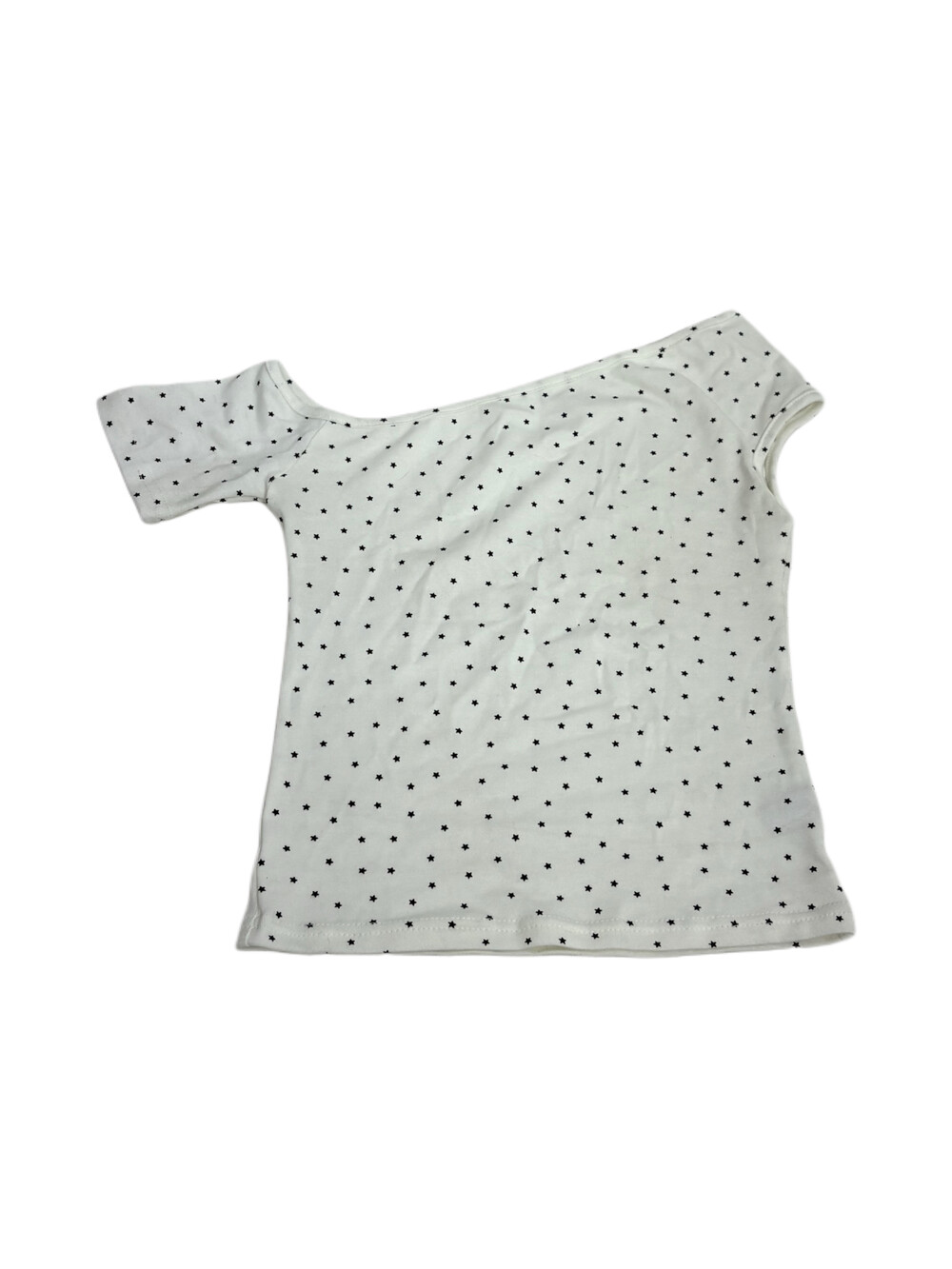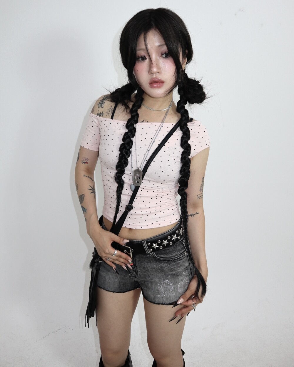 톡톡한 별 프린팅으로 포인트를 준 오프숄더 크롭 티셔츠예요.