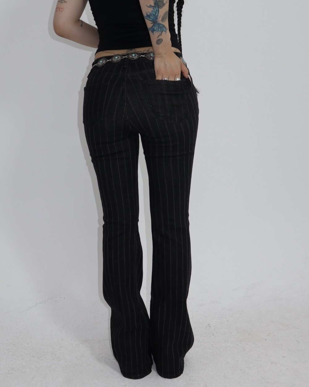 흑청 컬러에 은은하게 들어간 세로 스트라이프 패턴이