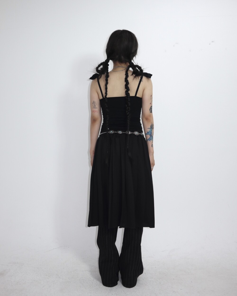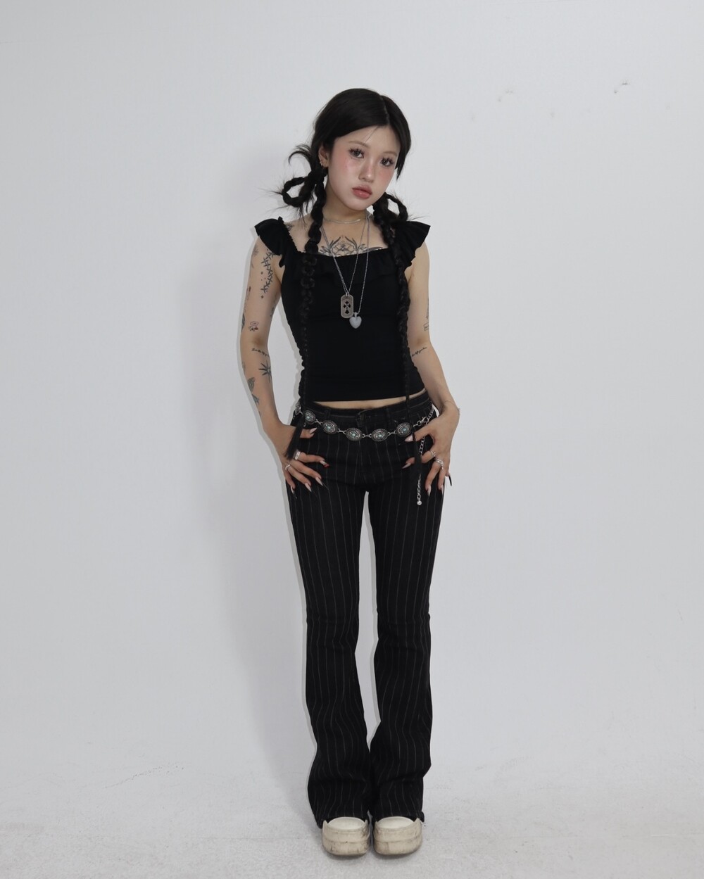 하체 실루엣을 자연스럽게 커버해주는 부츠컷 핏이에요.