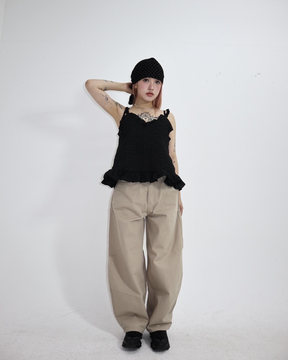 은은하게 포인트가 되어주는와이드 코튼 팬츠 소개드려요.