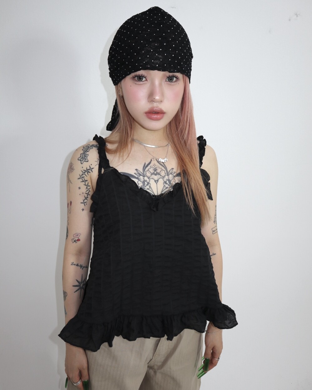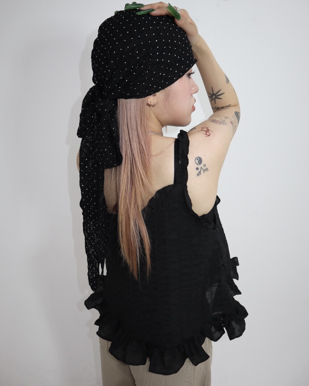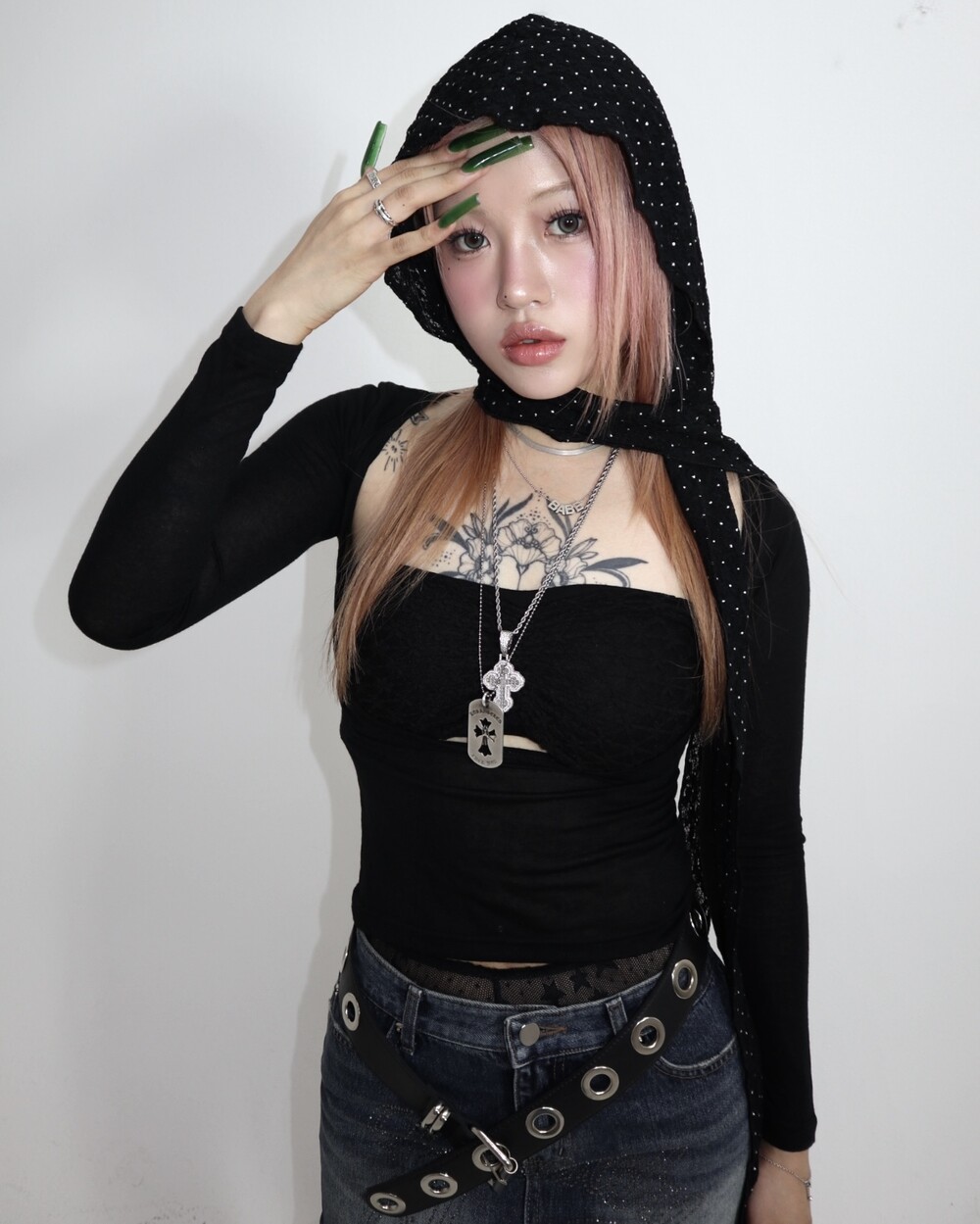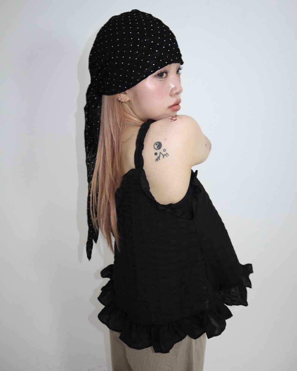 반짝이는 큐빅 포인트로 시선을 사로잡는 레이스 두건 소개해드려요.