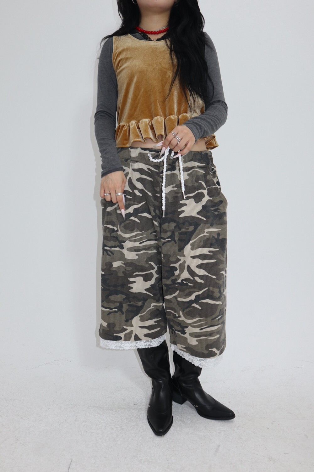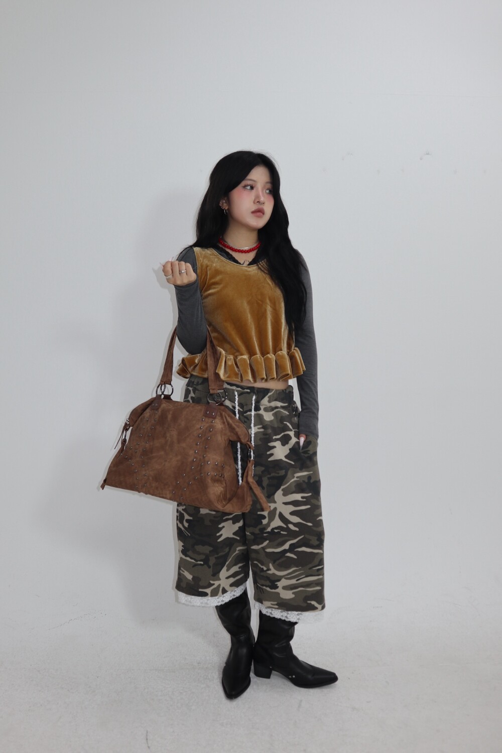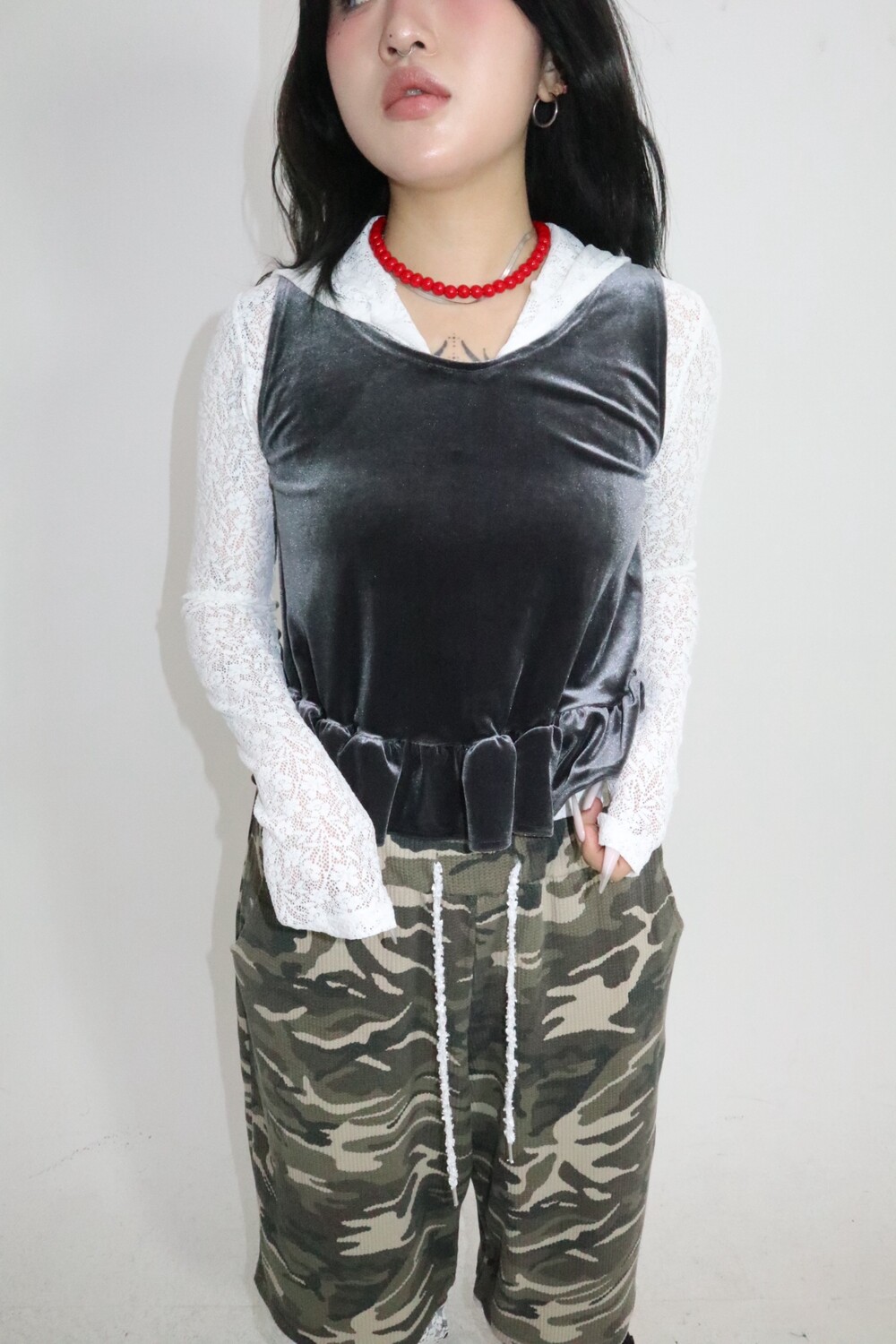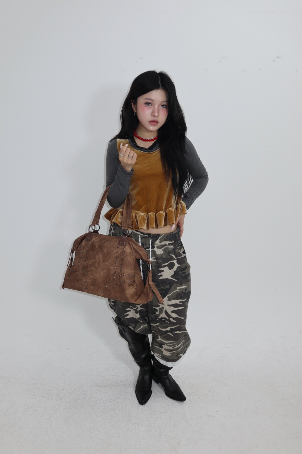 고급스러운 벨벳소재에 프릴 밑단 디테일이 더해져