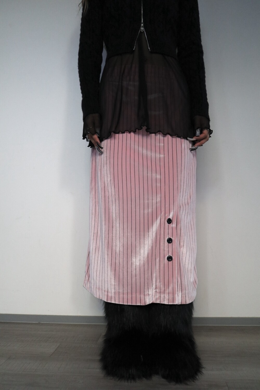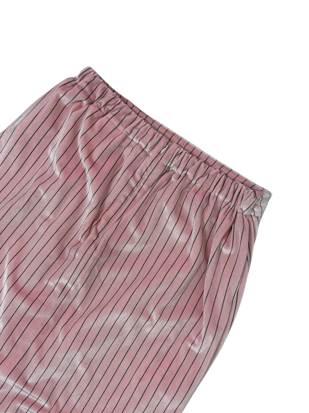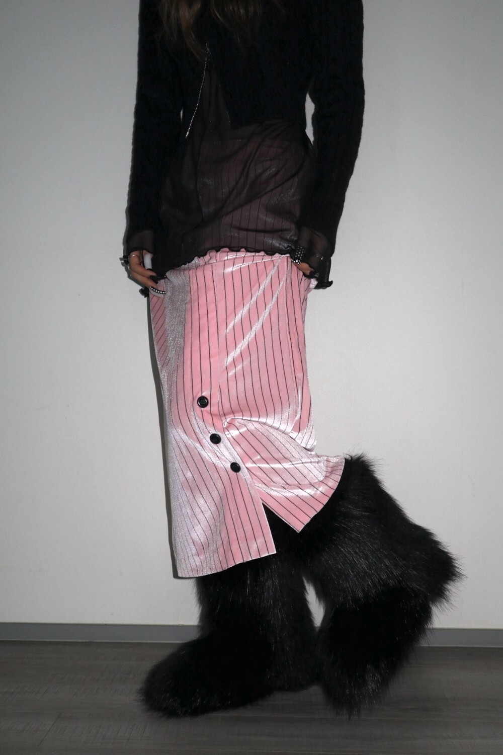 고급스러운 벨벳 소재에 세련된 스트라이프 패턴이 더해져, 빛에 따라 은은하게 변하는 오묘한 매력의 스커트에요.