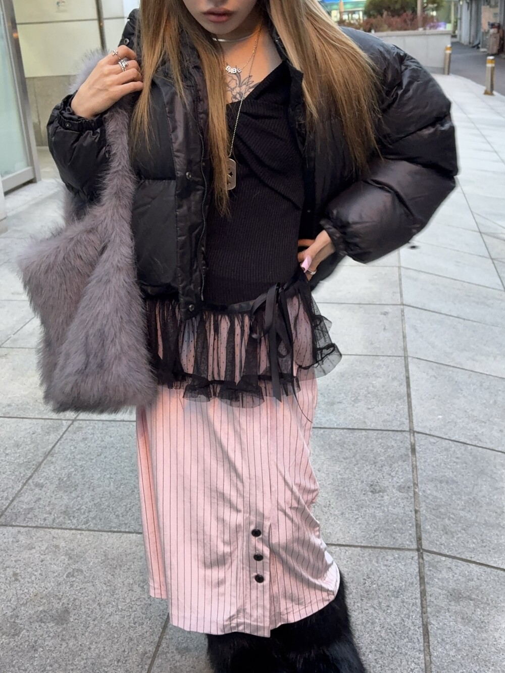 따뜻하게 착용 가능한 스커트로, 데일리룩뿐만 아니라 연말룩으로도 너무 추천드려요 !