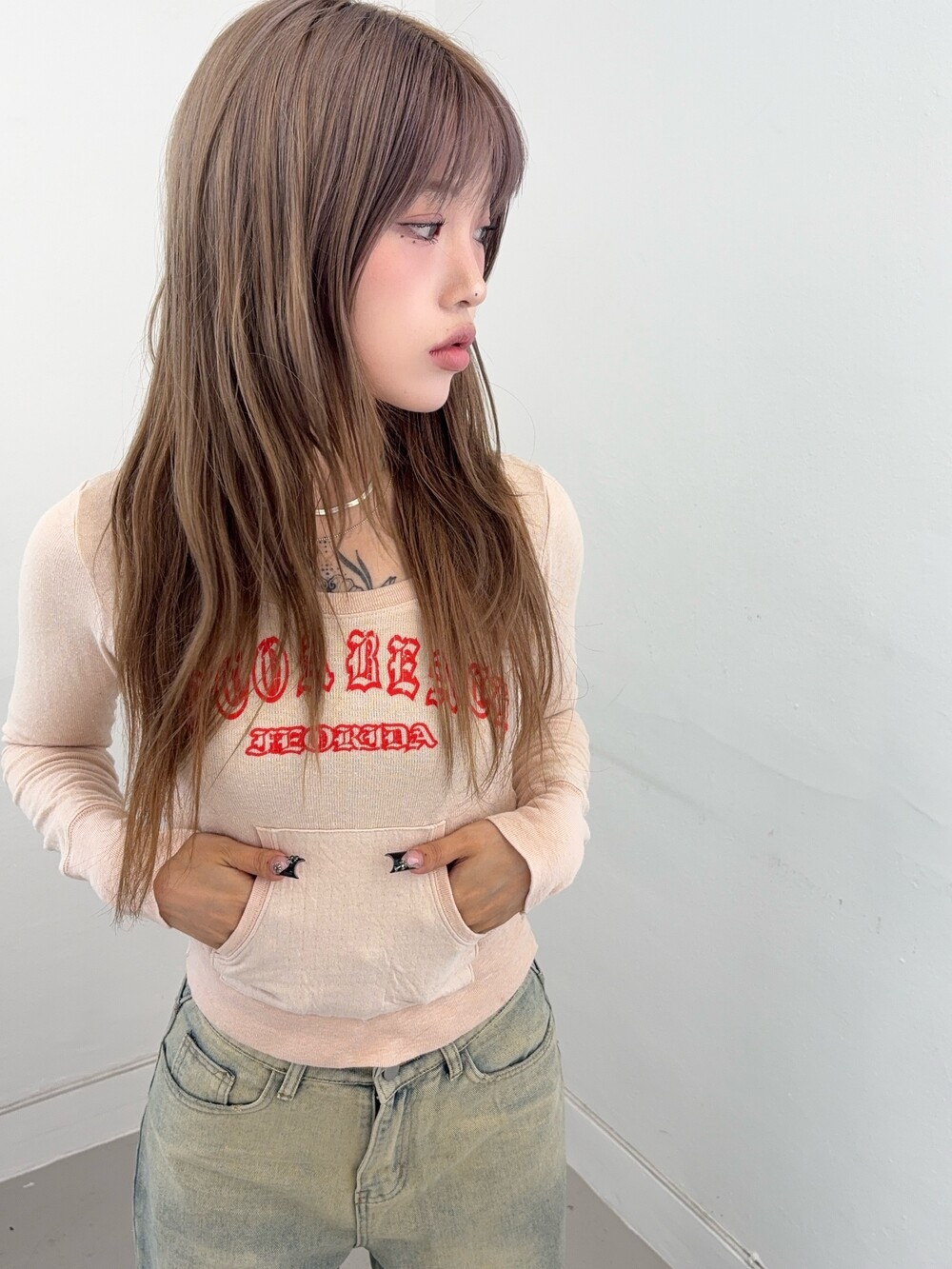포켓 디자인으로 y2k 무드 연출