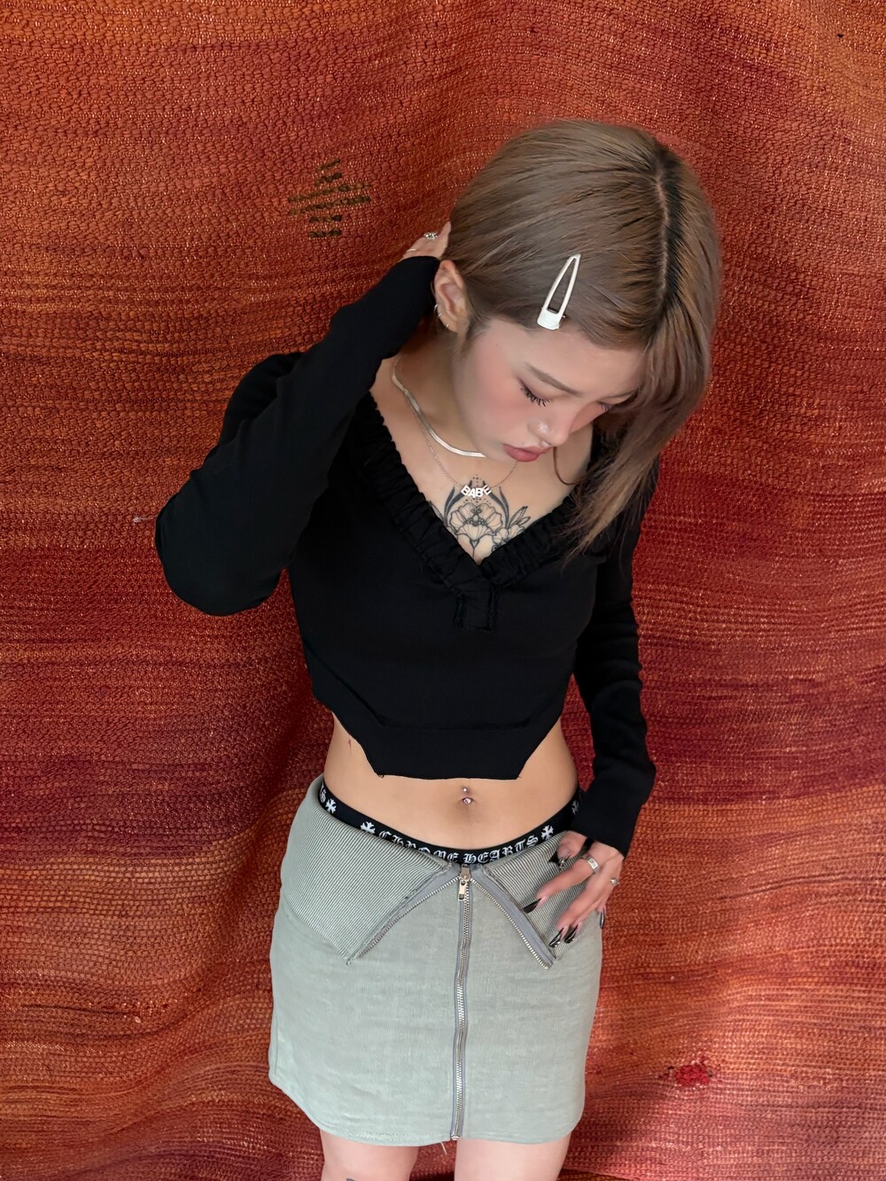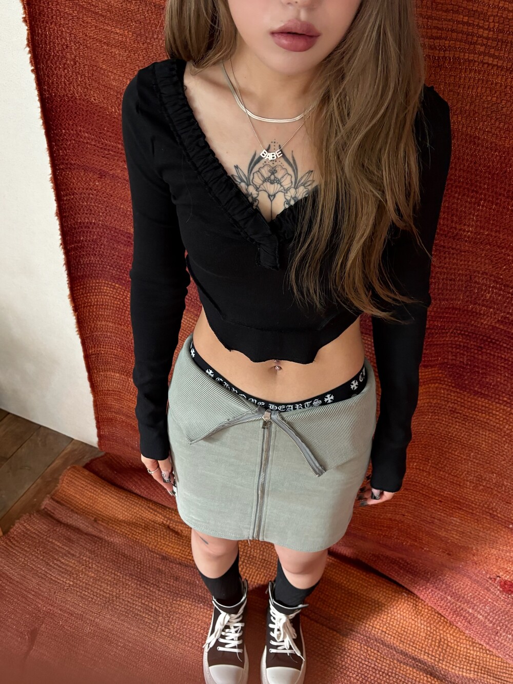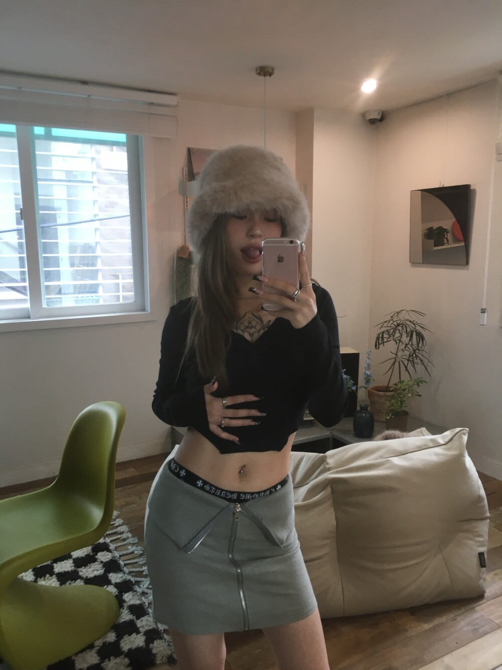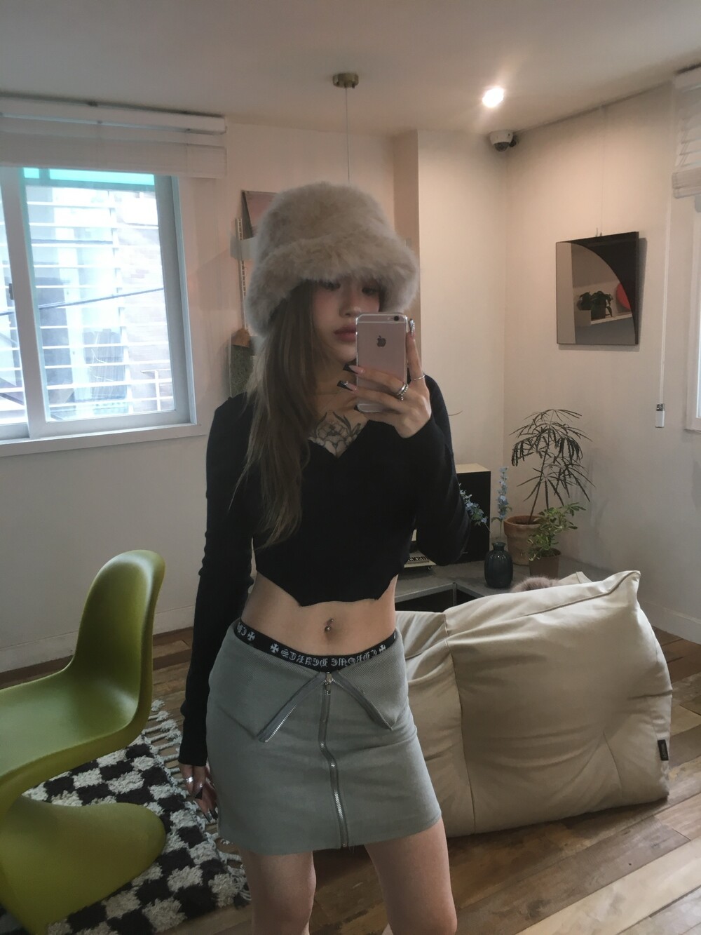 전체 지퍼 라인이 들어간 숏 기장 스커트